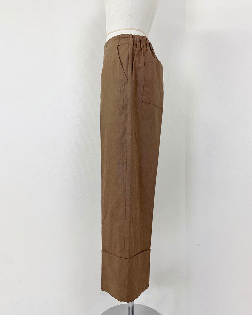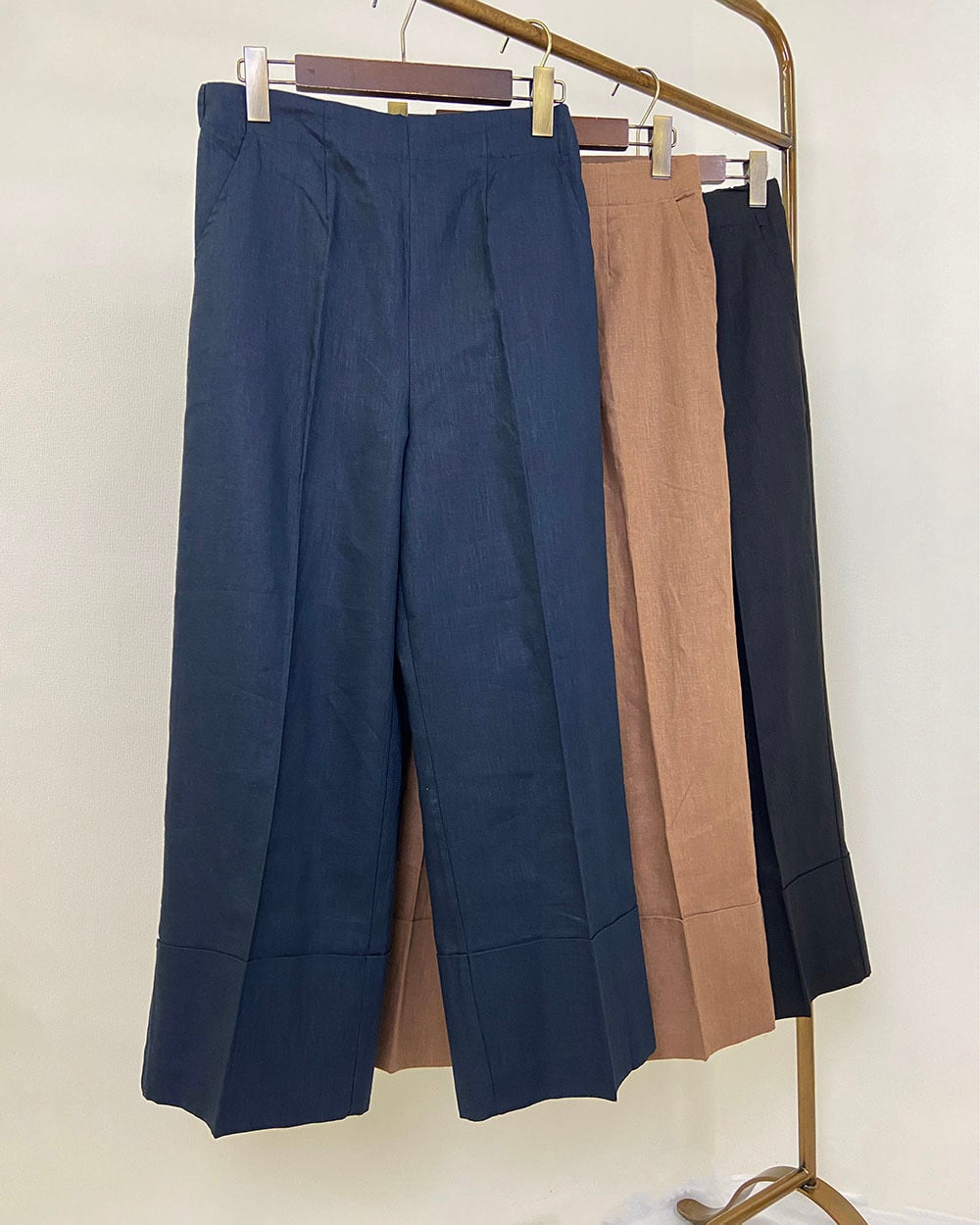 清涼感あるリネン混のナチュラル感が季節を感じさせる、ロールヘムセンタープレスパンツ。