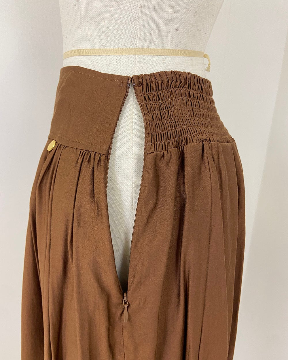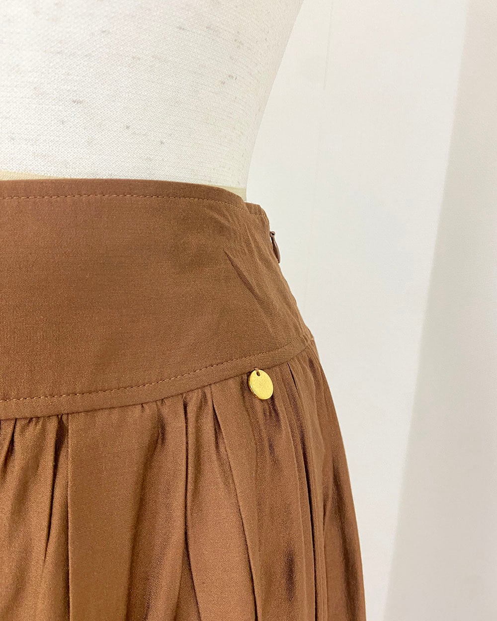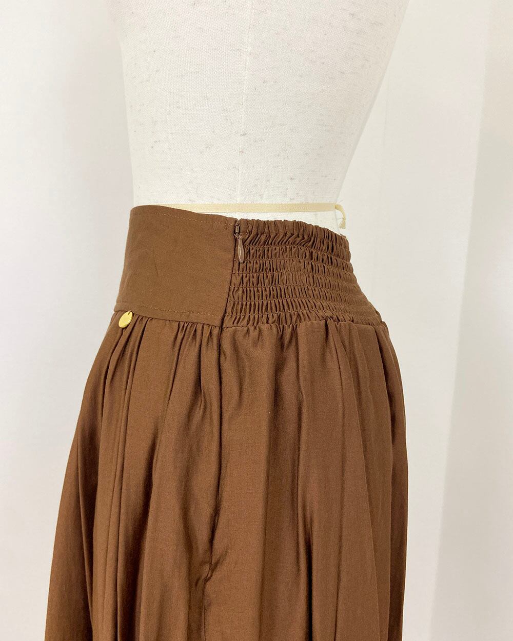 スカート見えるすたっぷりの生地がフェミニンな印象。