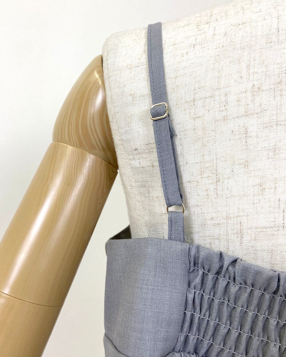 スーツにも使われるキレイめ素材、サキソニーを使用したキャミソール。