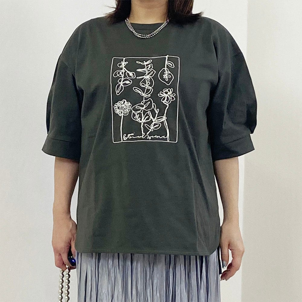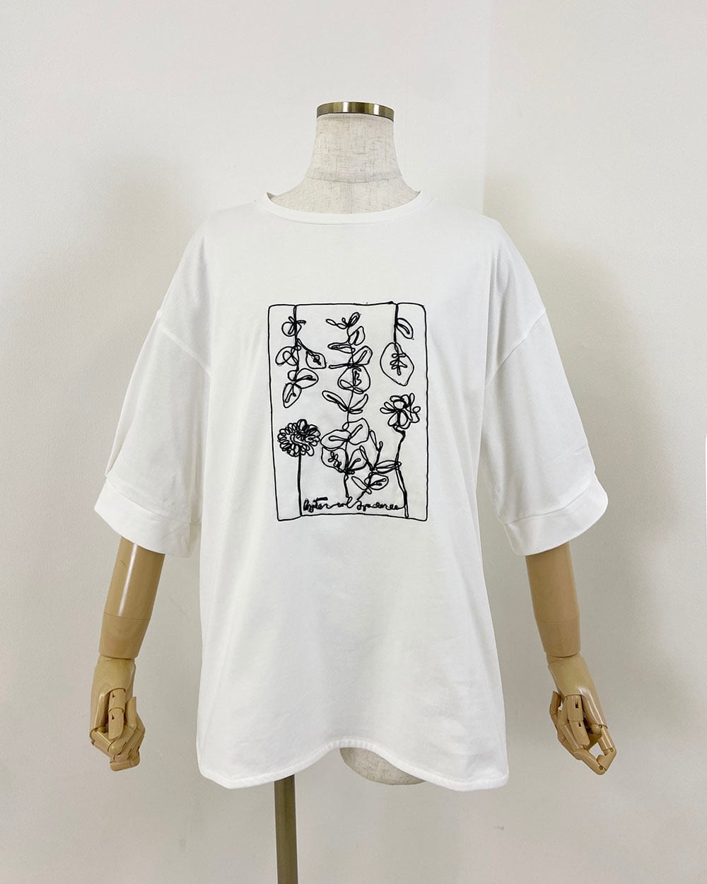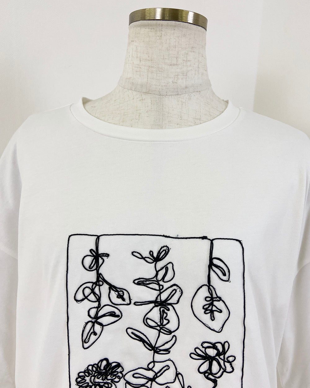 ボタニカル柄のステッチ刺繍がかわいいTシャツ