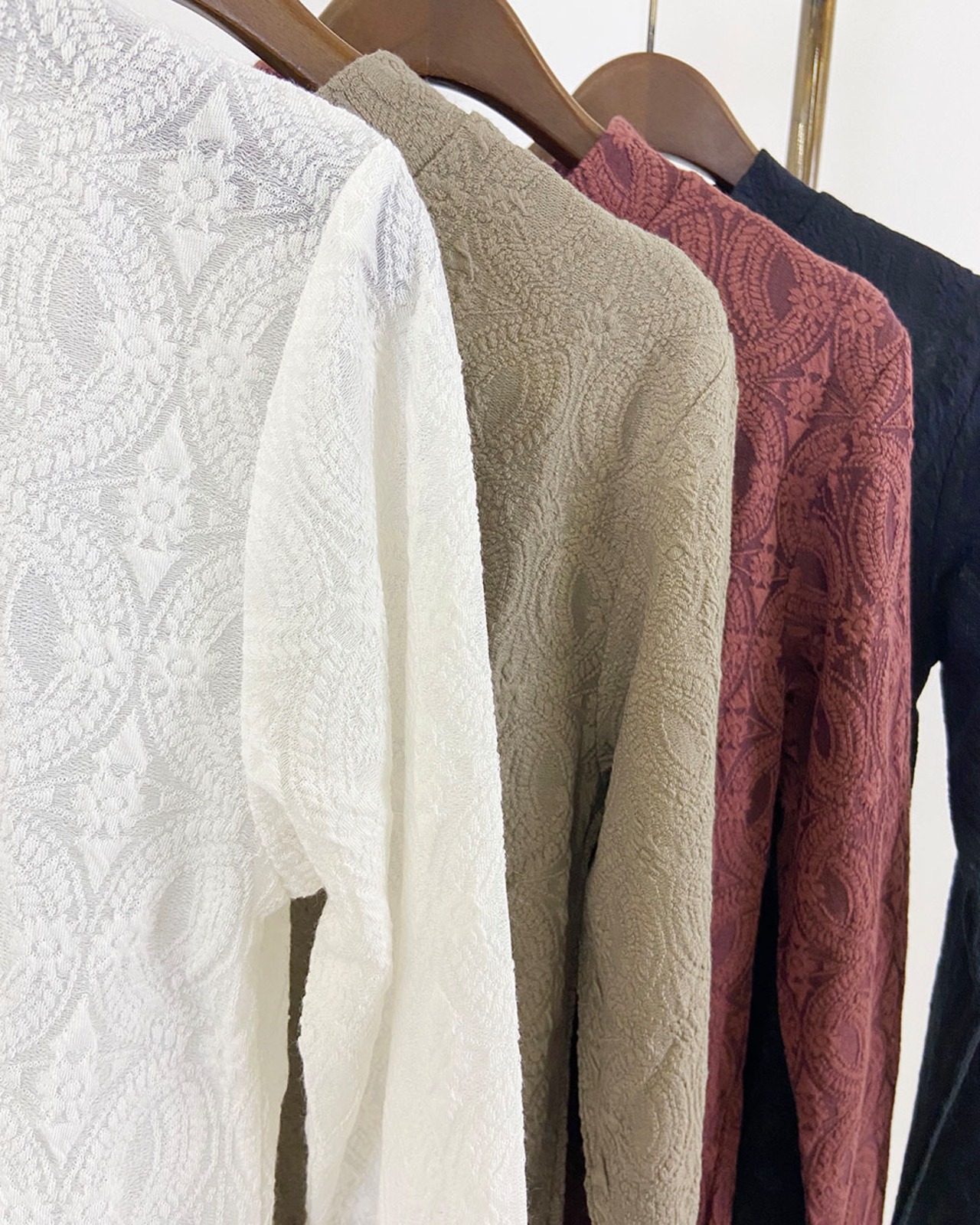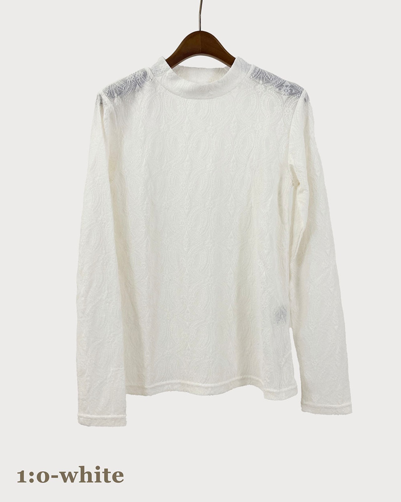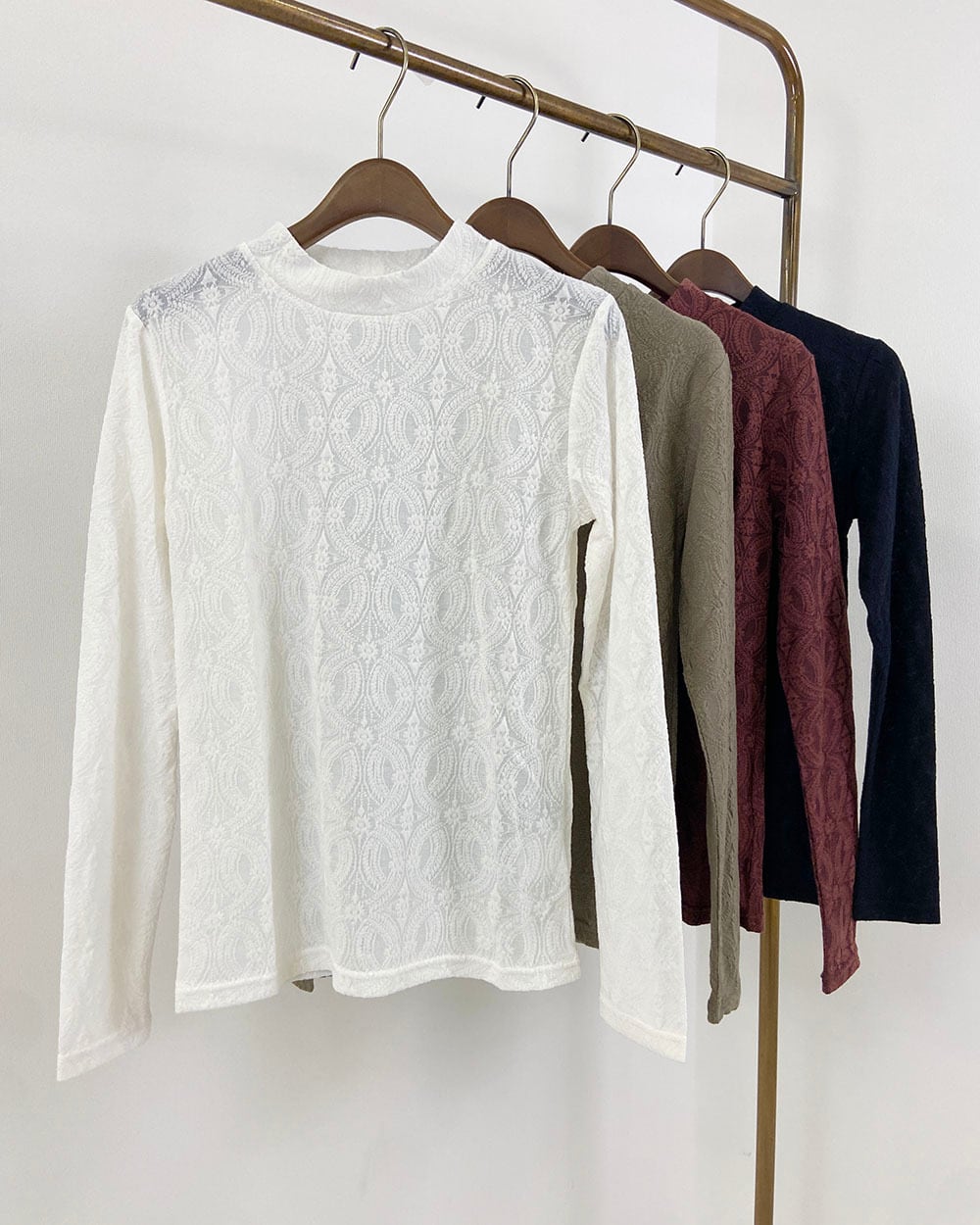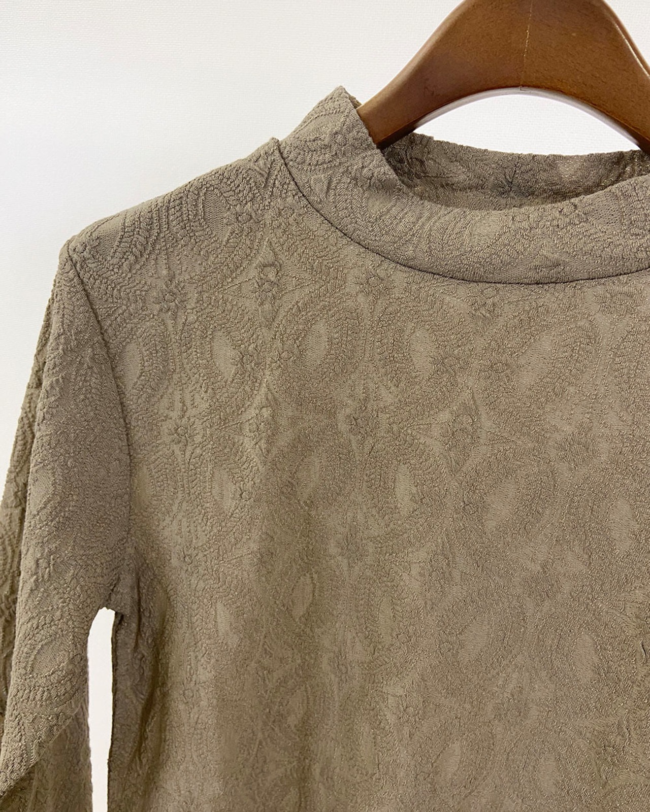 程よい透け感のあるシアージャガードを使用したハイネックのプルオーバー。