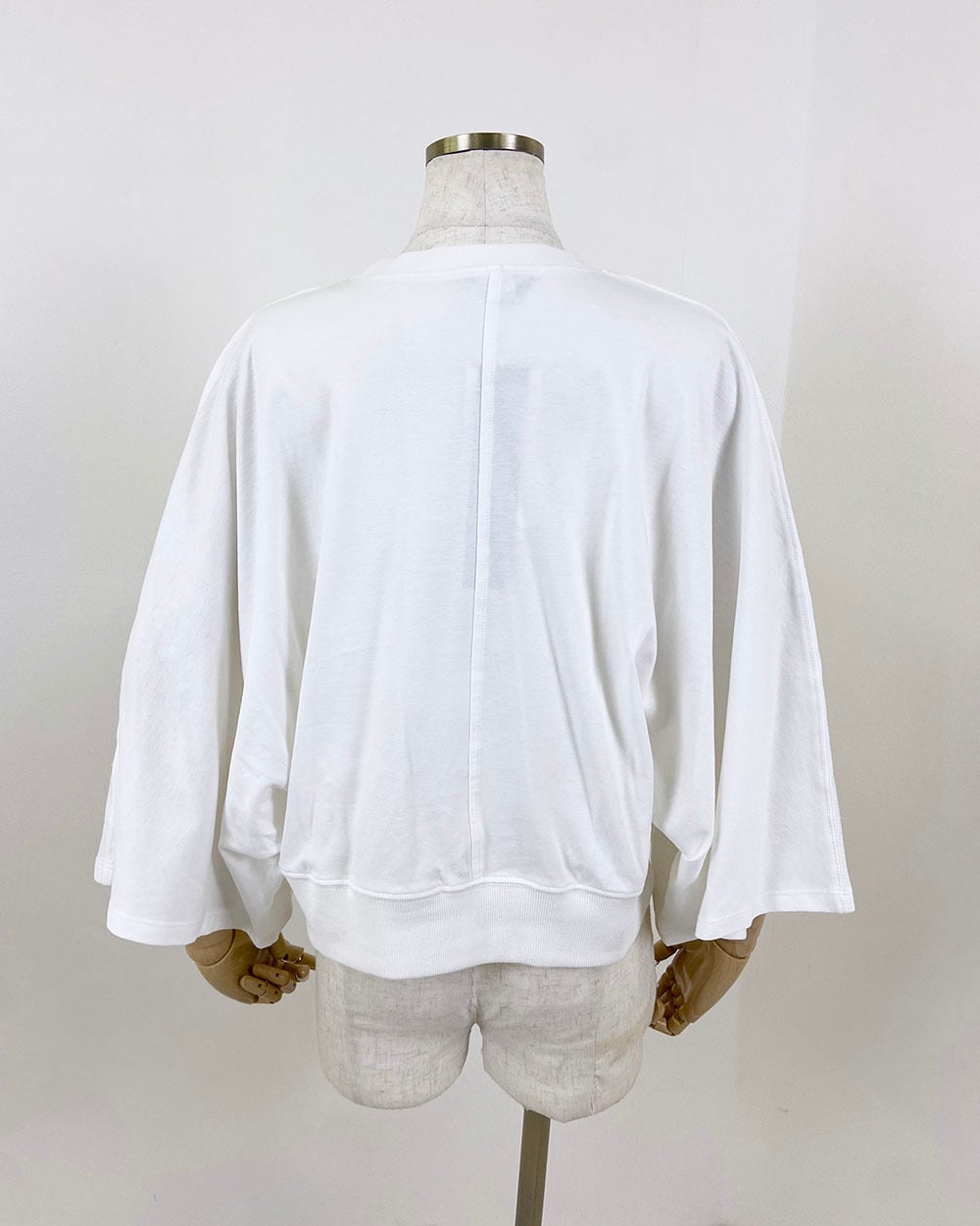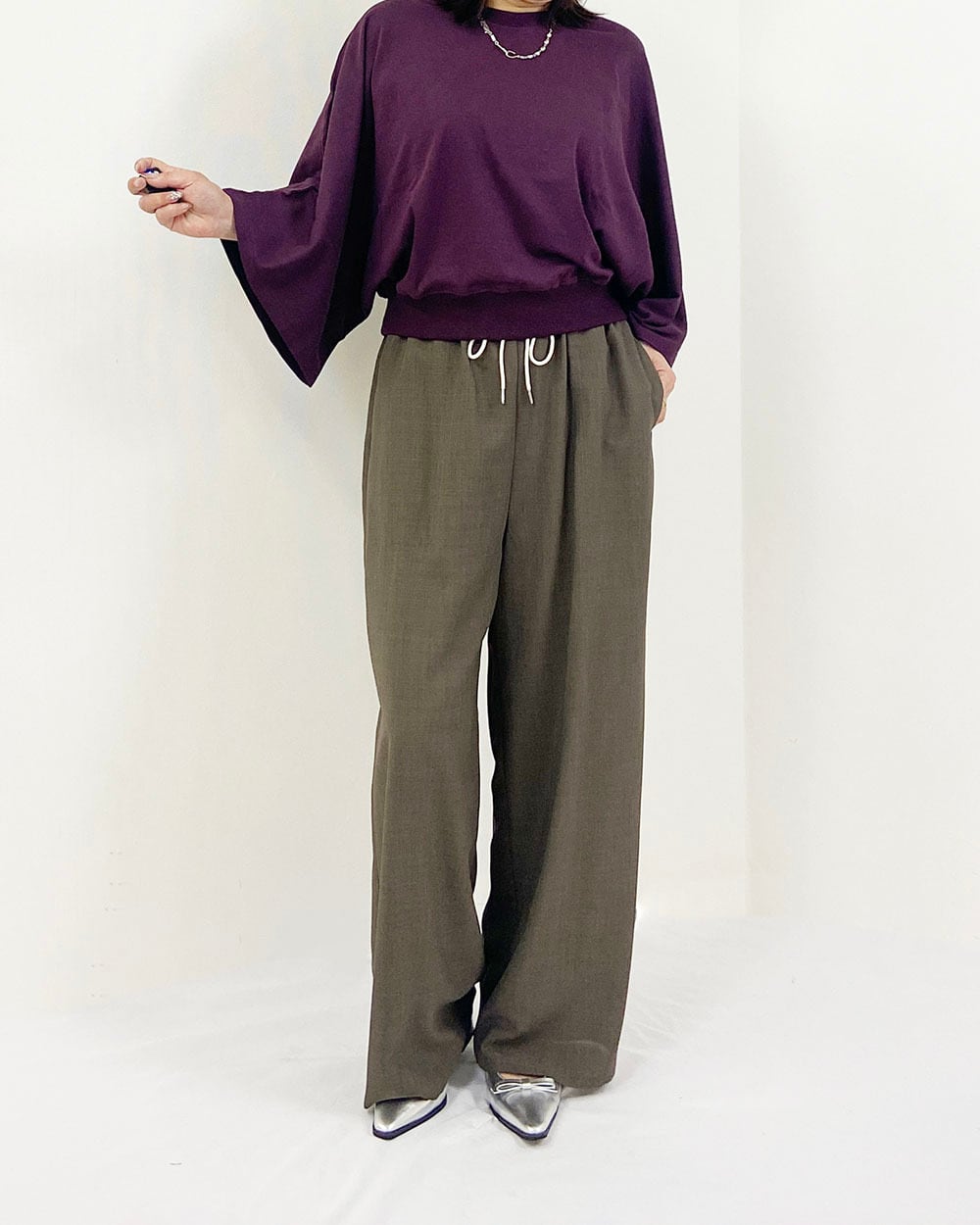 たっぷりのドルマン袖が大人の余裕あるコーディネートに。