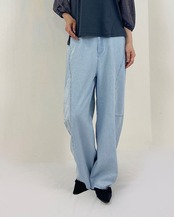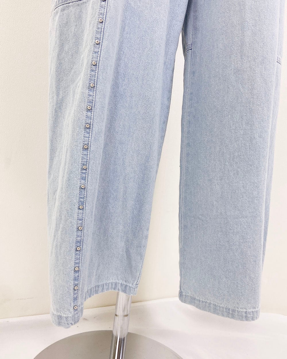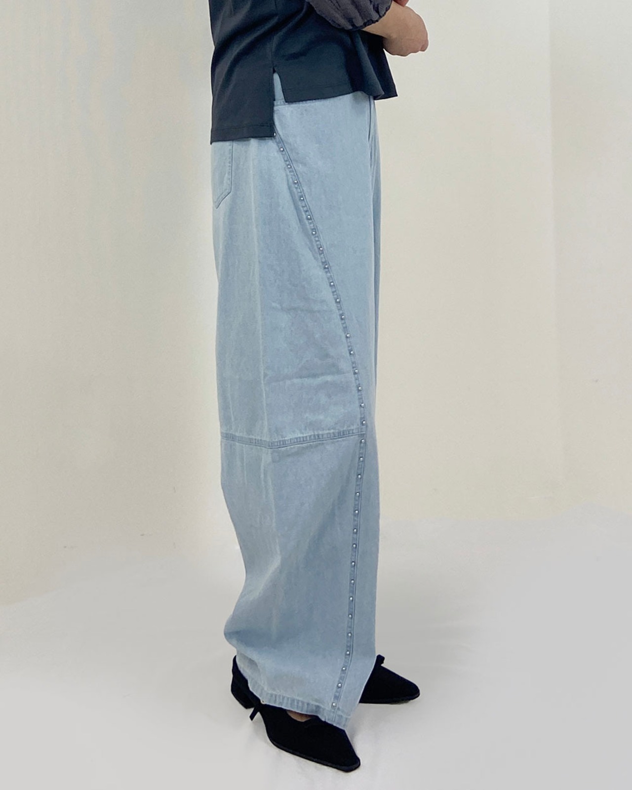 サイドに並んだスタッズがポイントのデニムカーブパンツ。