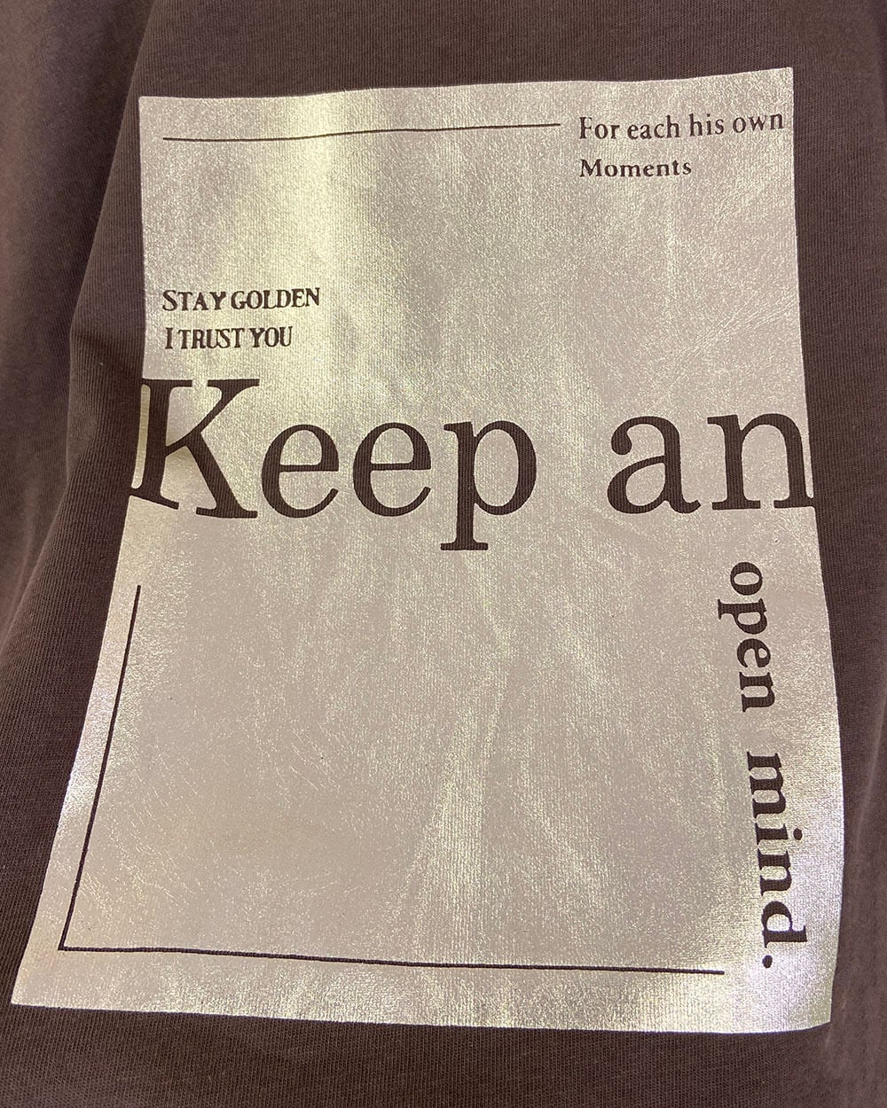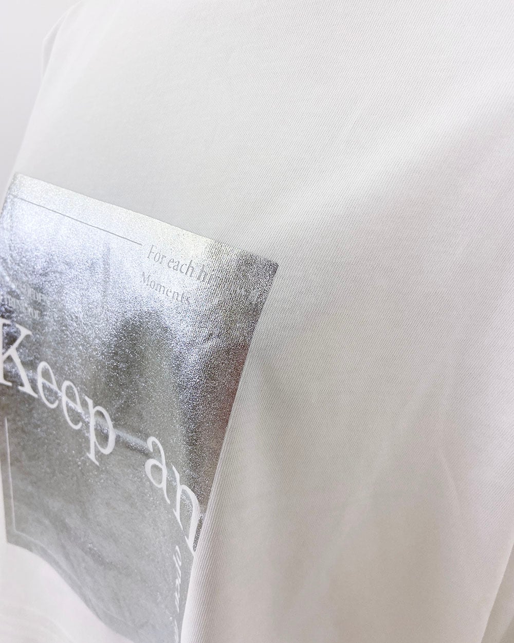 箔ロゴプリントがポイントの長袖Tシャツ。