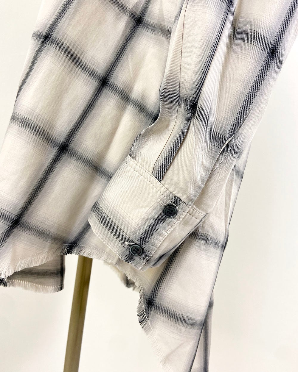 グラデーションのようなオンブレチェックが印象的なシャツ。