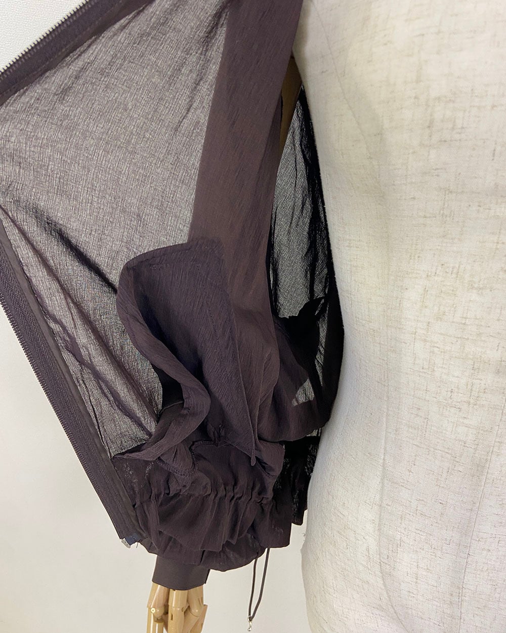 フロントはダブルジップ。首周りと手首のリブがシルエットを引き締めます。