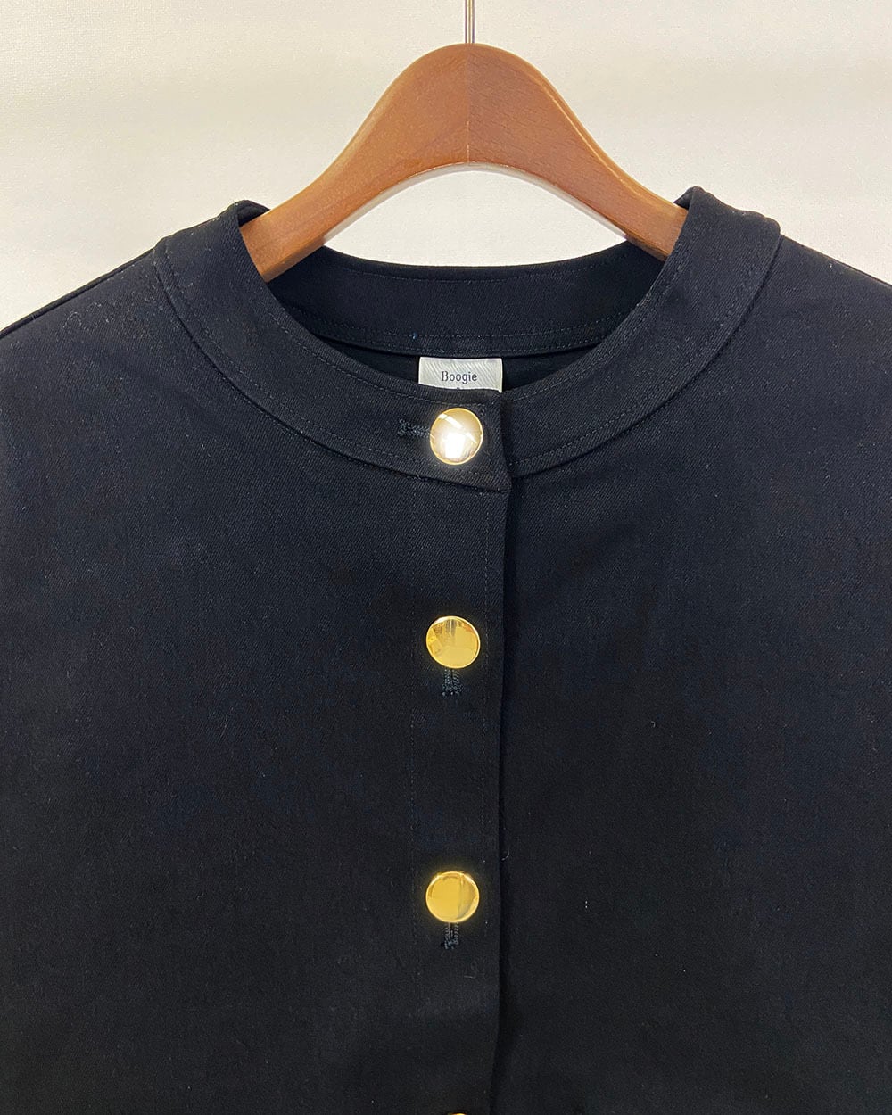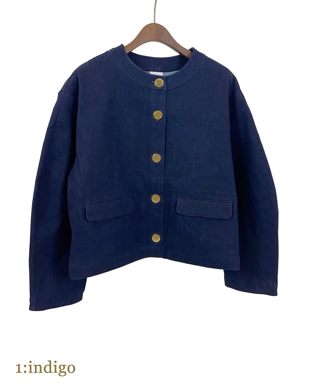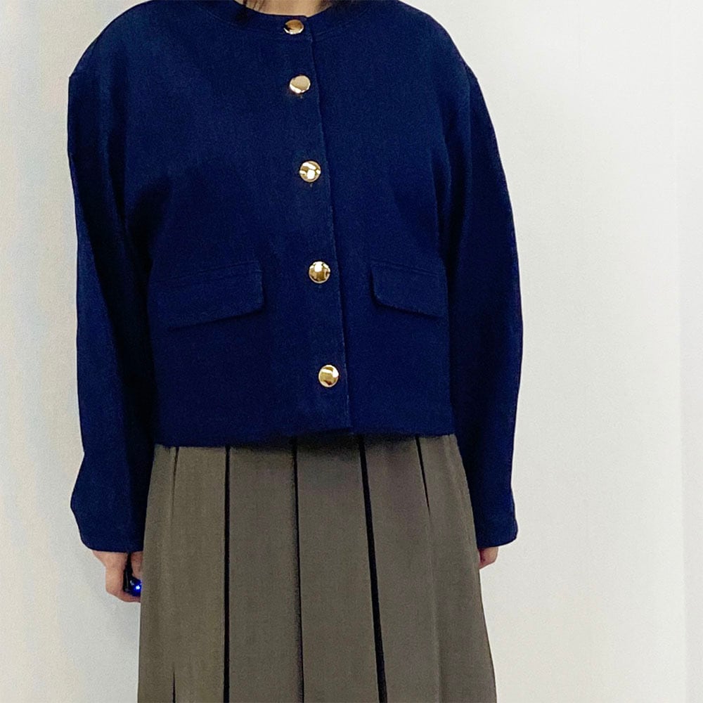 ゴールドのボタンとお袖のカーブがポイントのジャケット。