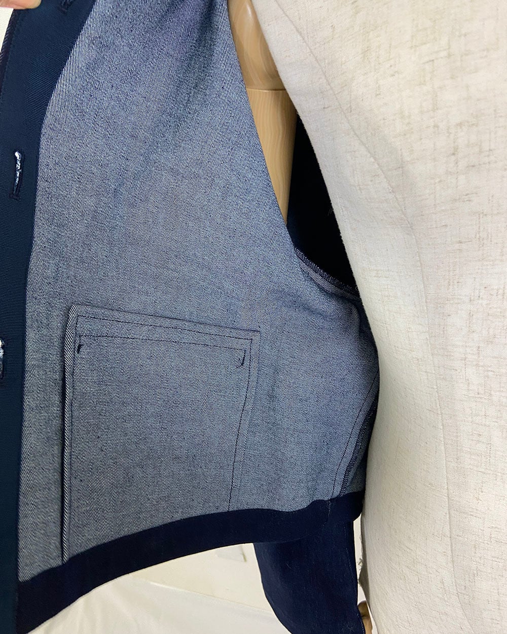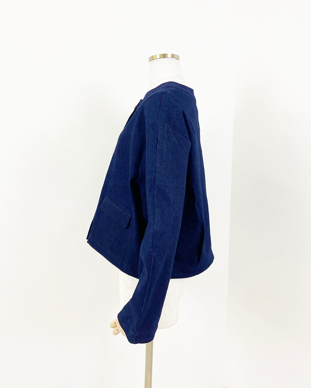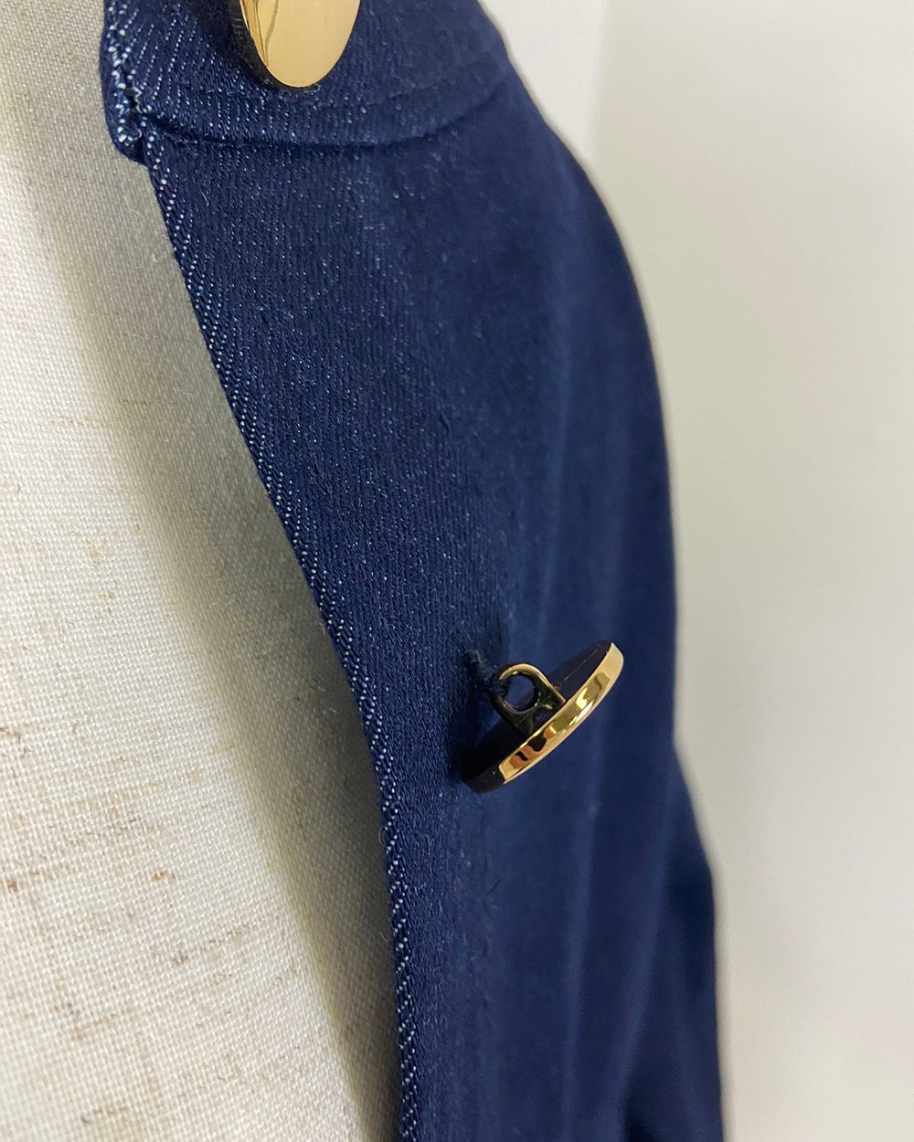 ゴールドのボタンとお袖のカーブがポイントのジャケット。