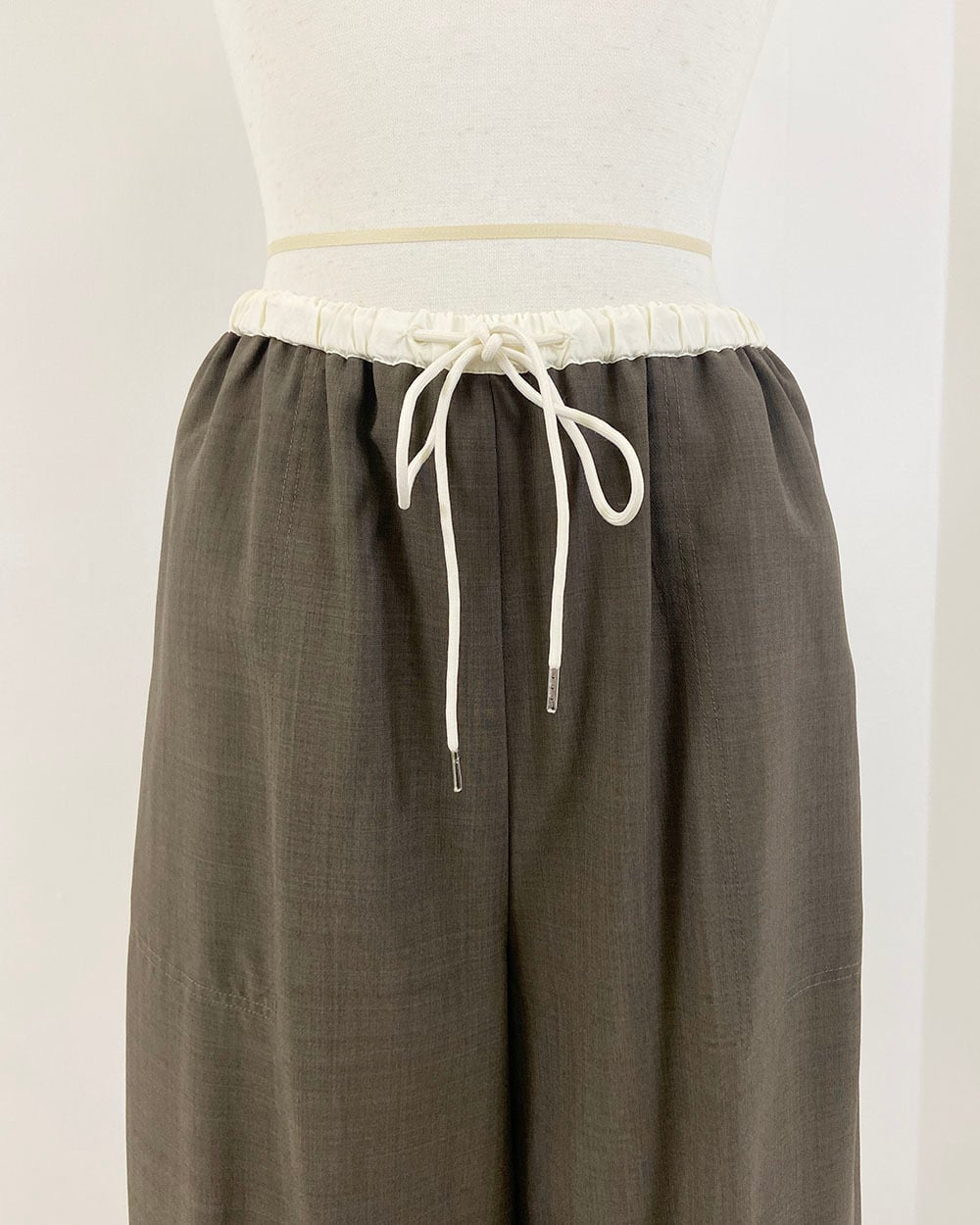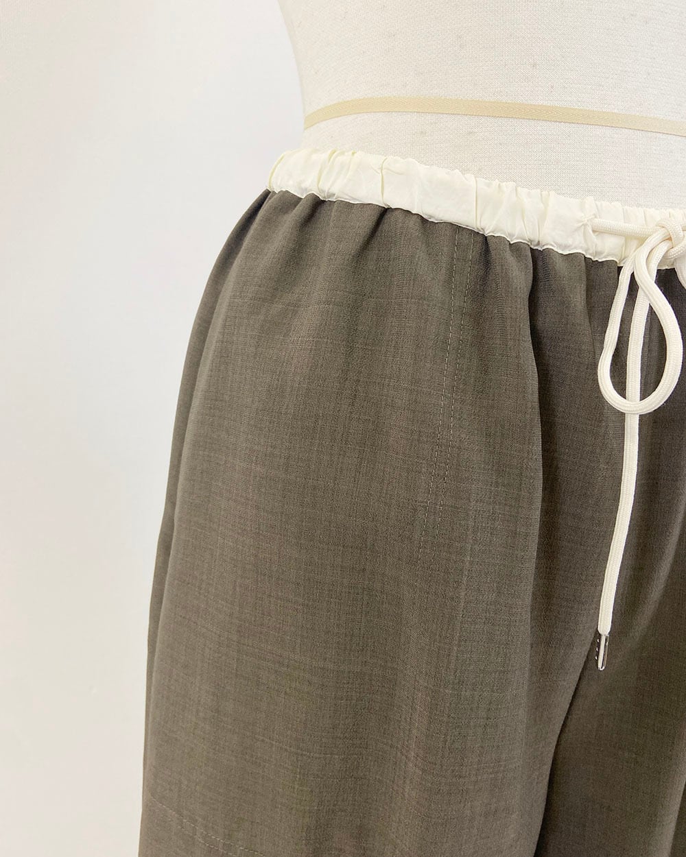 強撚平織りウエスト配色パンツ
