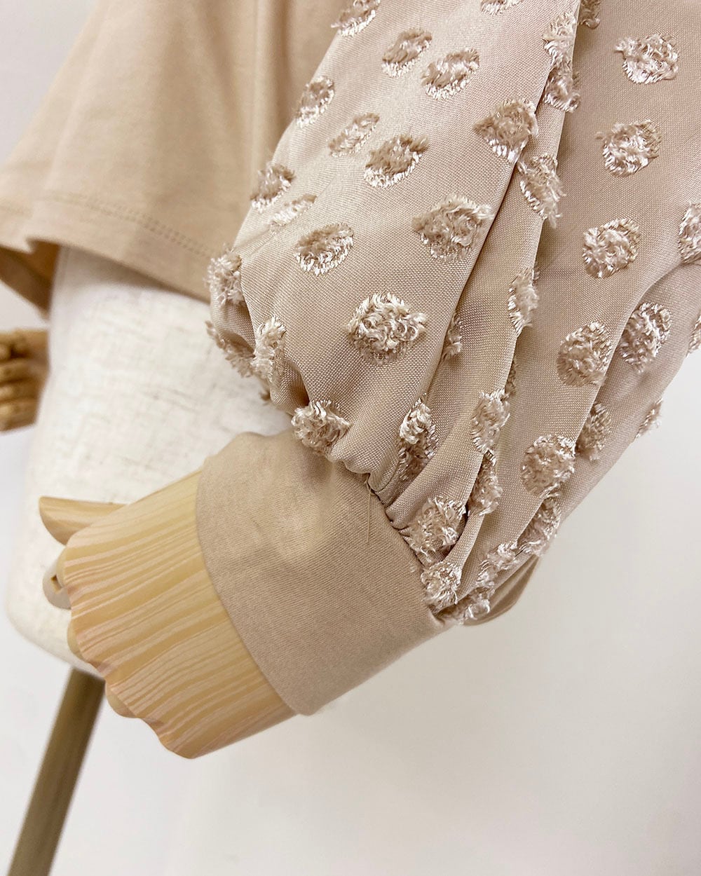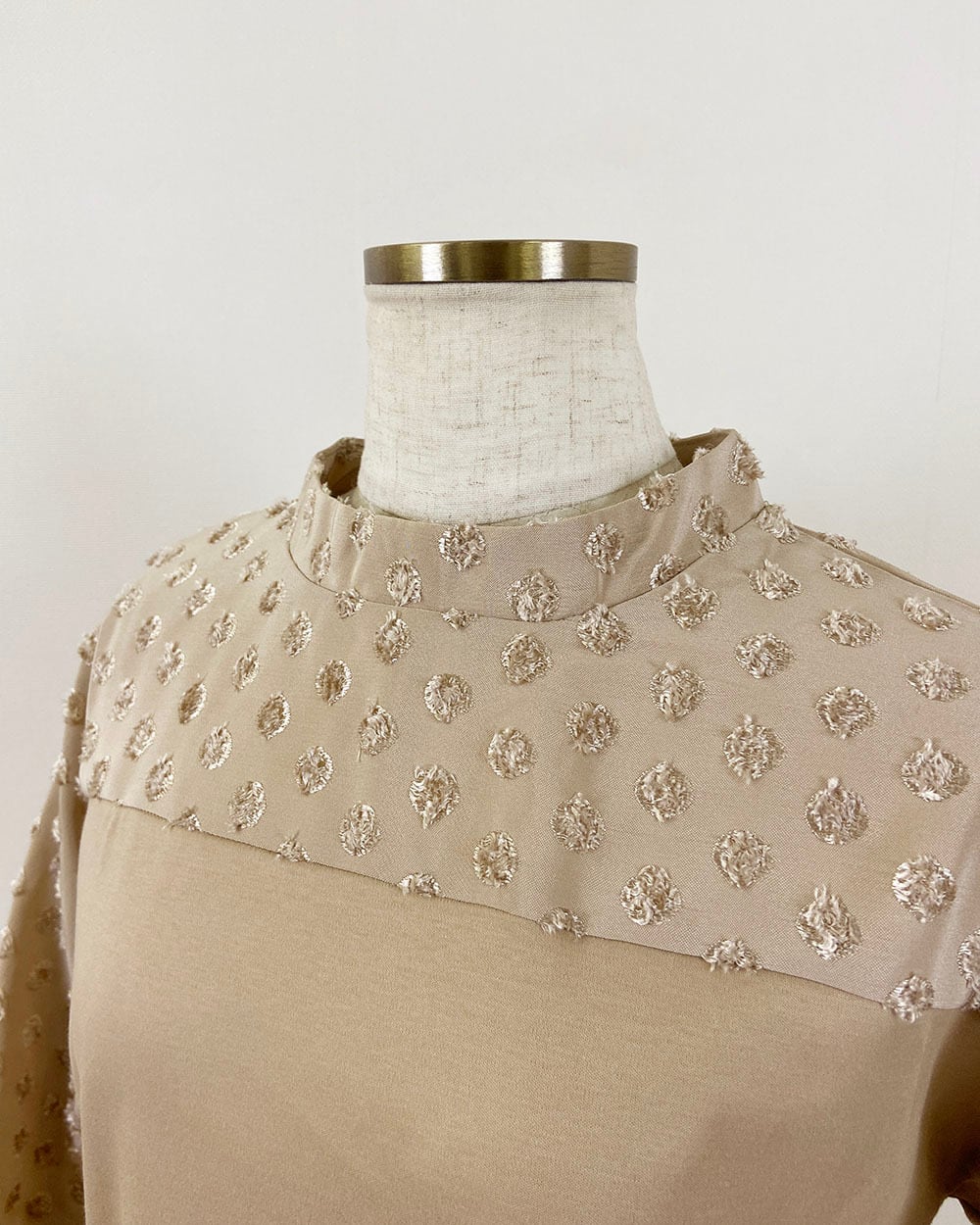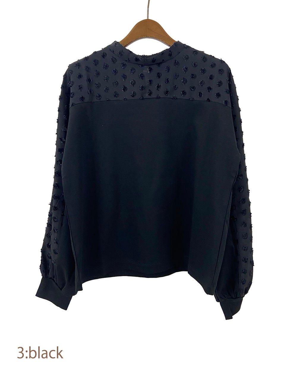 お袖と肩周りのドットジャガードがポイントのプルオーバー。