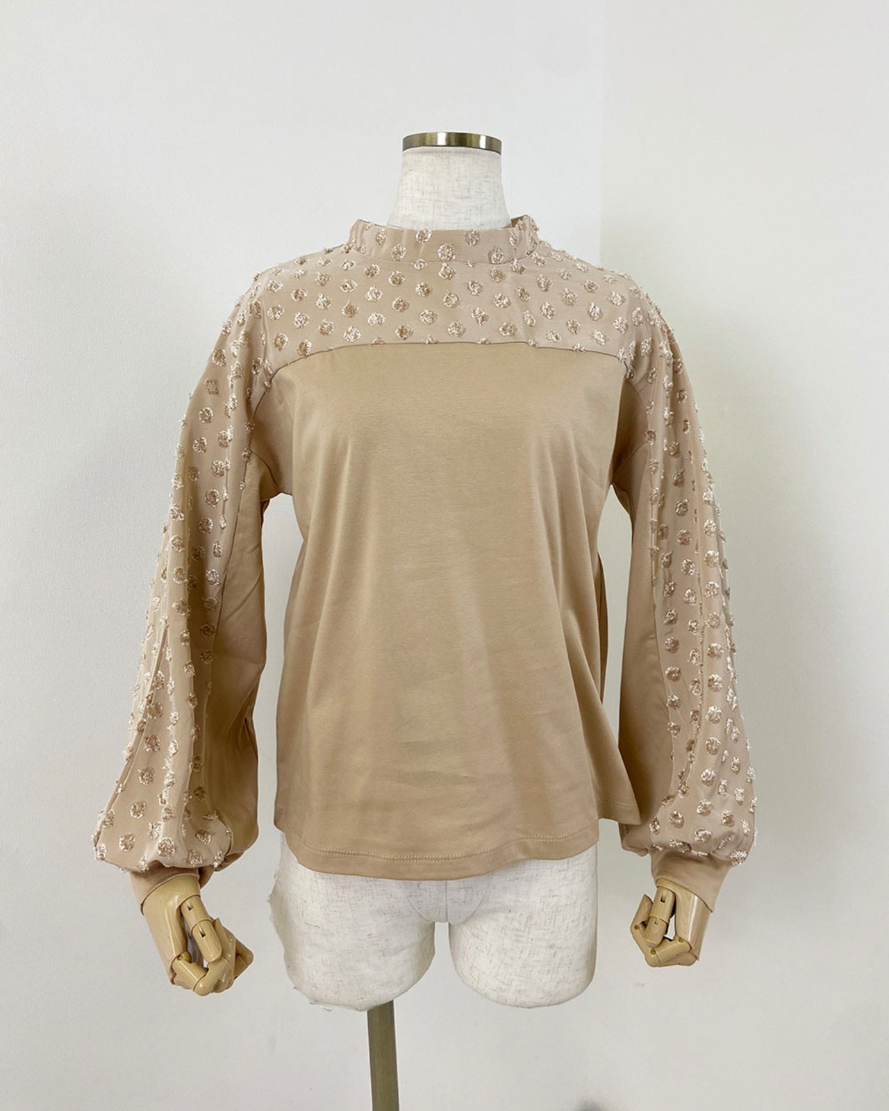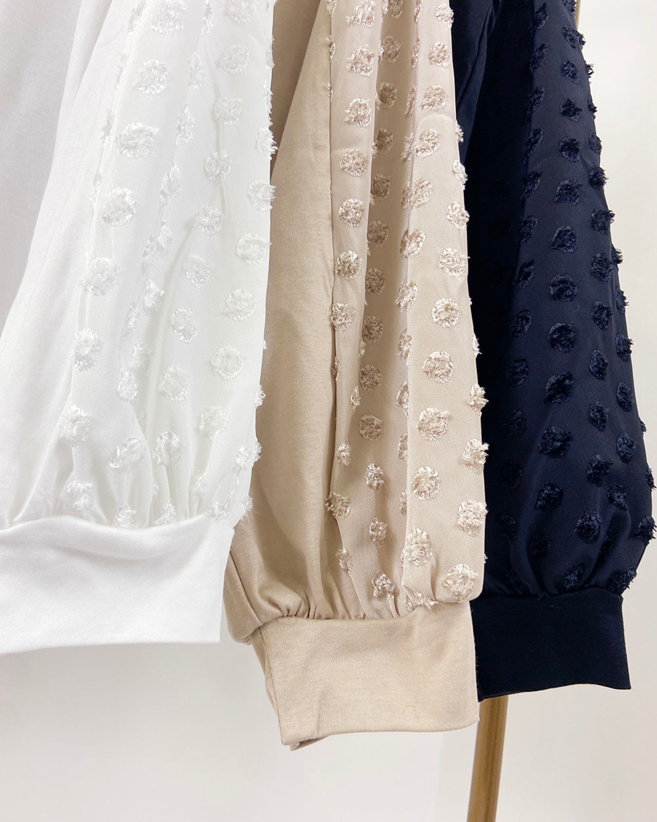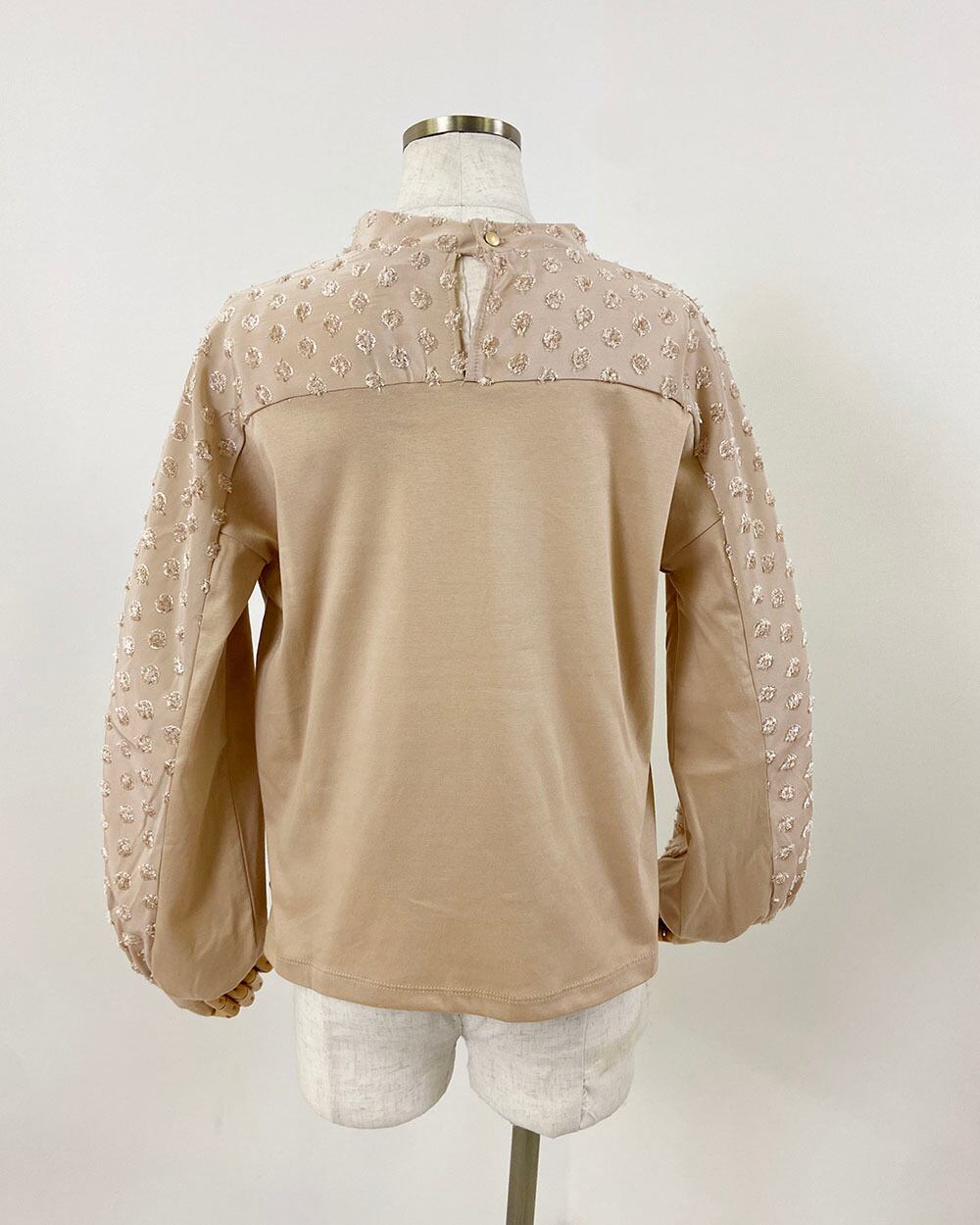お袖と肩周りのドットジャガードがポイントのプルオーバー。