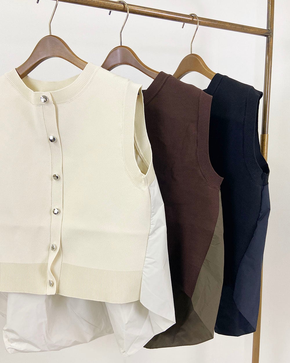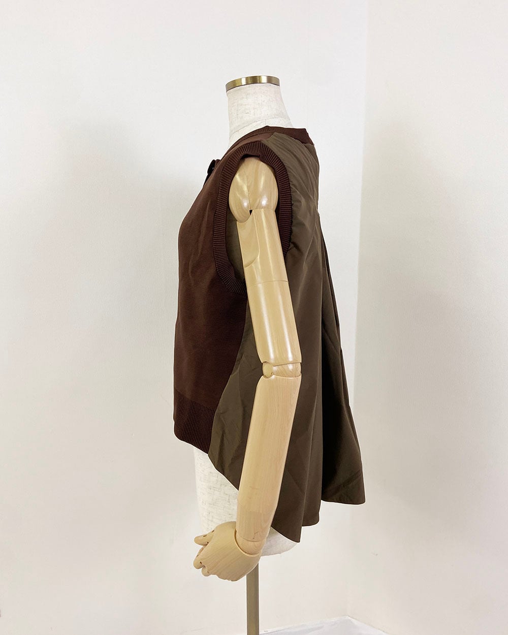 フロントはニットバックはタフタ素材の異素材切替ジレ。