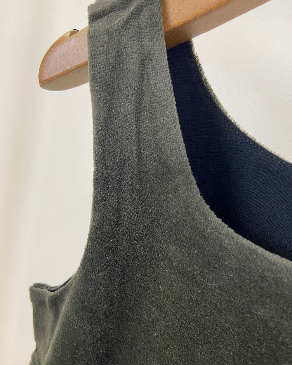 程よい光沢感のパイル生地を使用したタンクトップ。