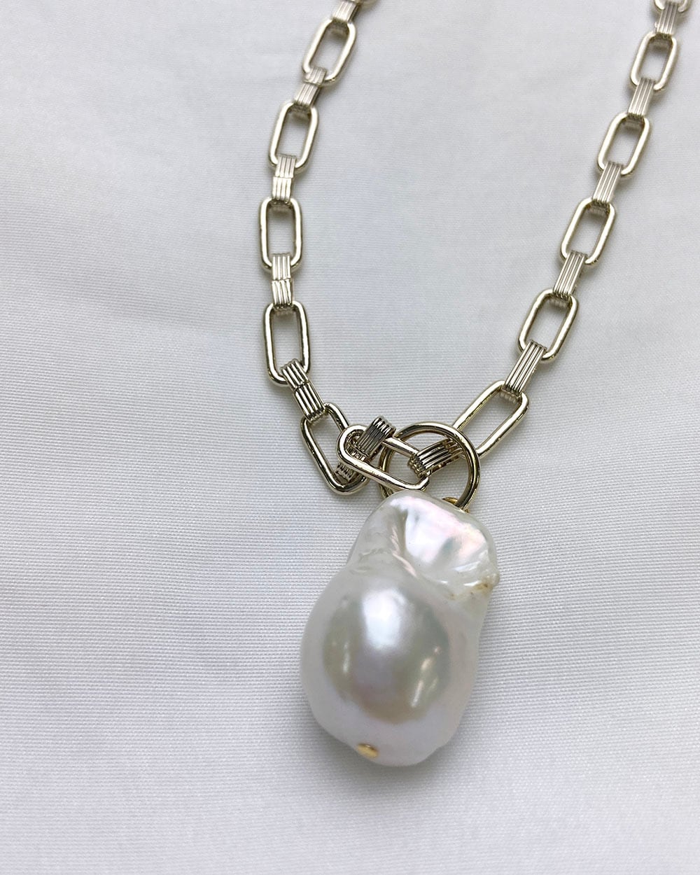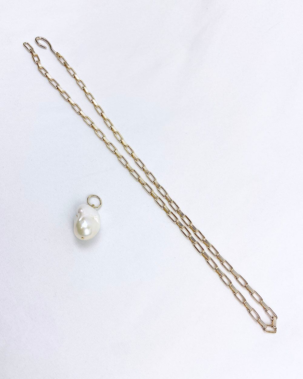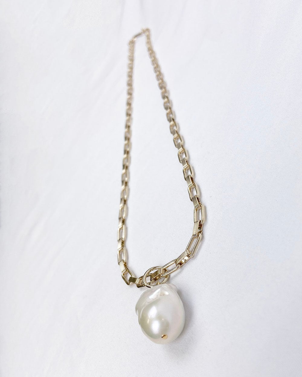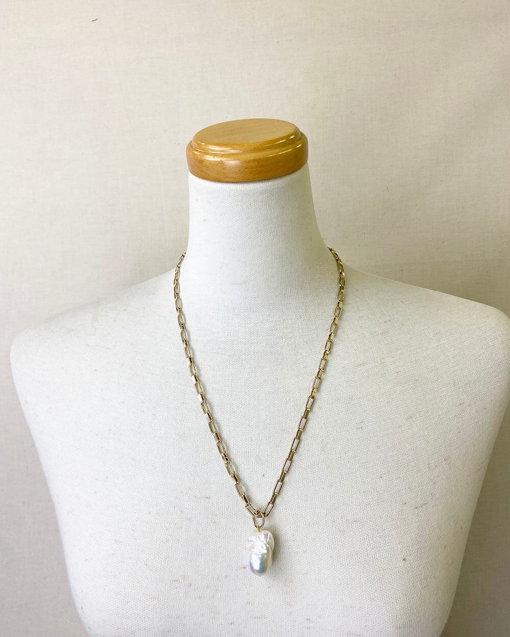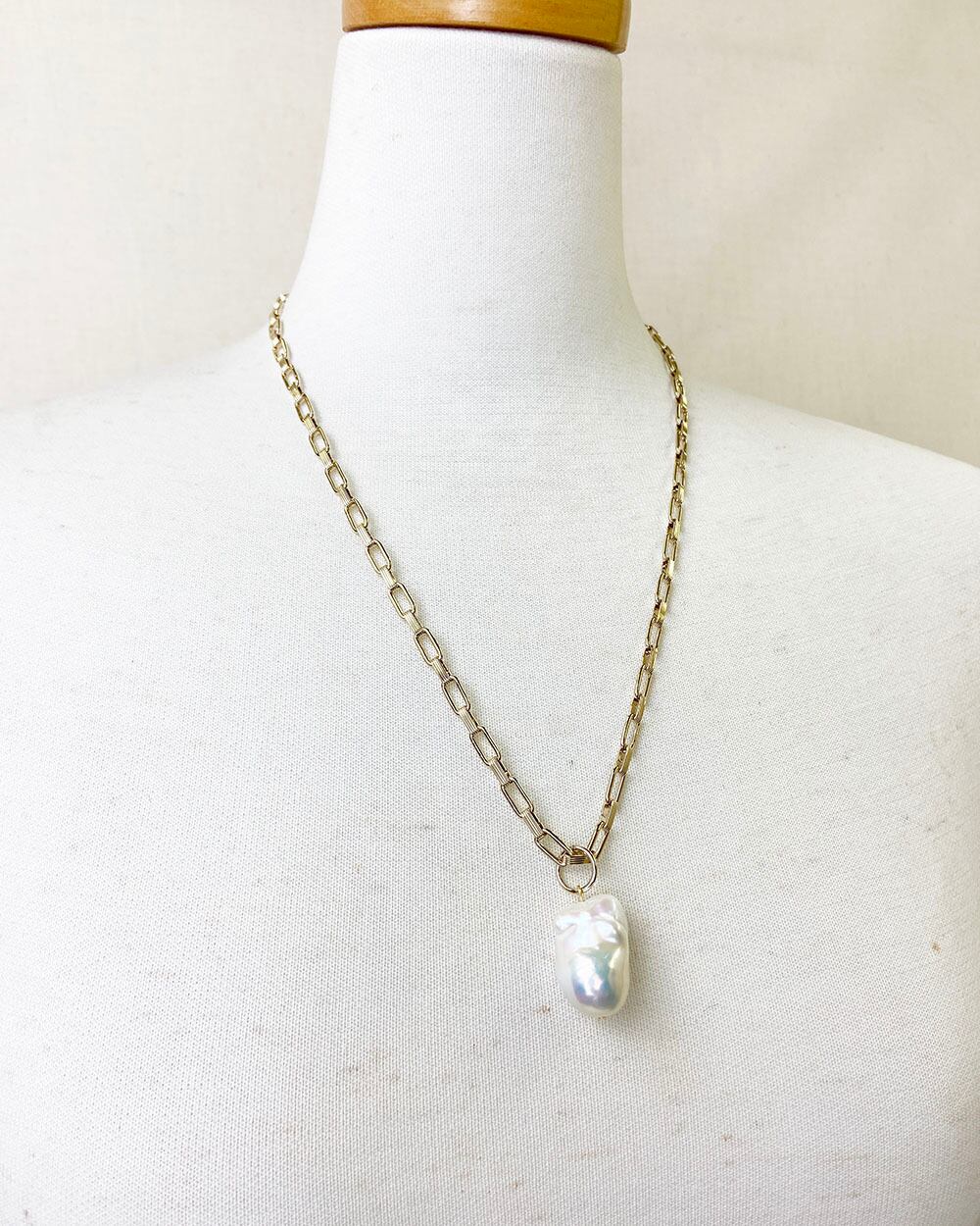 大きなバロックパールがポイントとネックレス。