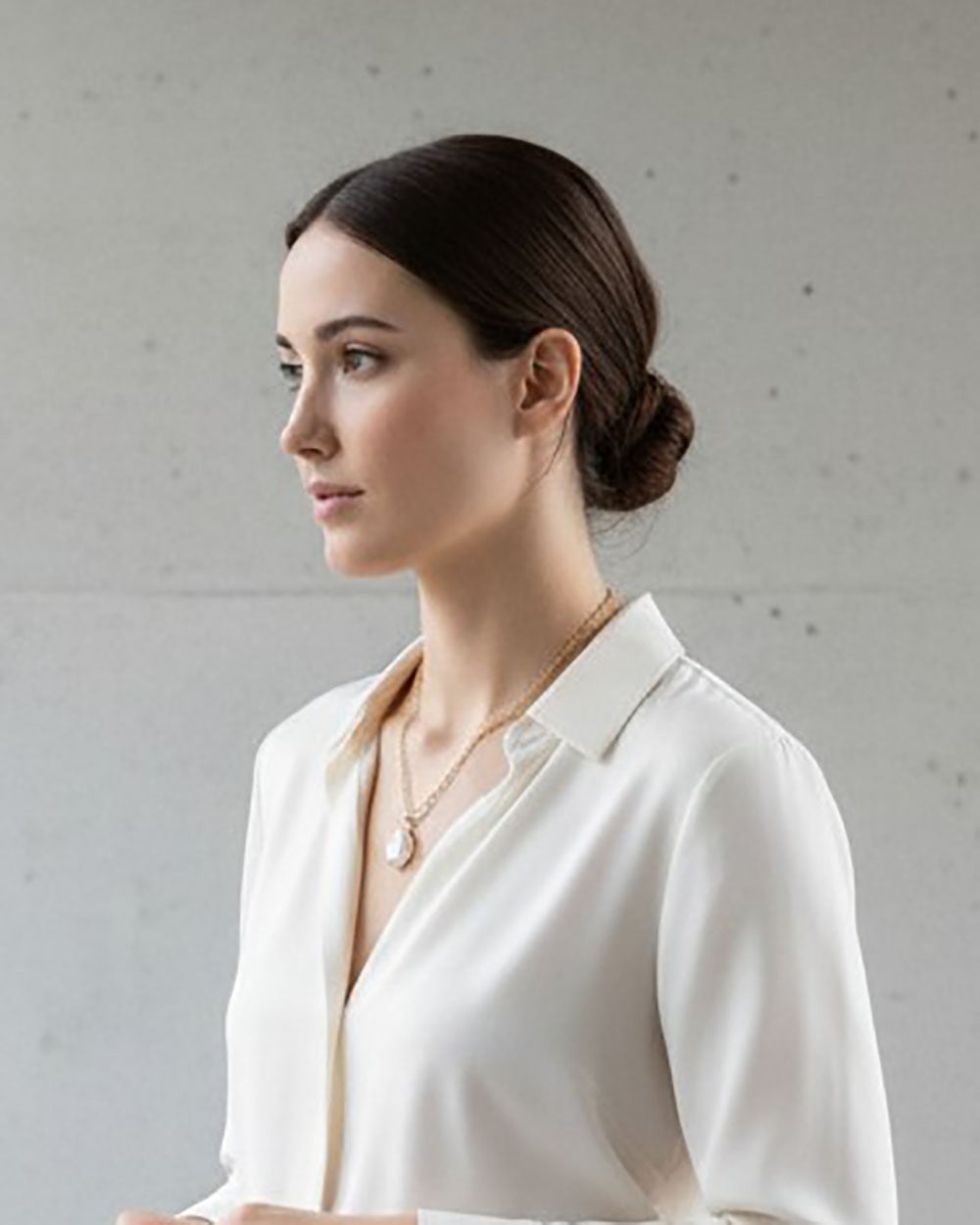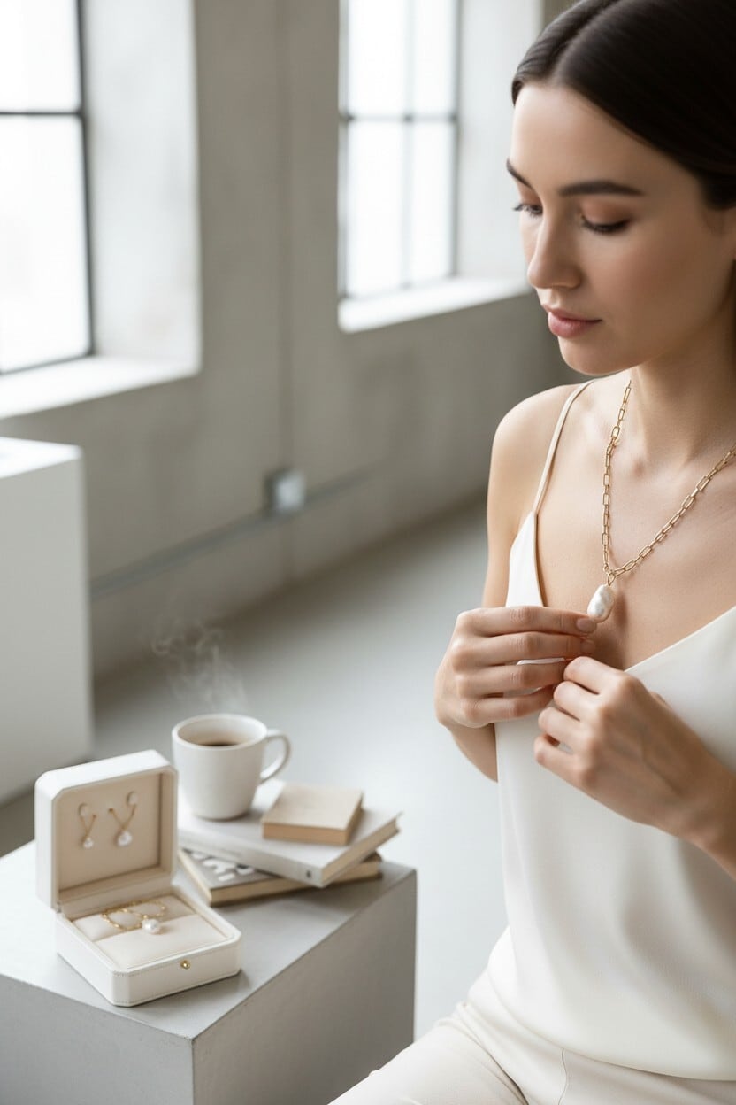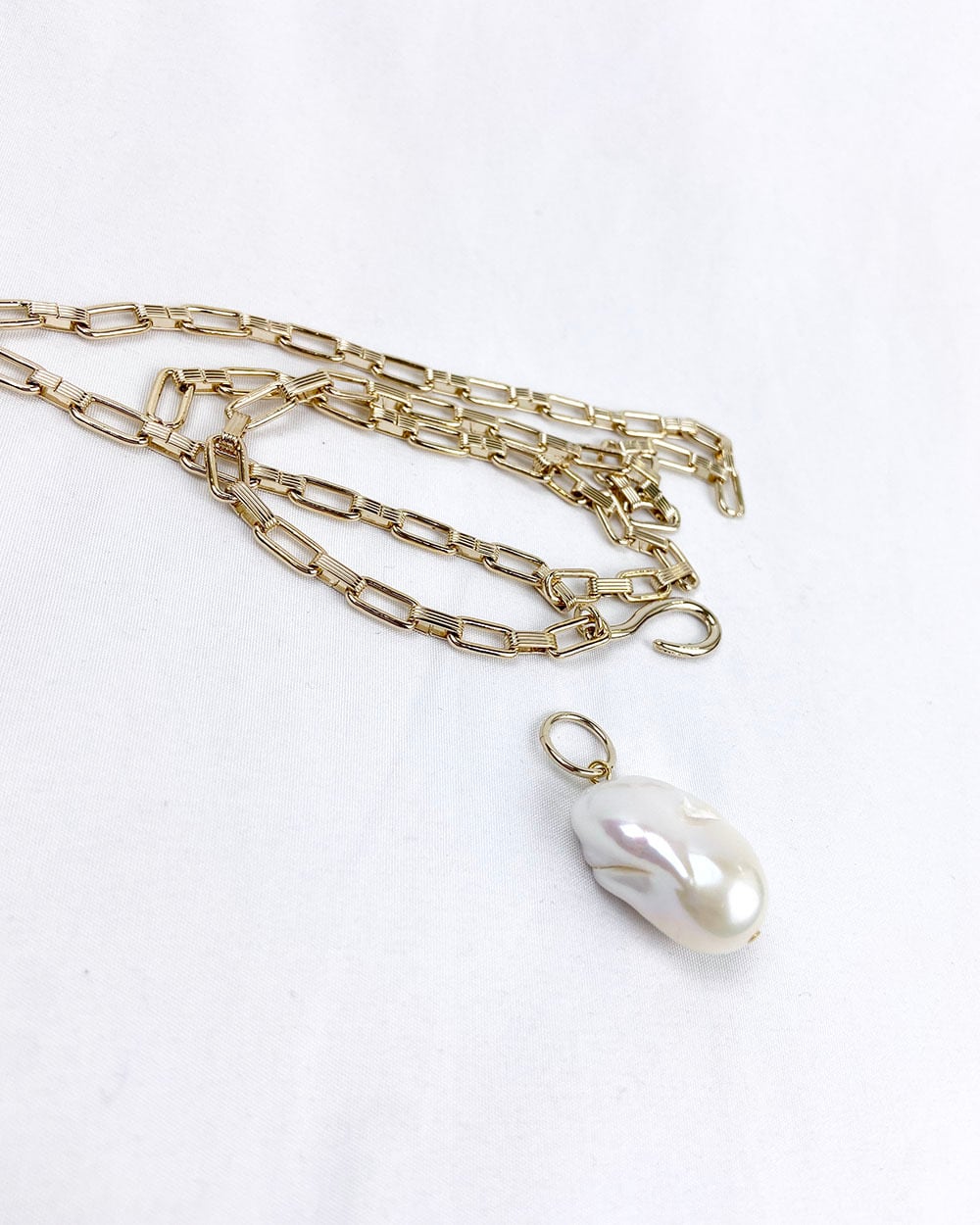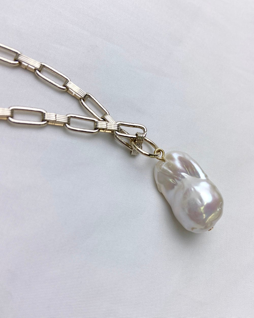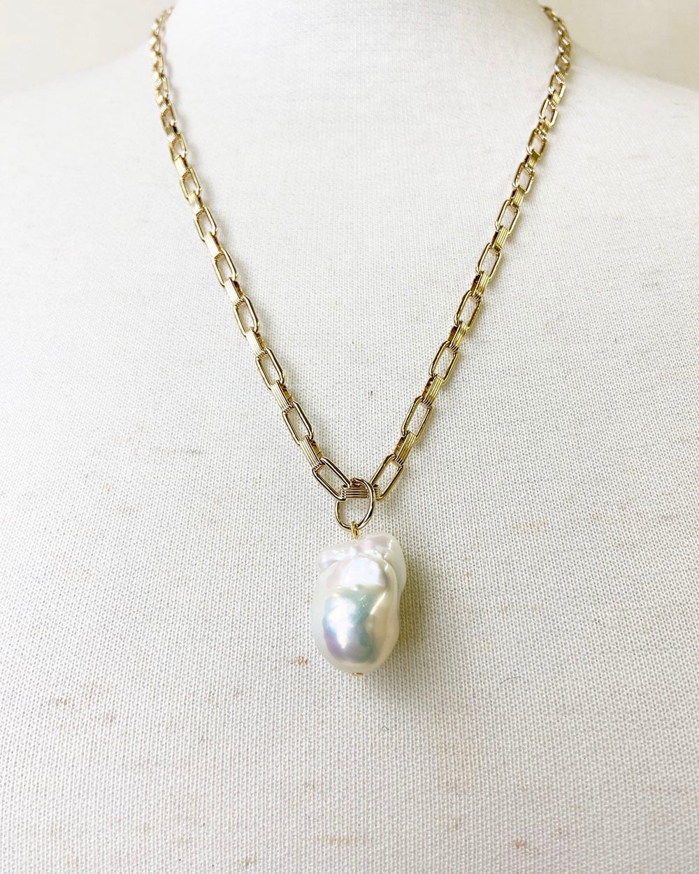 大きなバロックパールがポイントとネックレス。