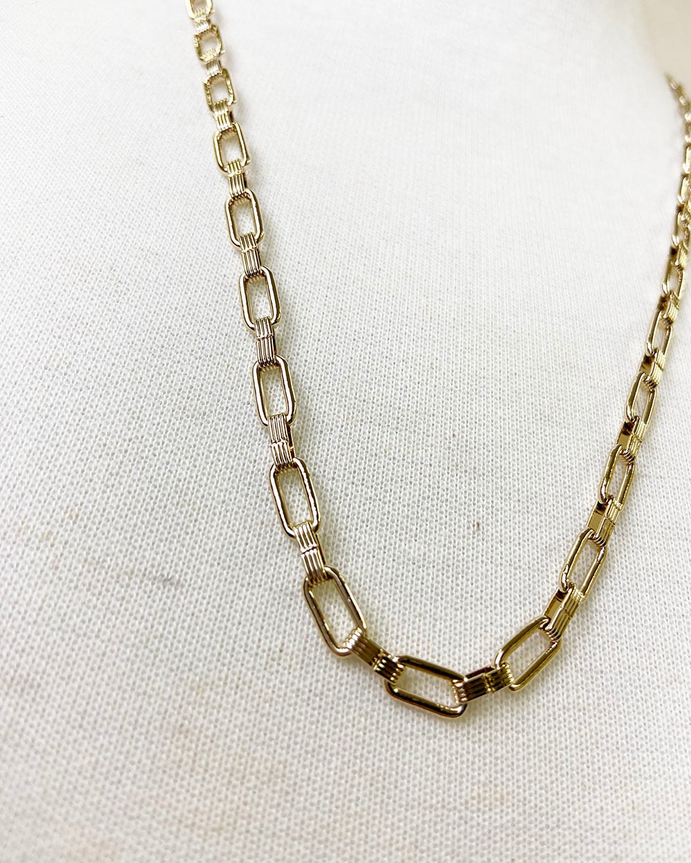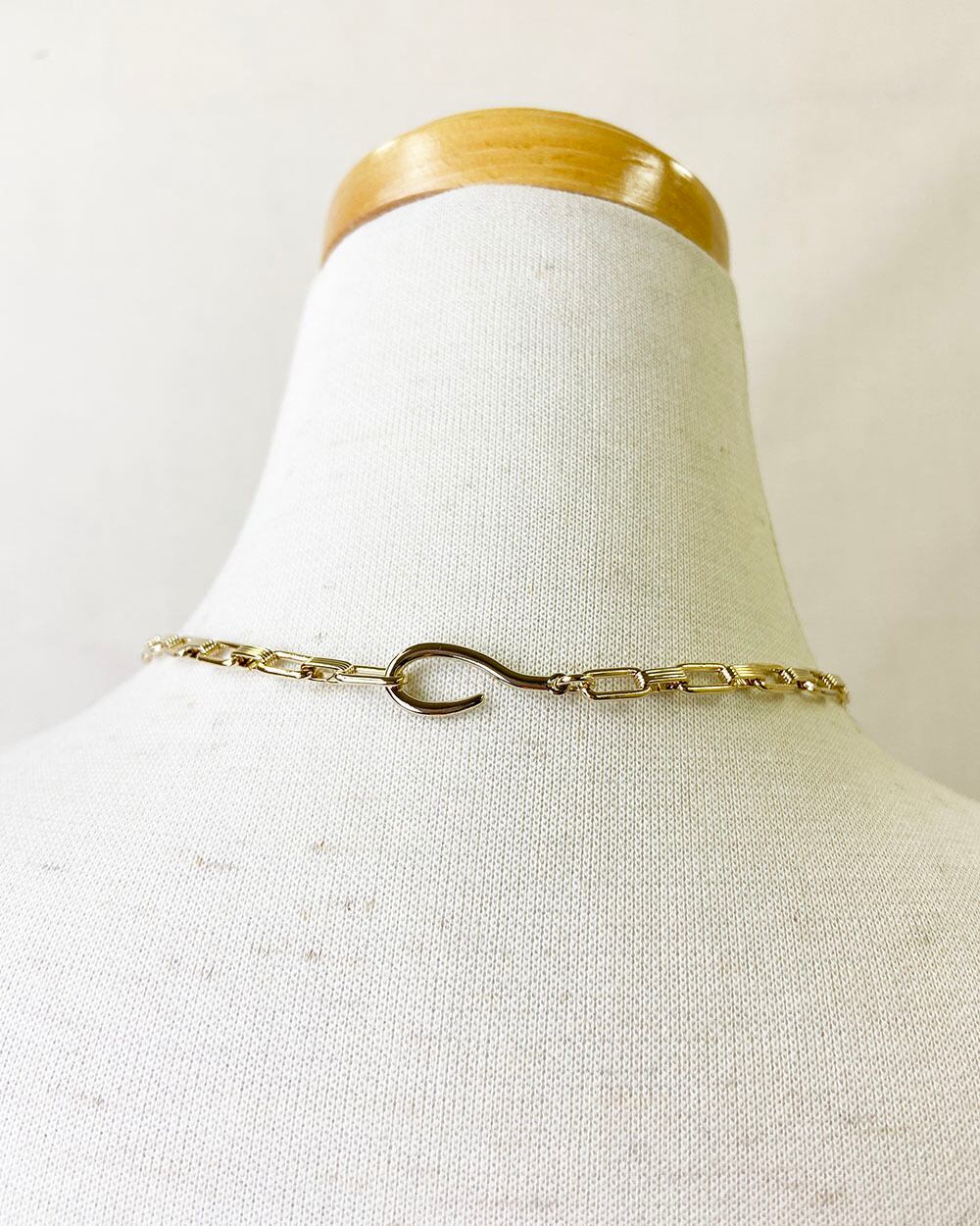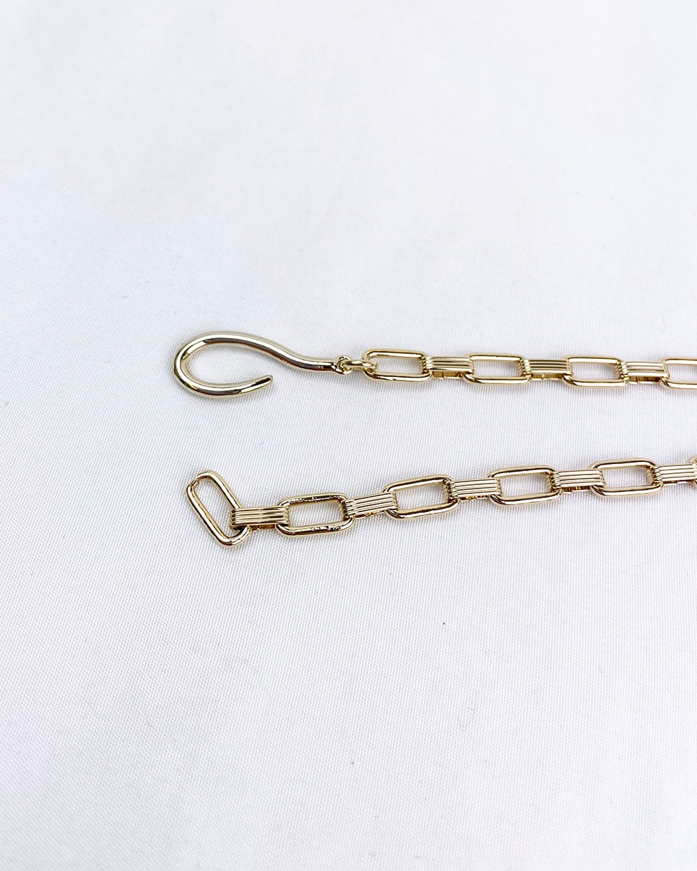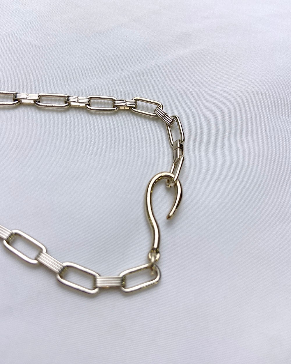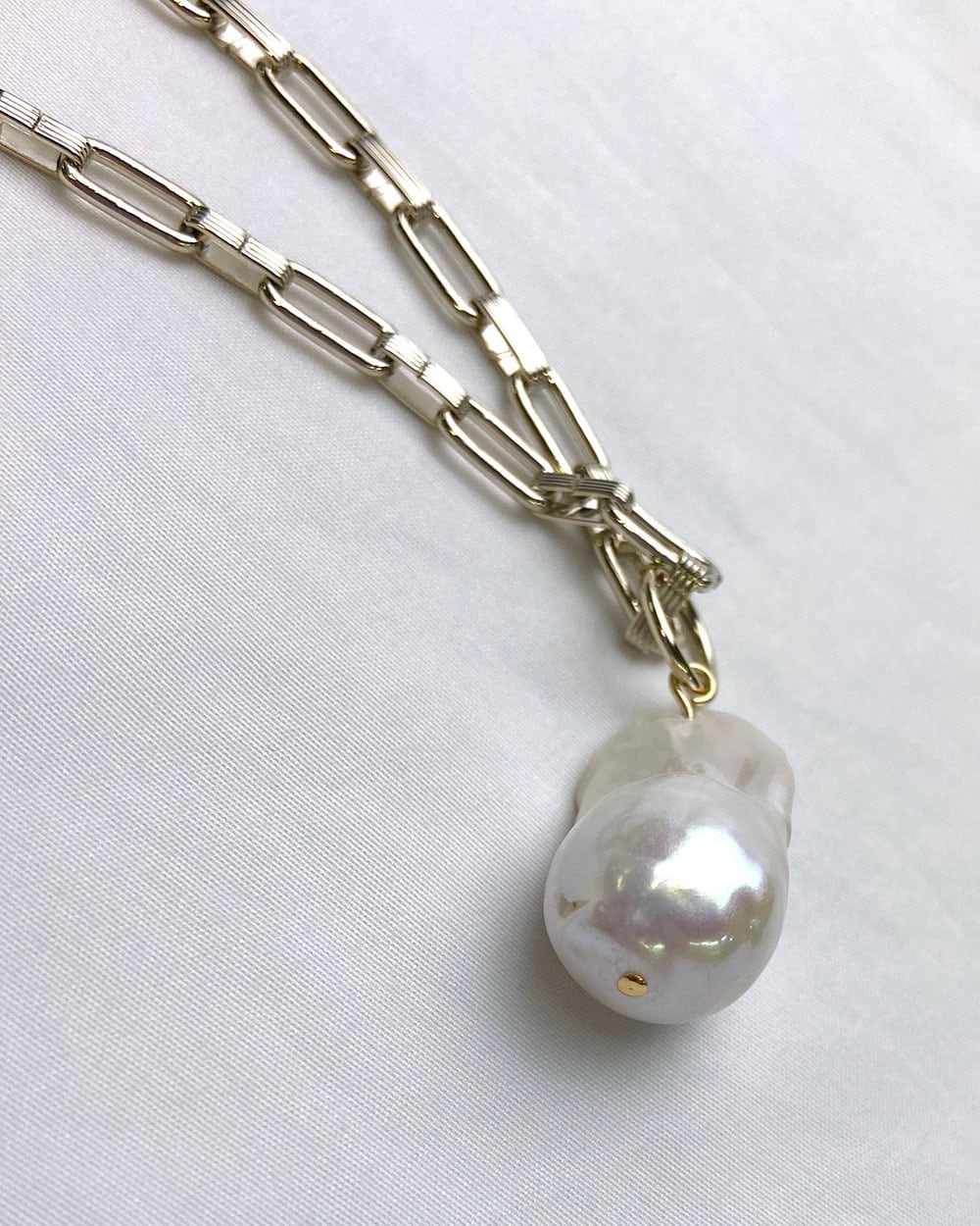 存在感のあるスクエアチェーンがモードでスタイリッシュな雰囲気に。