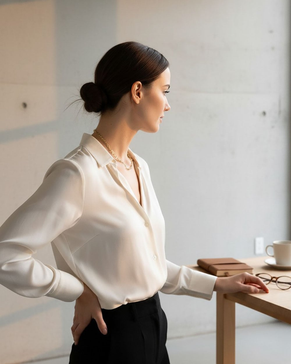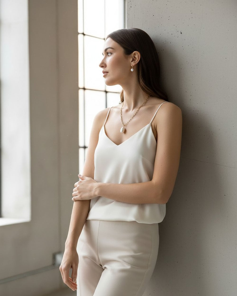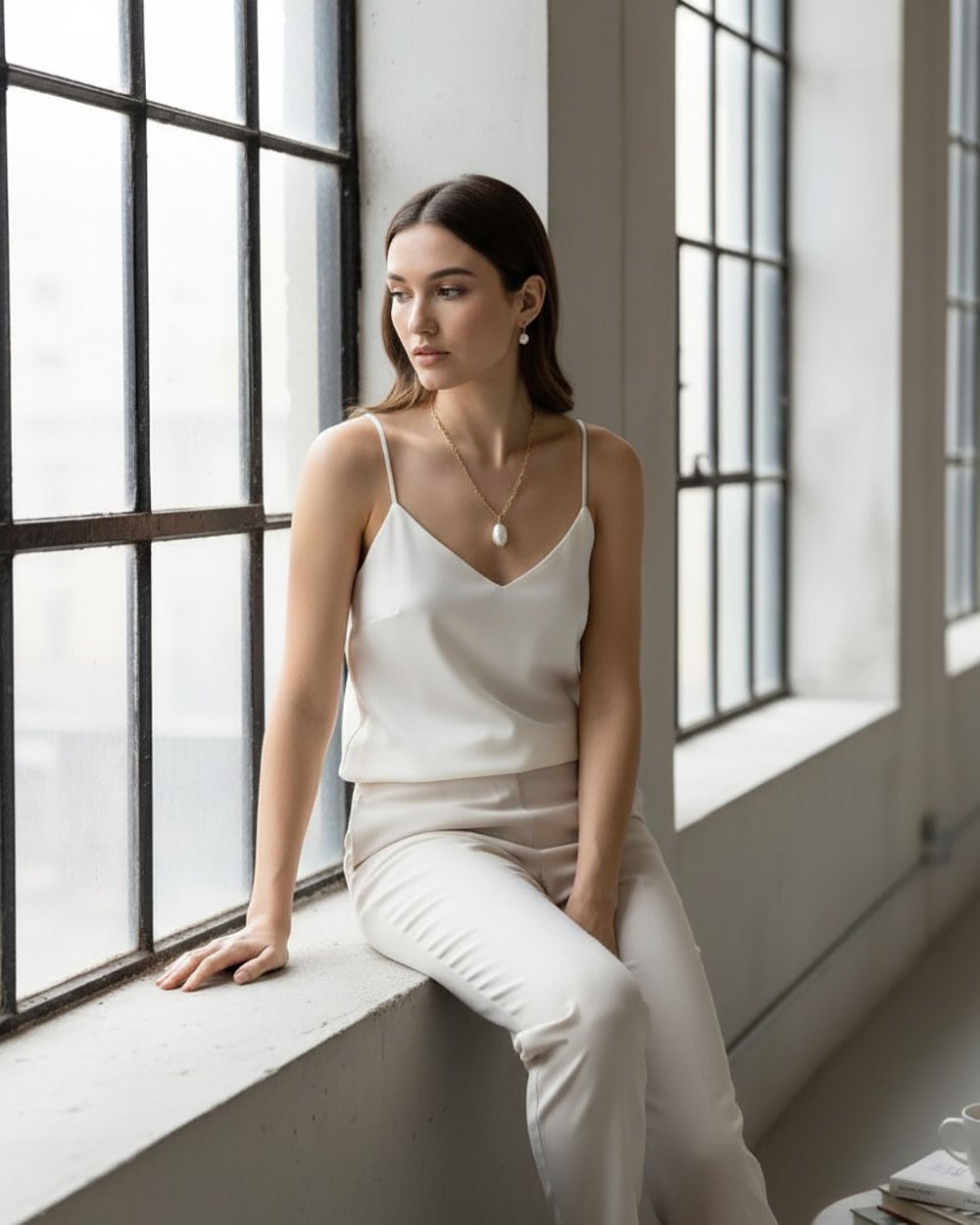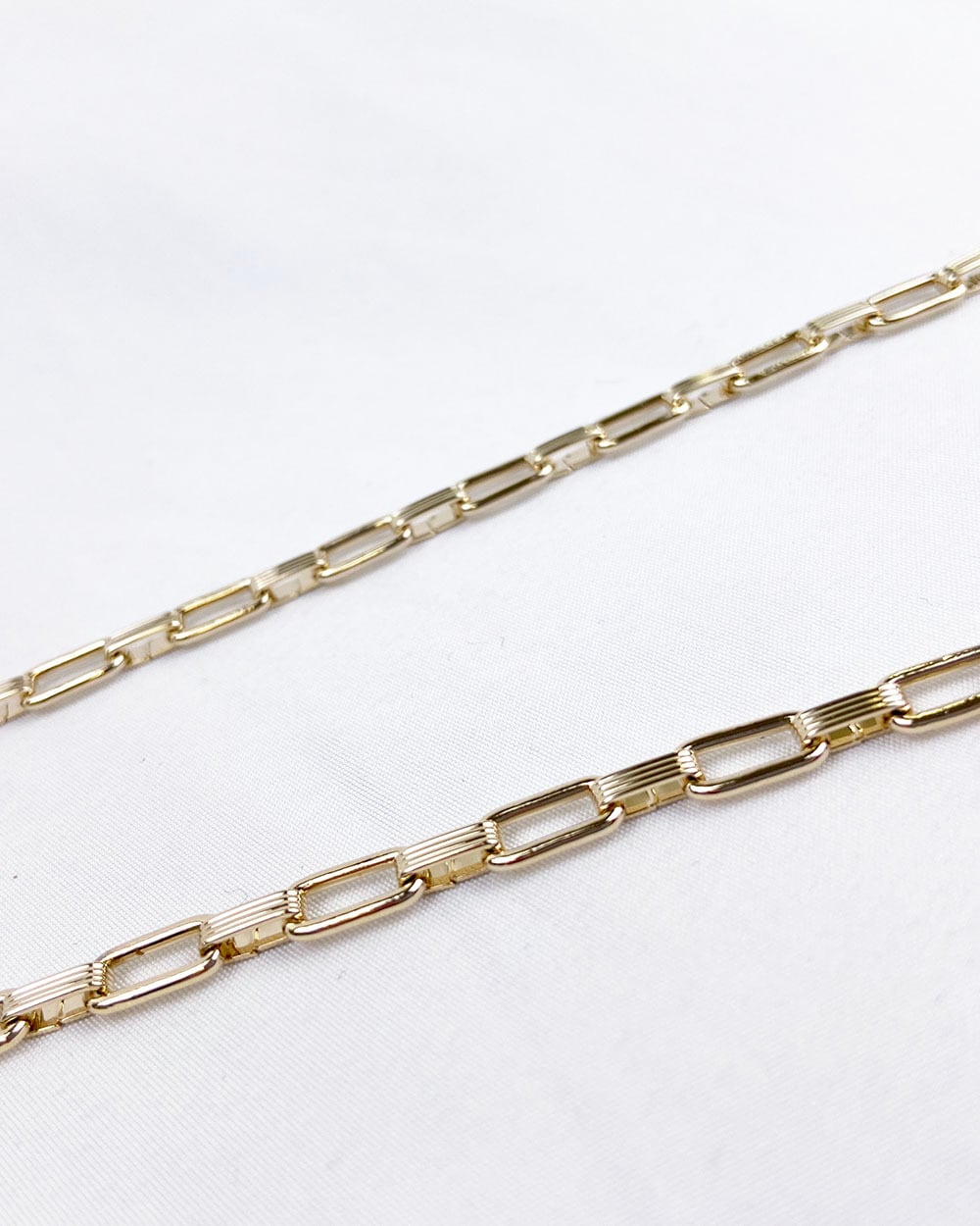 存在感のあるスクエアチェーンがモードでスタイリッシュな雰囲気に。