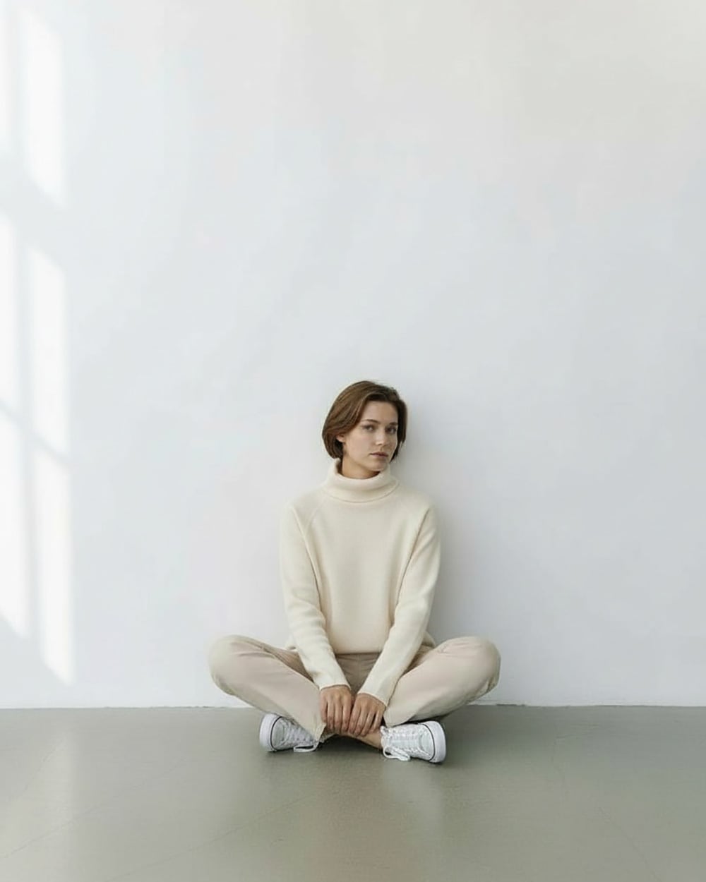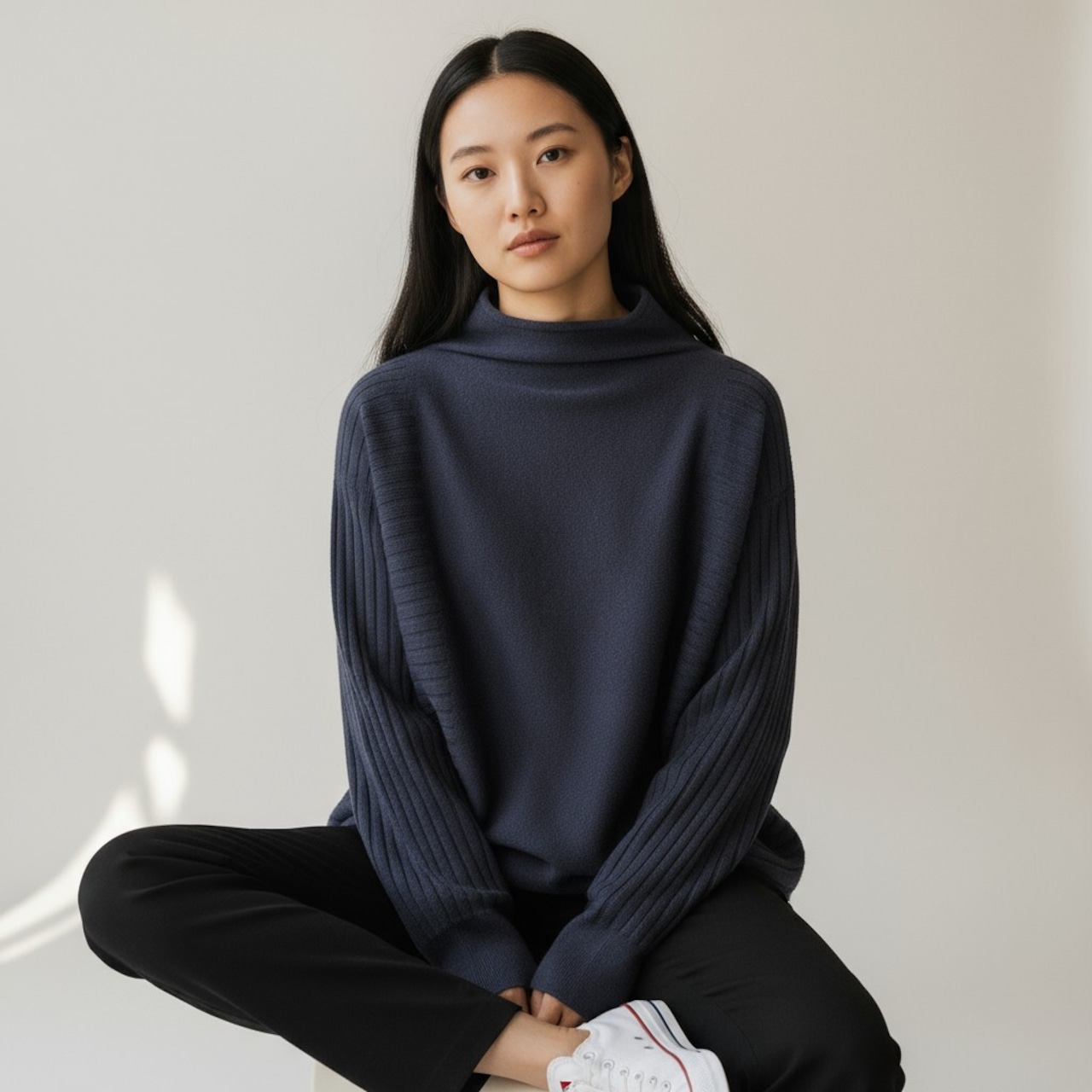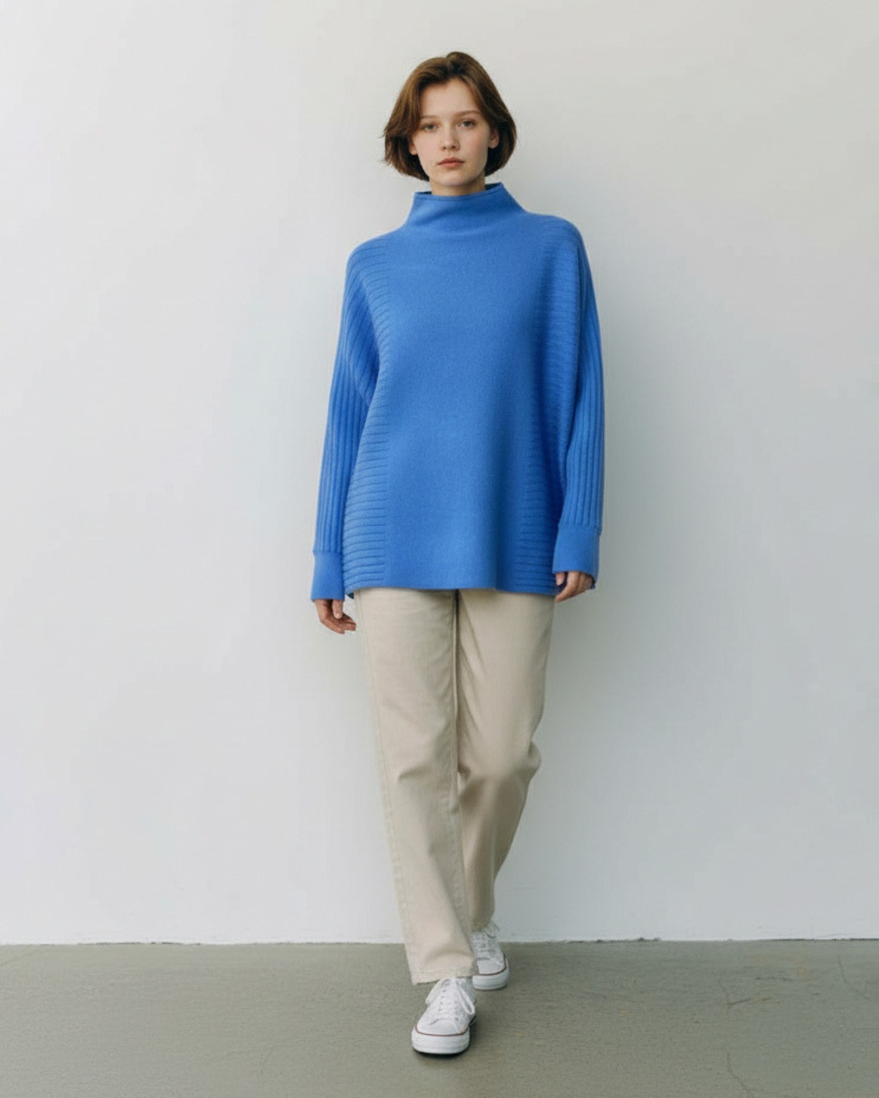こなれ感あるボトルネックのゆとりあるシルエット。