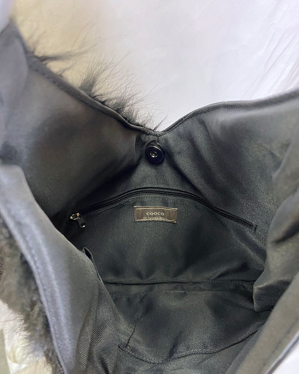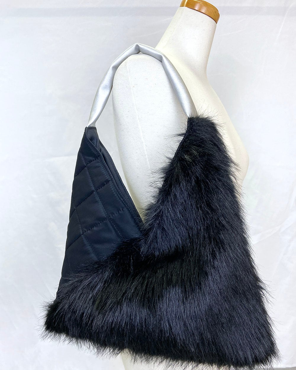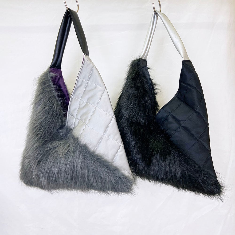 ファーとキルティングの切り替えがかわいい三角ワンショルダー