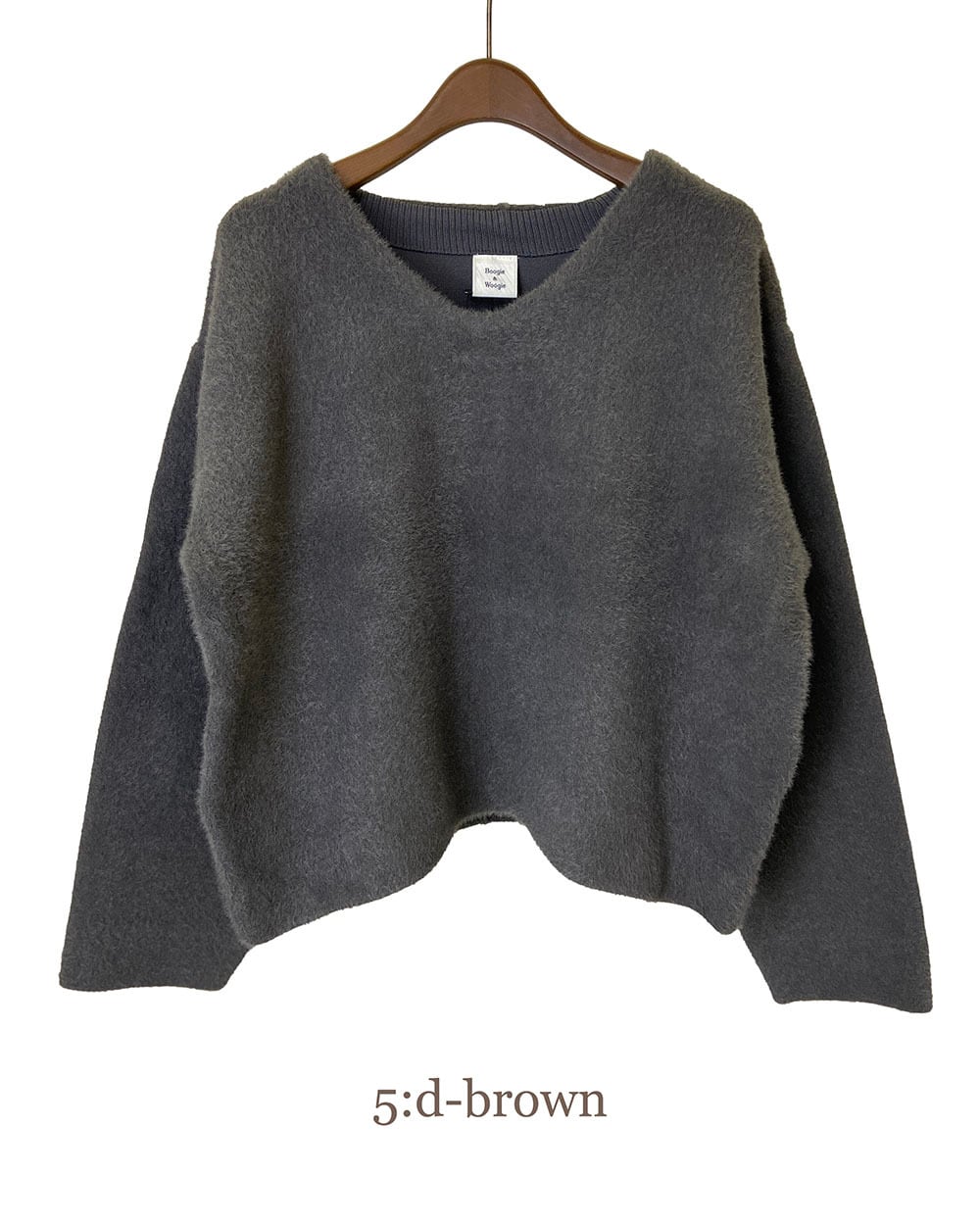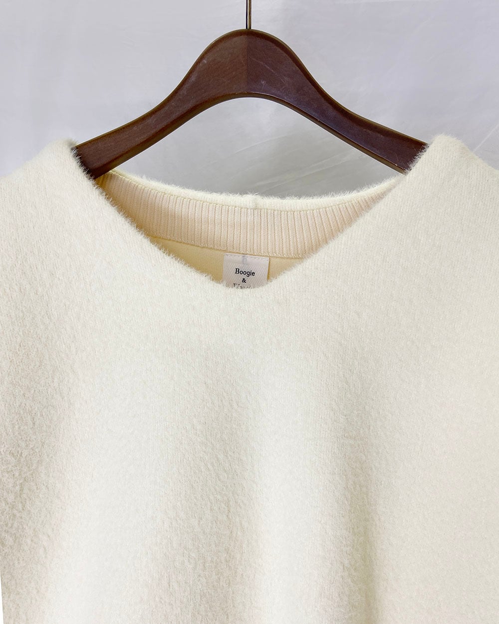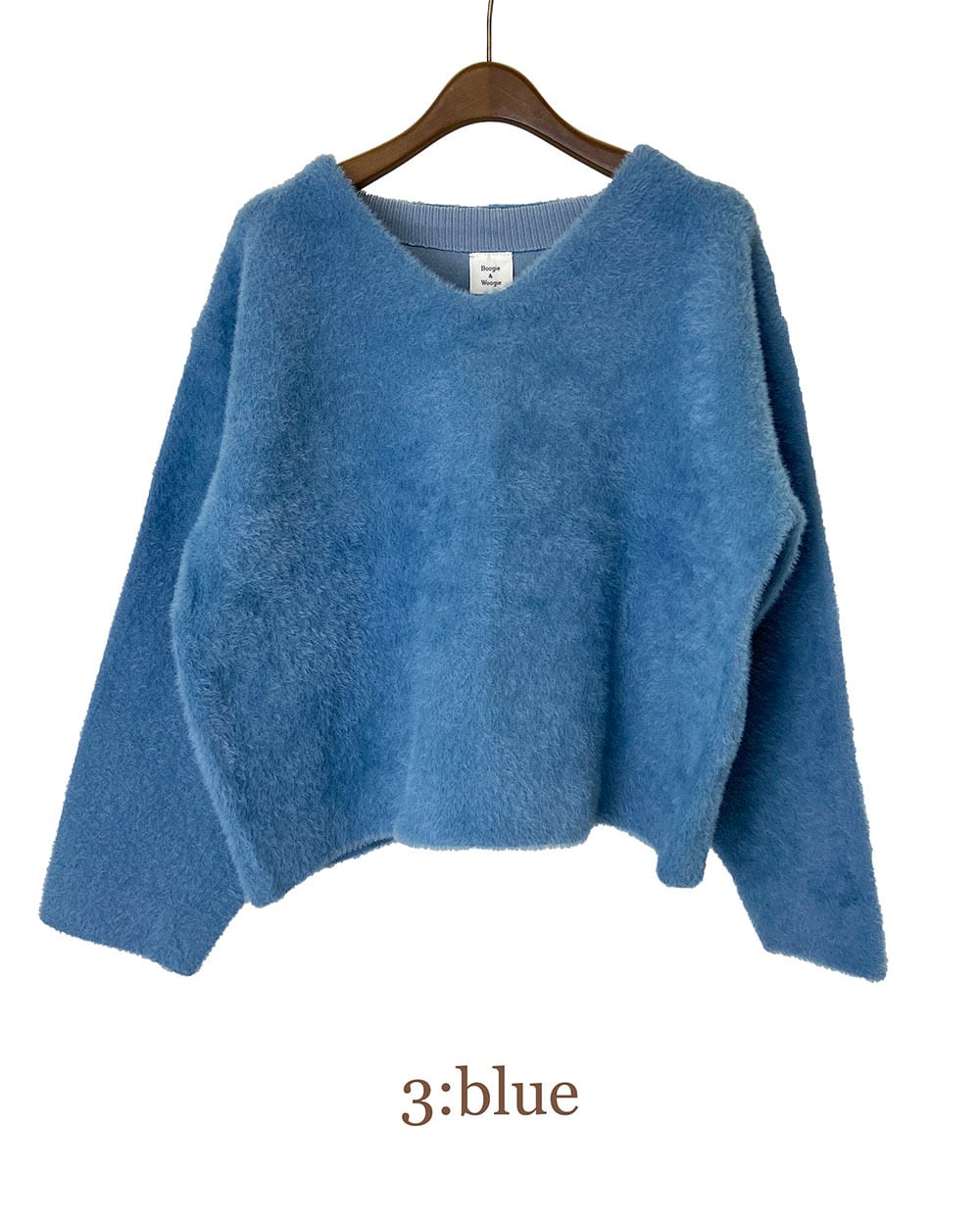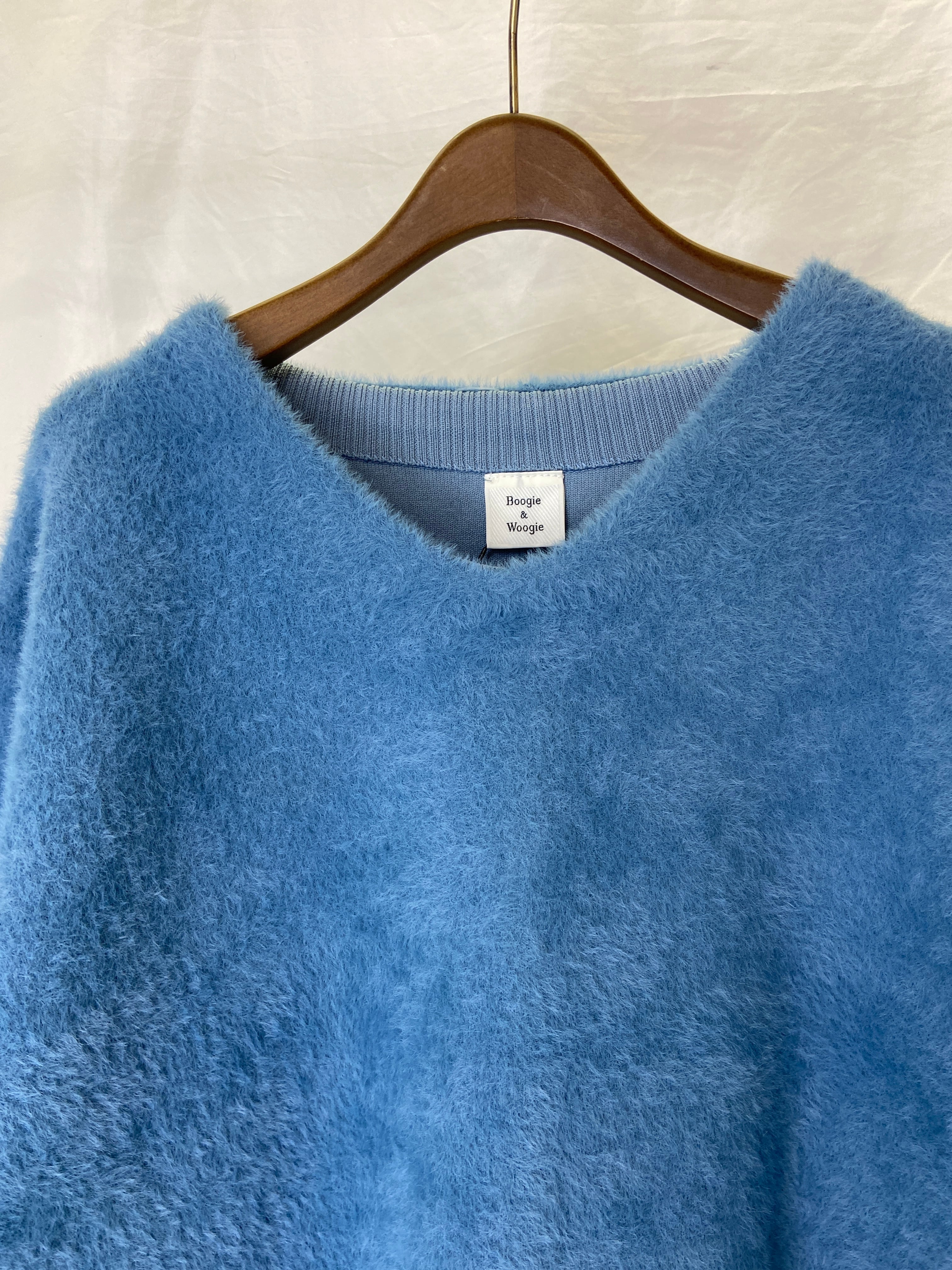 ふんわり柔らかなシャギーニット素材を使用したVネックニット。