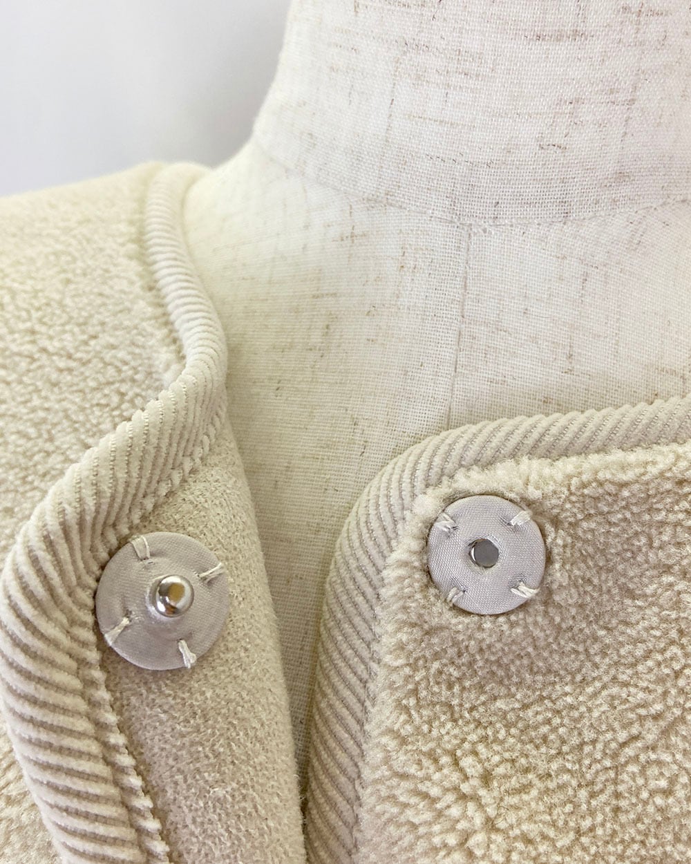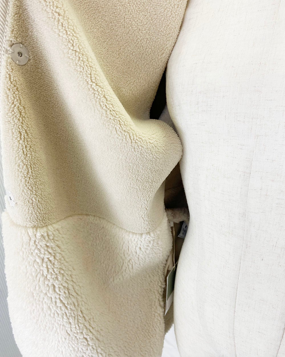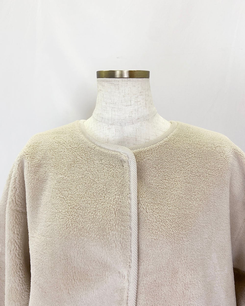 ふんわりとしたぬくもりに包まれる、やさしい印象のフェイクムートンコート。
