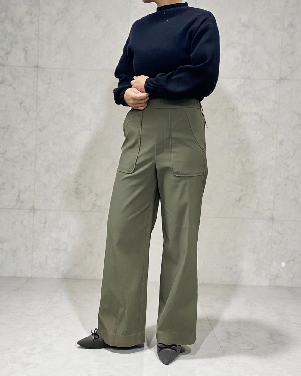 しなやかな伸縮性があり、動きやすさ抜群!多様なスタイルに合わせやすく、カジュアルからシンプルスタイルまで幅広く活躍するアイテムです。シルエットはスッキリとしており、さまざまなトップスとの相性が良いのもポイントです!