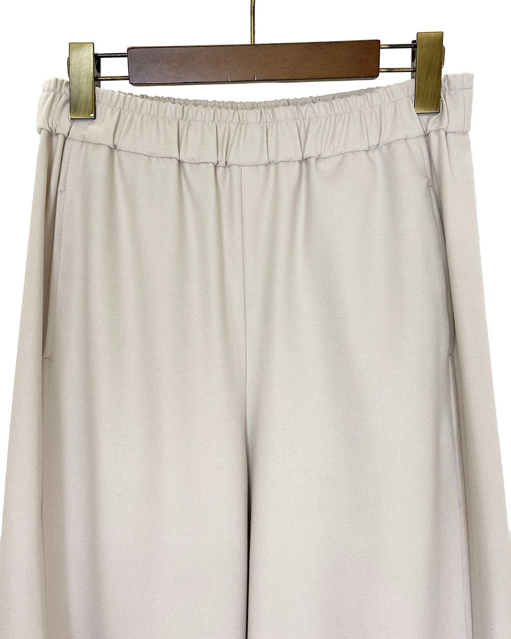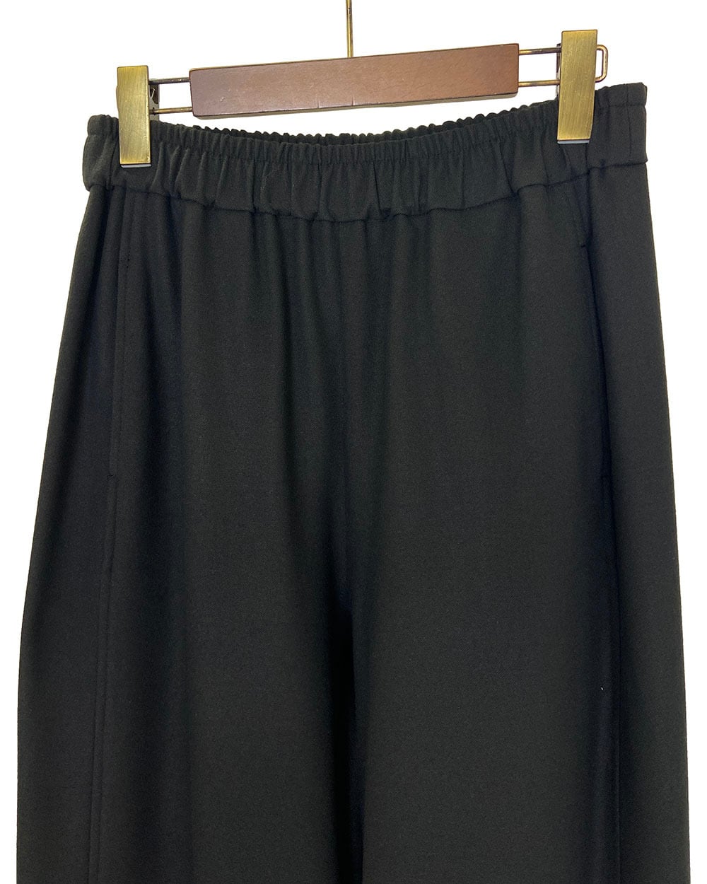 前見頃の身幅を狭く取り、サイドラインが内側に見えることですっきりとした美脚シルエットに。