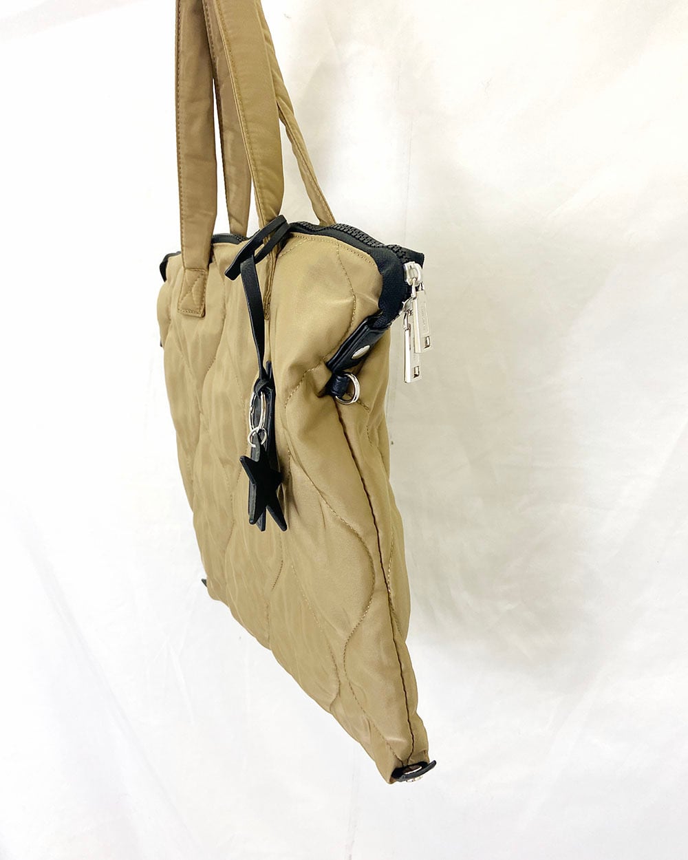 キルティングの立体的な凹凸感がポイントのトートバッグ。