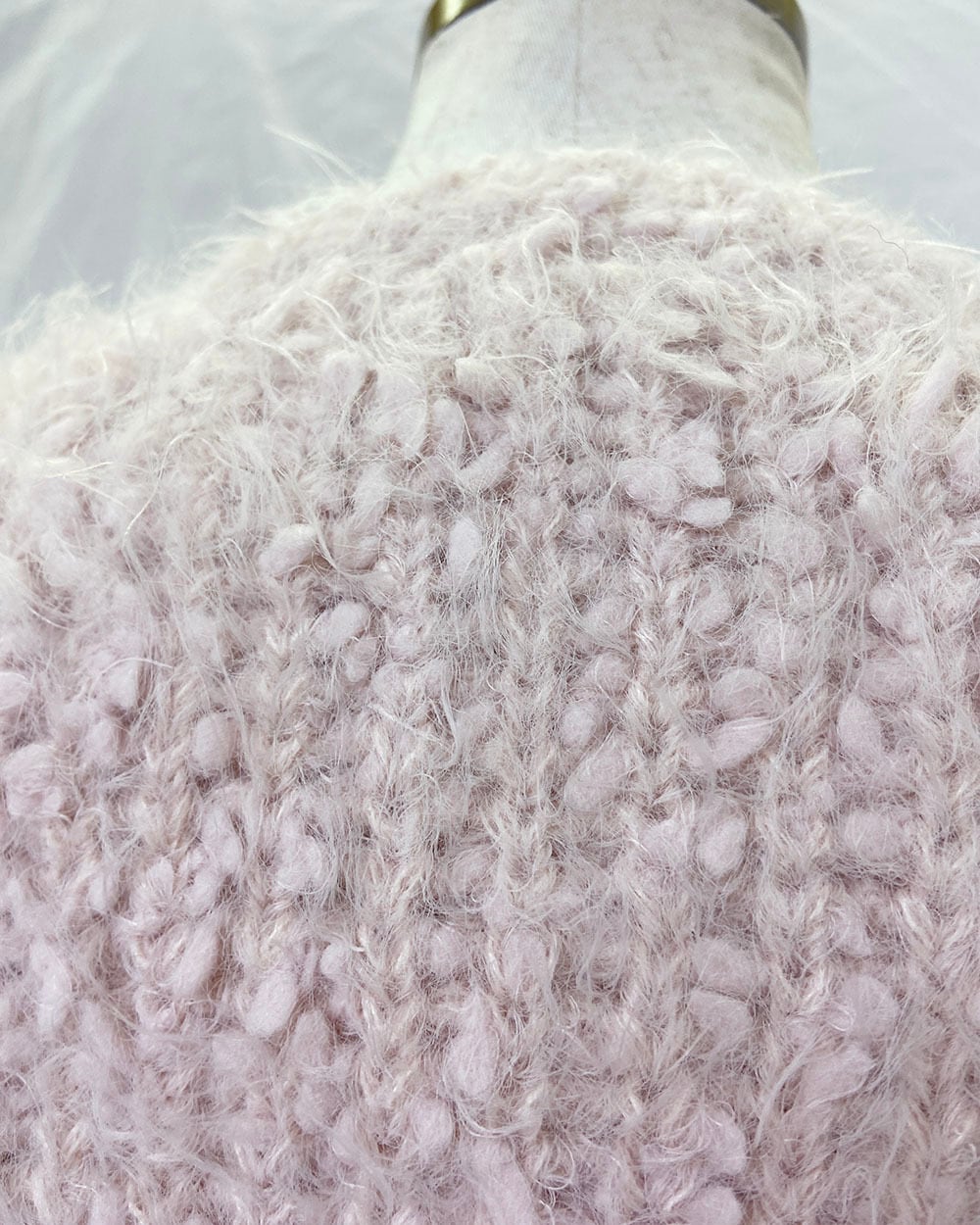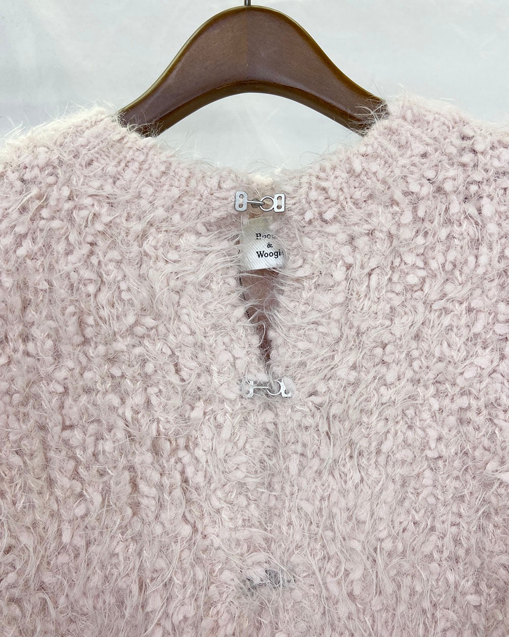 ふわふわとしたタッセルポールシャギーを使用した、贅沢な着心地のカーディガンです。