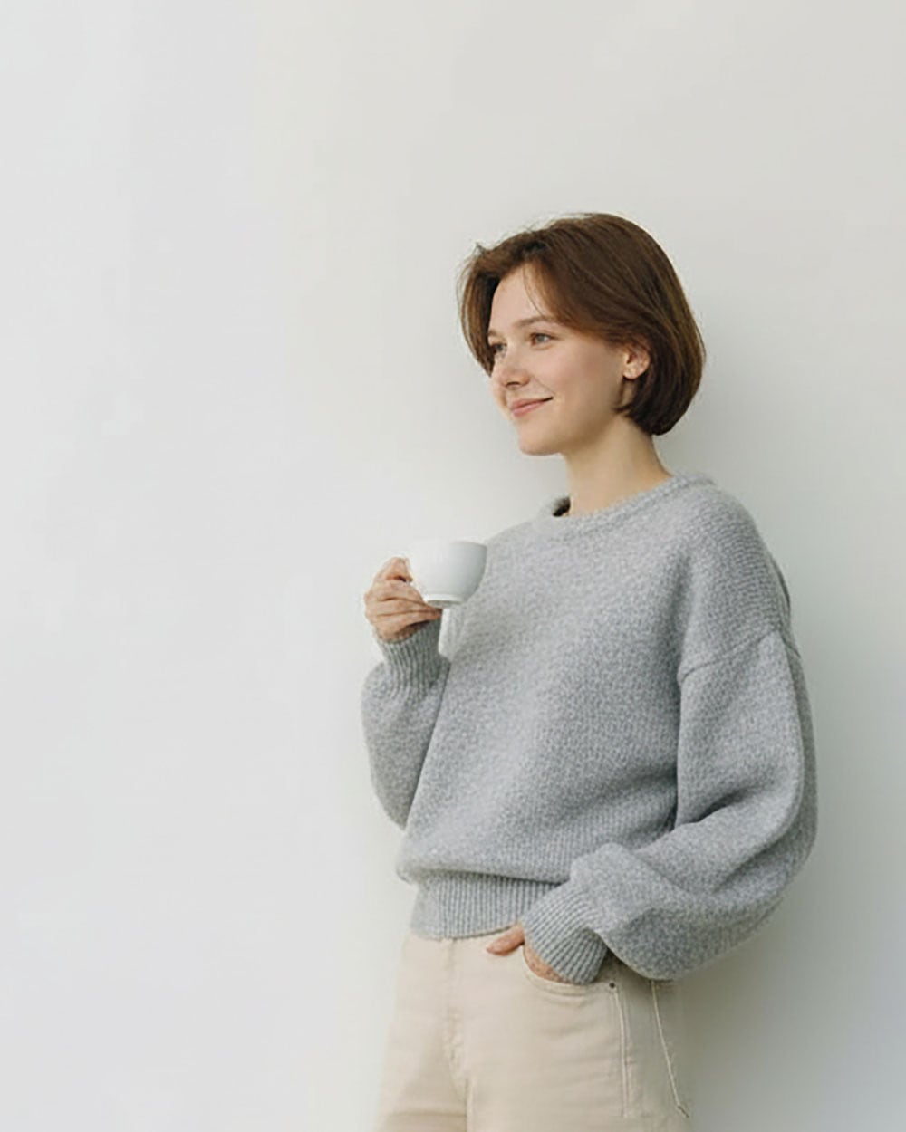 短めの丈とふわふわとしたフェザーニットが特徴で、