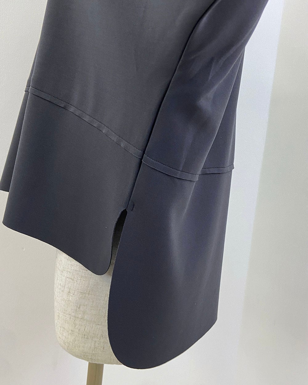 滑らかな表面感とスルッとした肌触りが特徴で、まったりとした美しいドレープを作り出します。セレモニースタイルにもぴったりで、エレガントな印象を与える一枚です。シルエットは美しく整えられており、後ろにはボタンあり。華やかな場面にも最適です。日常使いにも活躍するアイテムです。