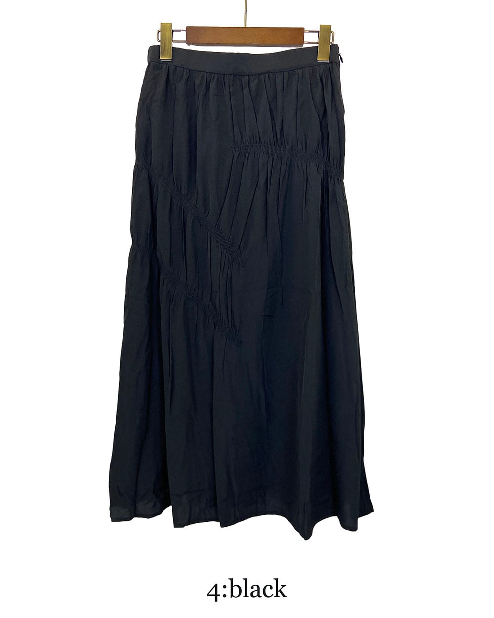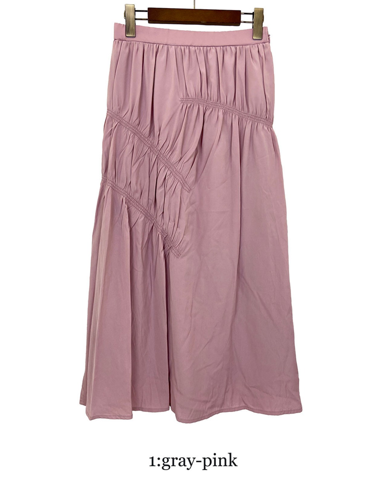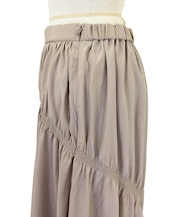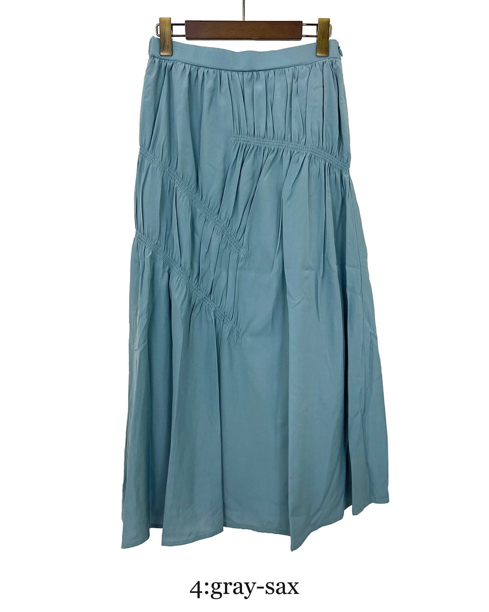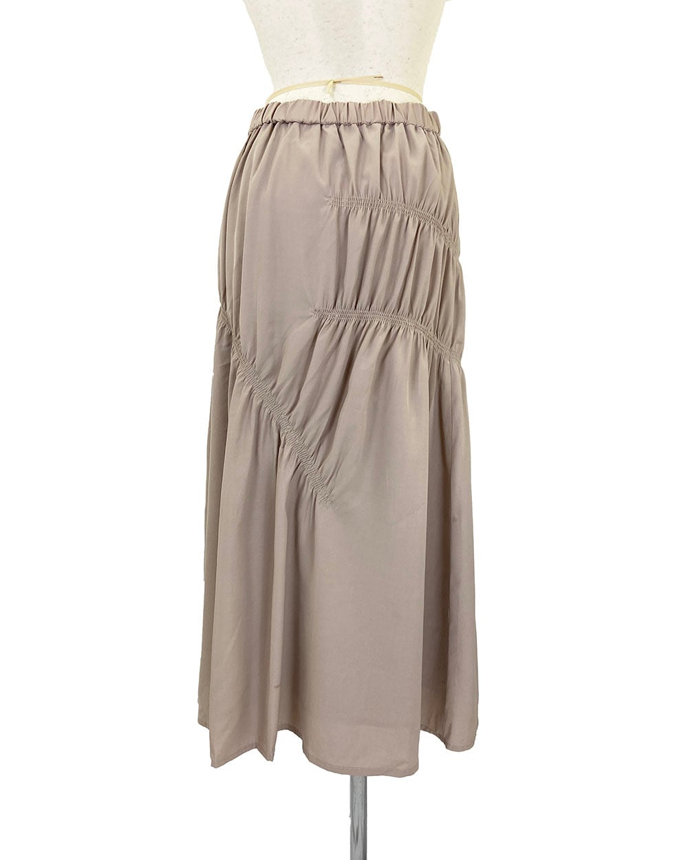 アシンメトリーなデザインが特徴です。ゴムシャーリングで動きやすさと快適さを実現。