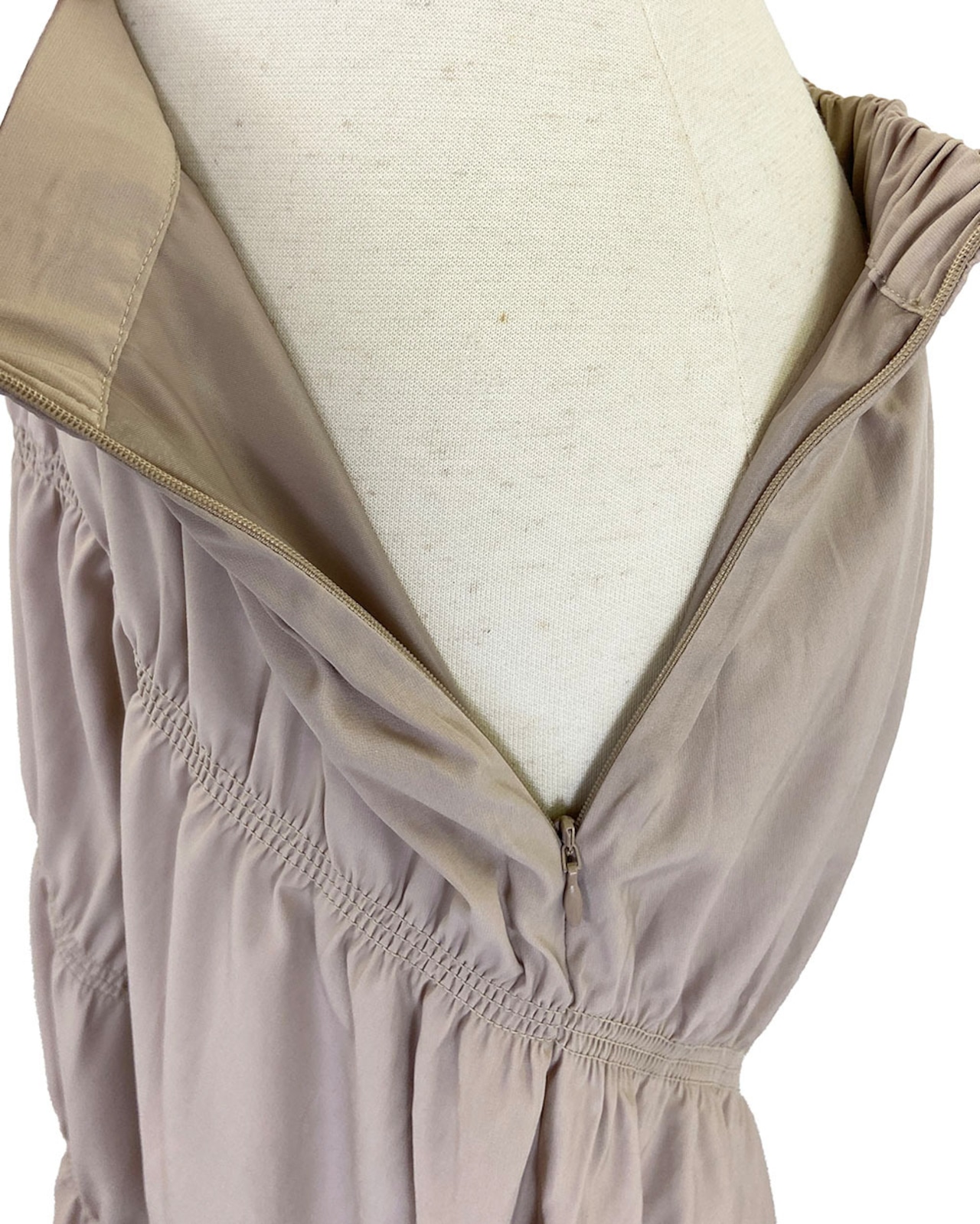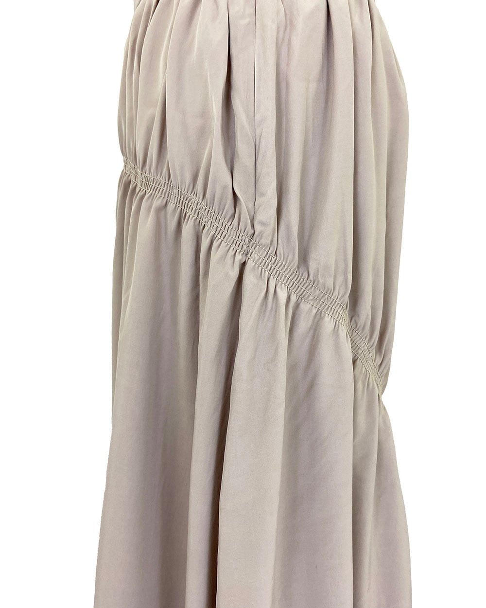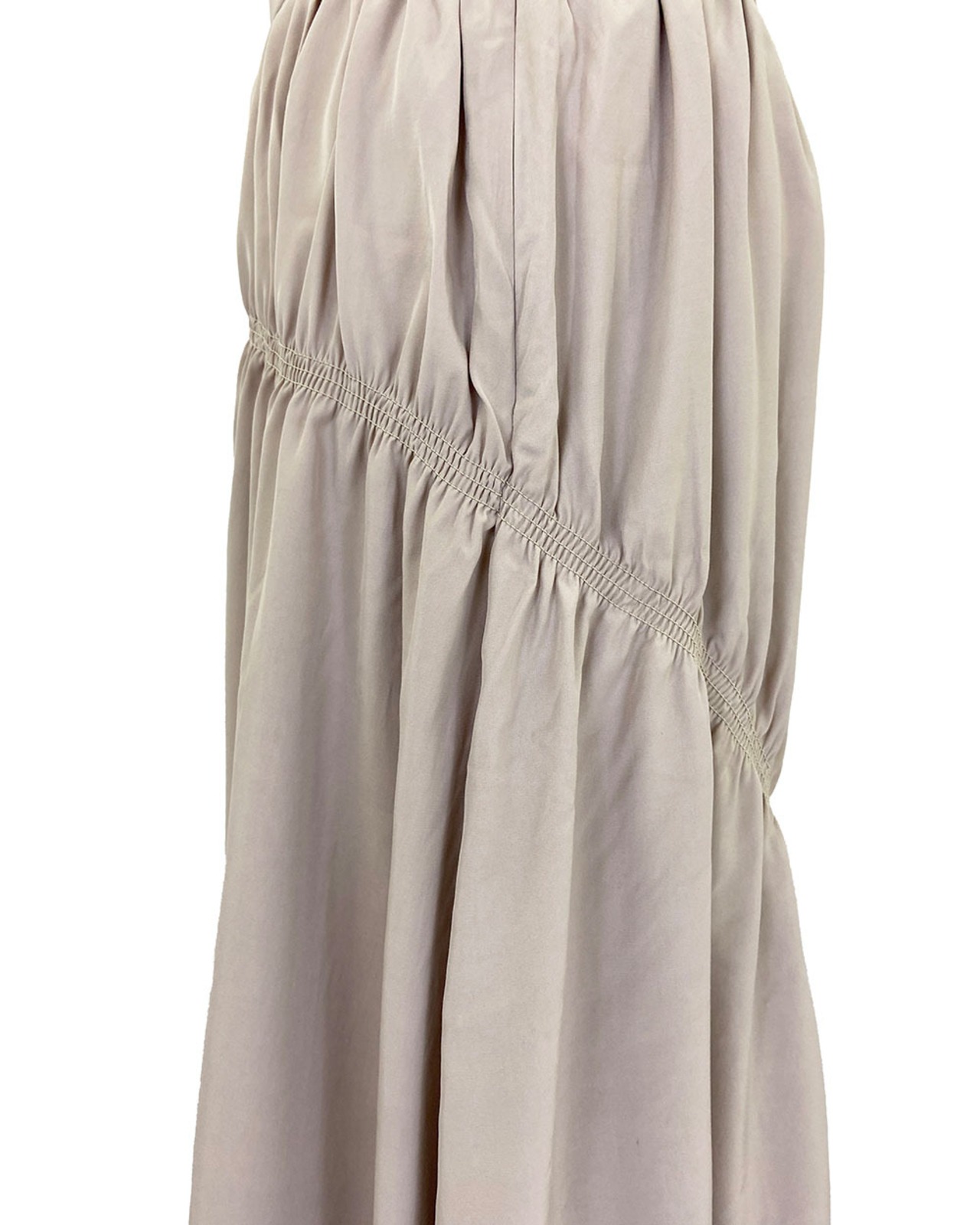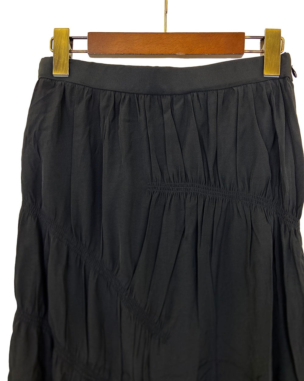 アシンメトリーなデザインが特徴です。ゴムシャーリングで動きやすさと快適さを実現。