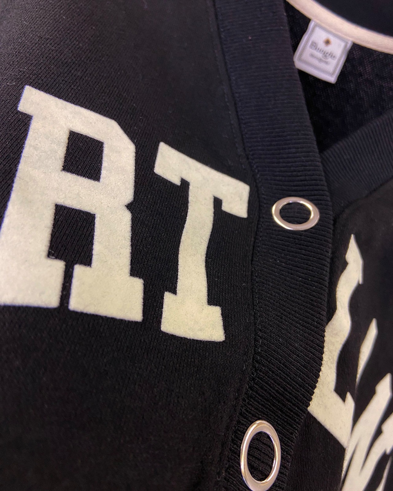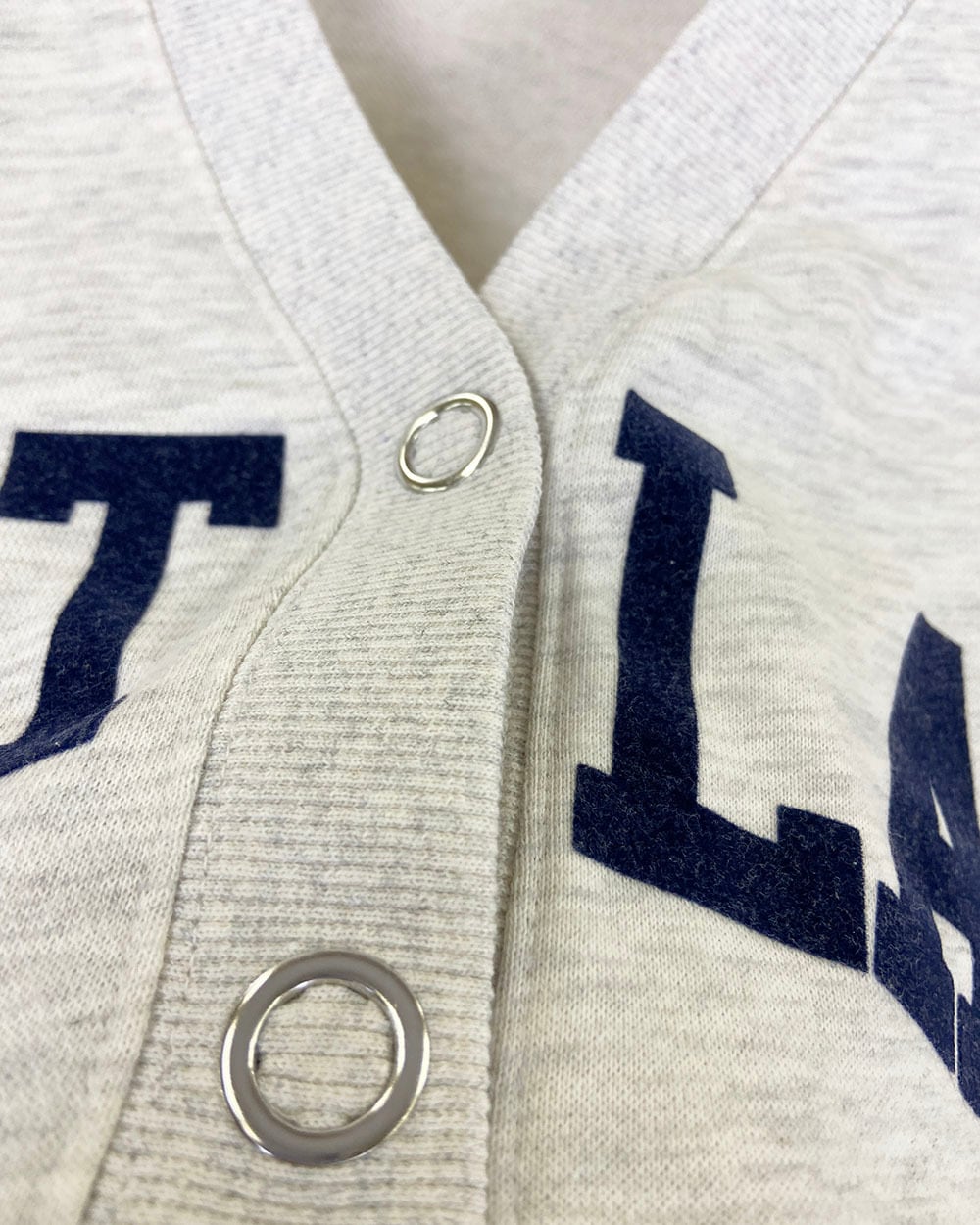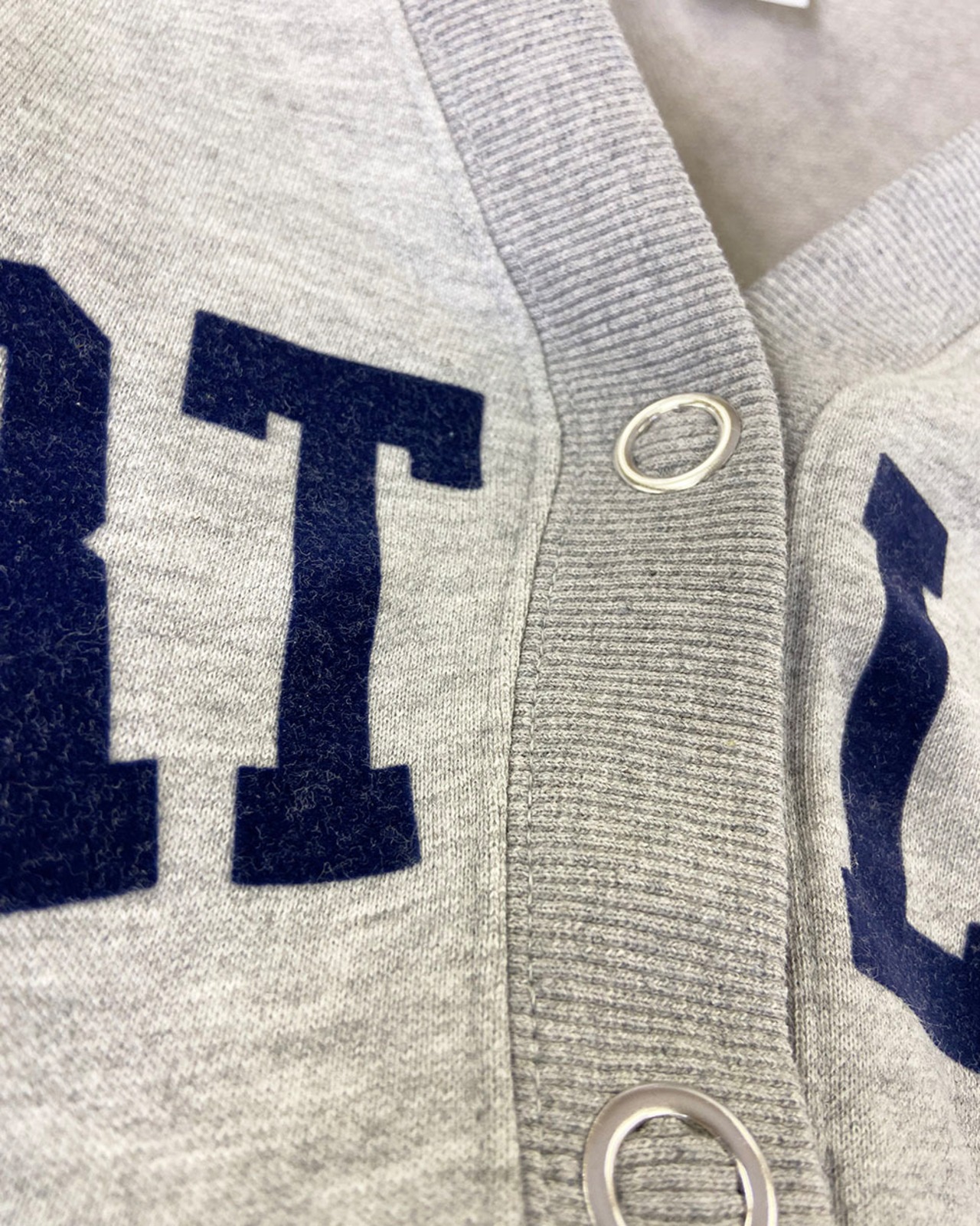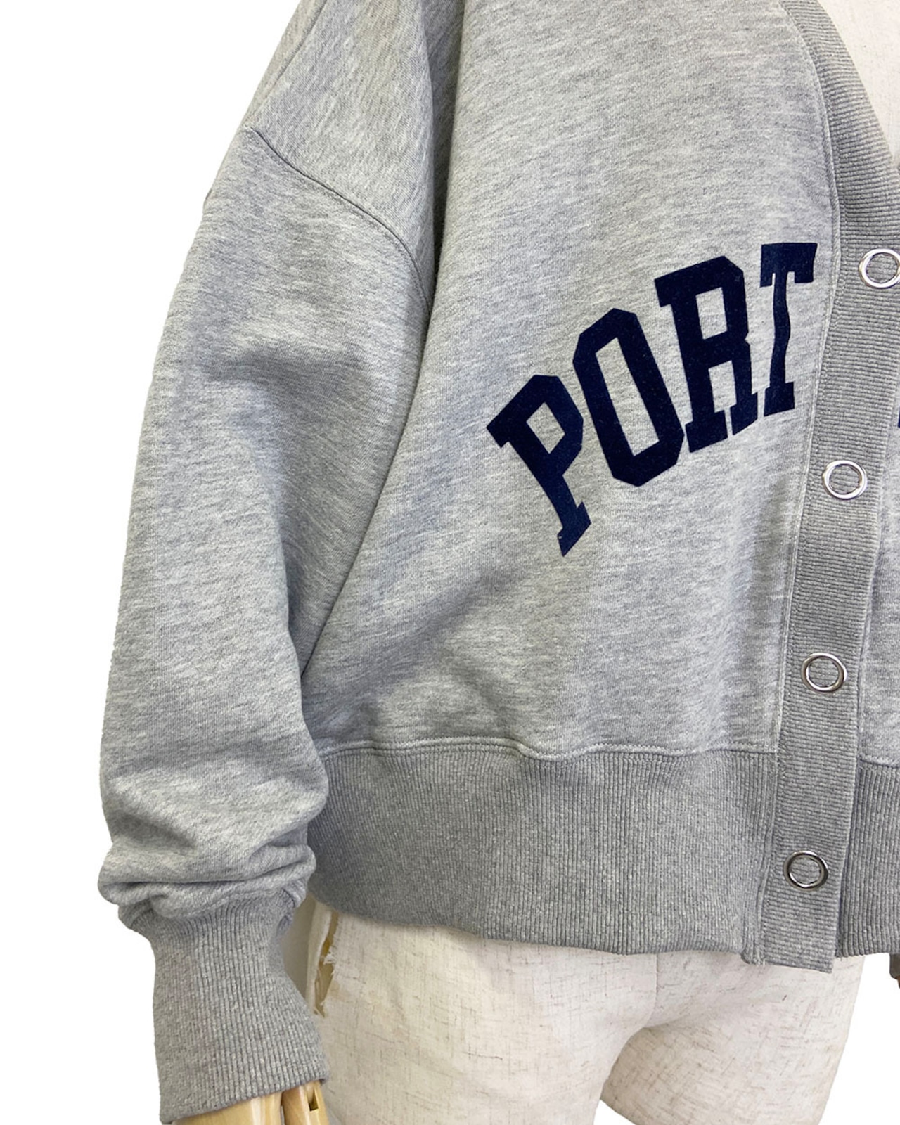 ワイドシルエットがかわいいフロッキーロゴプリントのVネックカーディガンです。