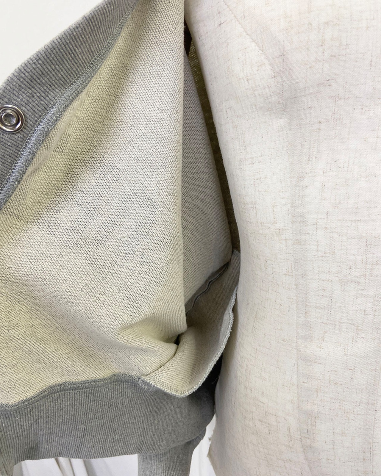 リングスナップボタンのディテールがアクセントとなり、さりげないおしゃれ感を演出。