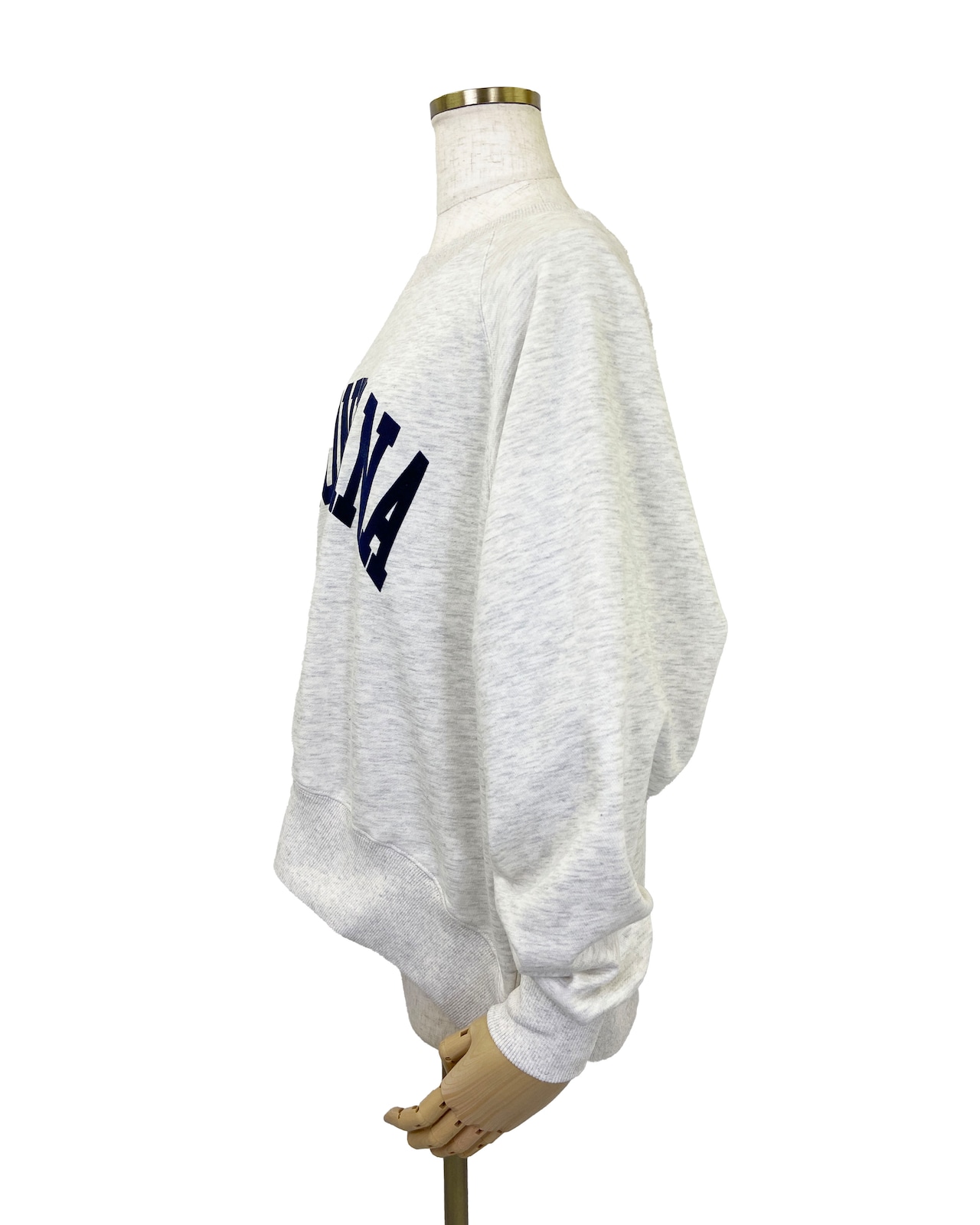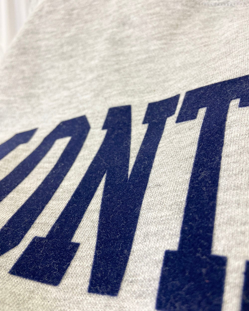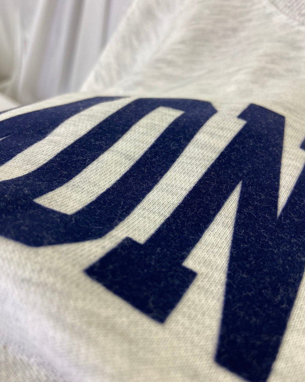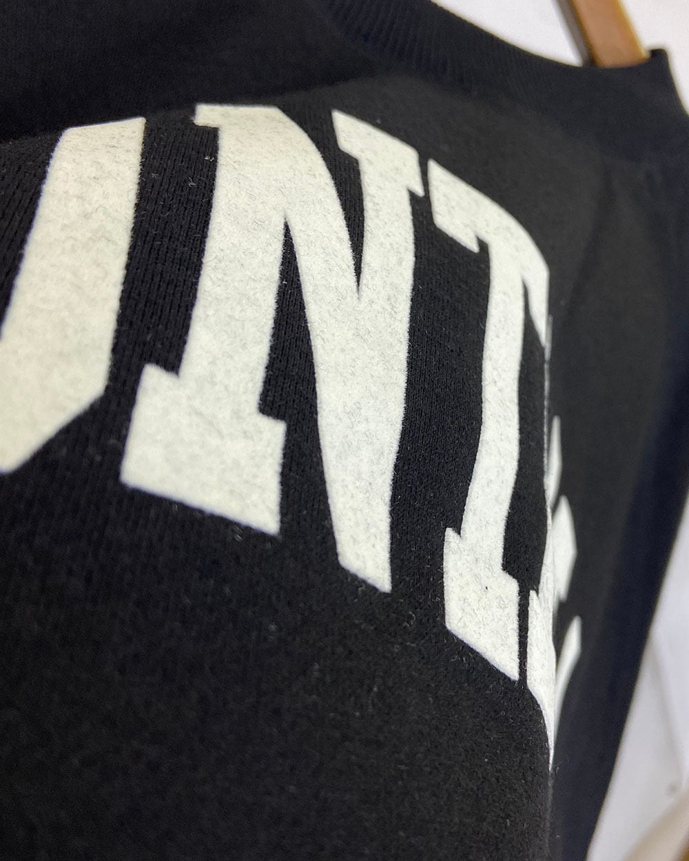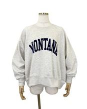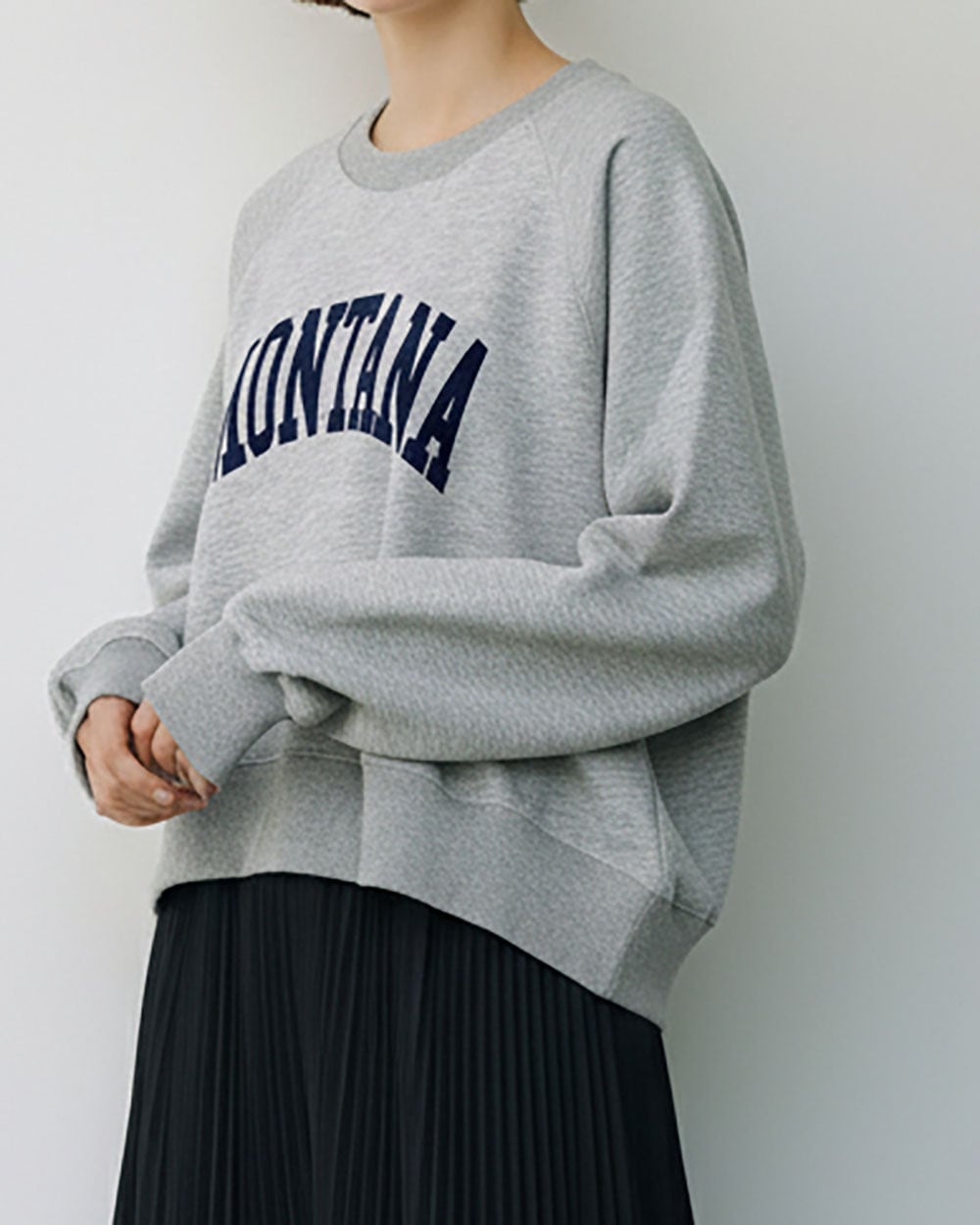 前後差付きのワイドシルエットがかわいいクルーネックフロッキーロゴプルオーバーです。