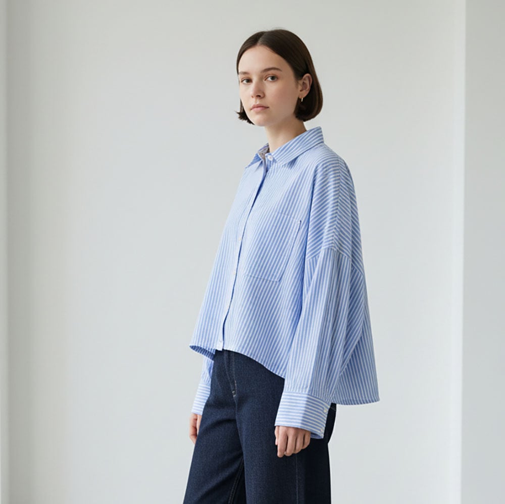 ラウンドヘムショート丈シルエットがポイントのシャツブラウス。