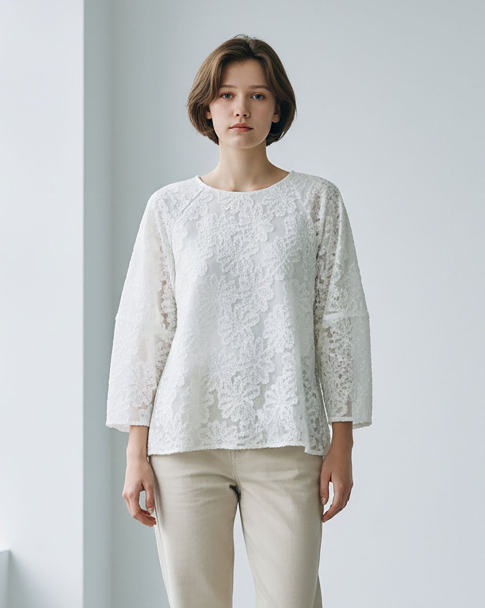 2026S/S フラワーシアージャガードプルオーバーブラウス no.7612104