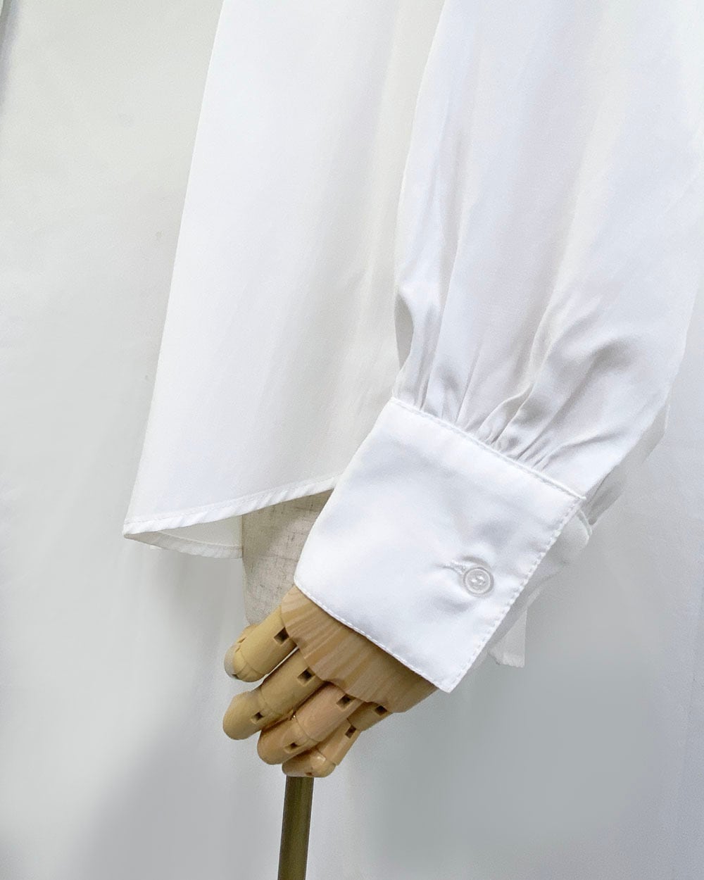 テーパードパンツに合わせてクールに、またタイトスカートにインしてクラシックな装いに。オン・オフ問わず、日常にクラス感を添えてくれる一着です。