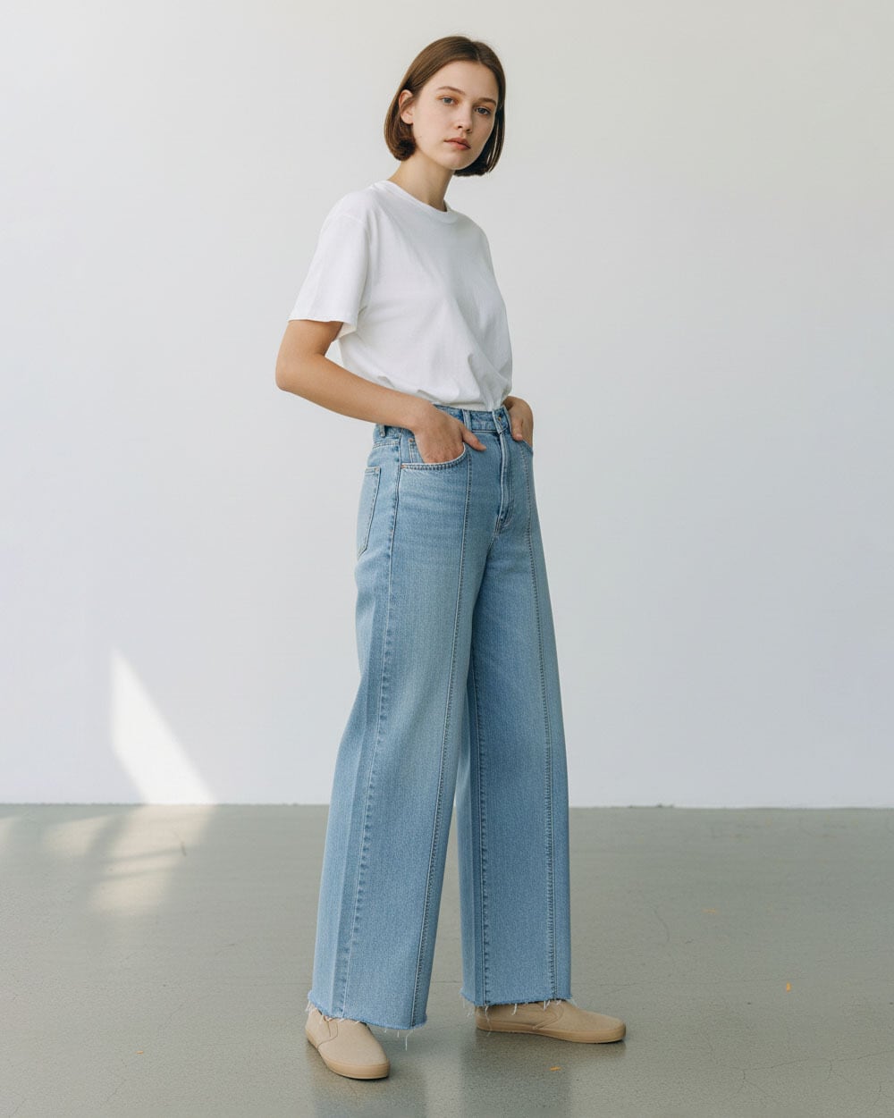 9.5ozのストレッチデニムを使用した、春夏にぴったりのワイドパンツ。