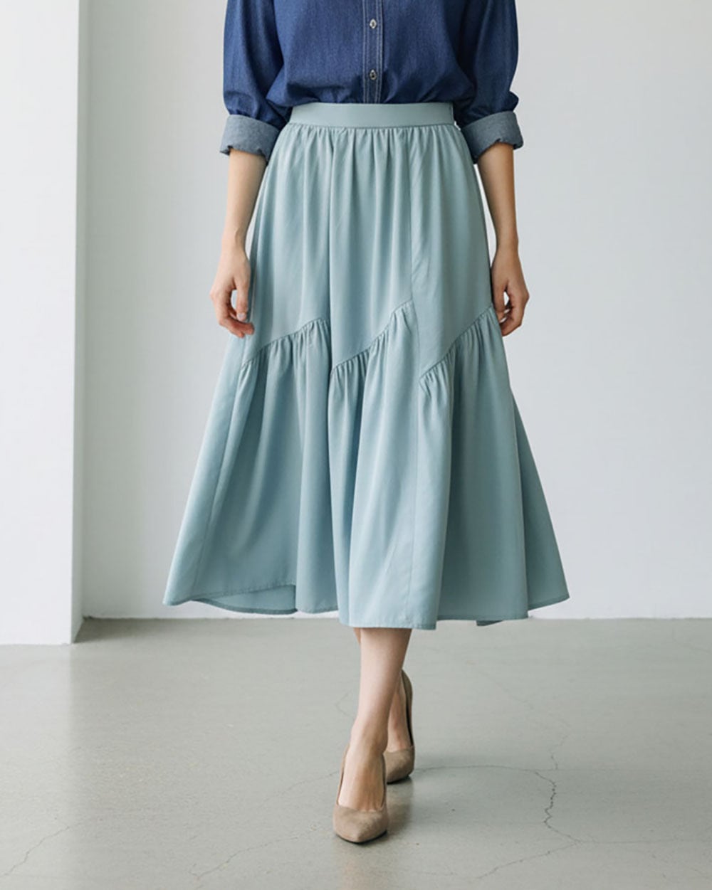 切替ギャザーフレアースカート