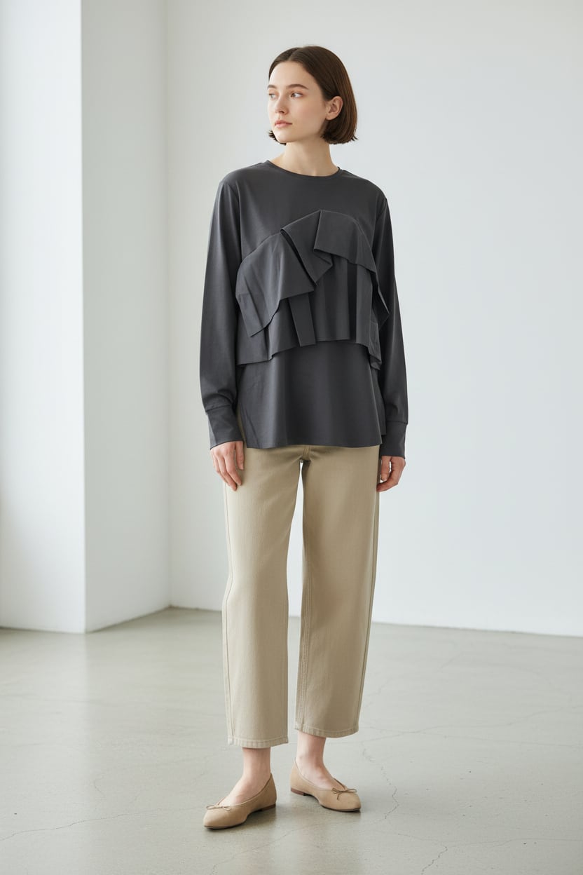 フロントフリルロングTシャツ
