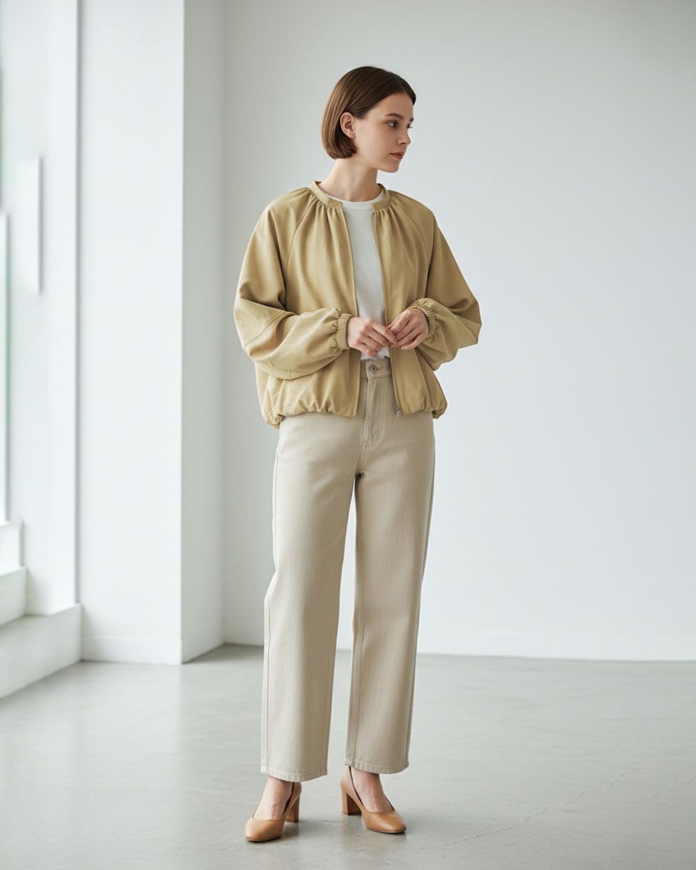 自然なシワ感が魅力のツイル生地を使用した、ボリューム感たっぷりのバルーンシルエットブルゾン。ラグランスリーブと広めのアームホールが肩まわりにゆとりを生み、リラックス感のある着心地を実現。さらにランタンスリーブの立体的なフォルムが女性らしい印象をプラスします。軽やかな素材感でシーズンを問わず着やすく、羽織るだけでトレンド感のあるスタイリングに仕上がる一枚です。細身のパンツやナロースカートと合わせてバランスよく、ワンピースに羽織ってこなれ感をプラス。