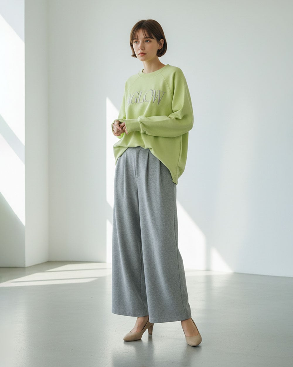 伸縮性のある素材で動きやすく、ゆったりとしたシルエットがリラックス感を演出します。