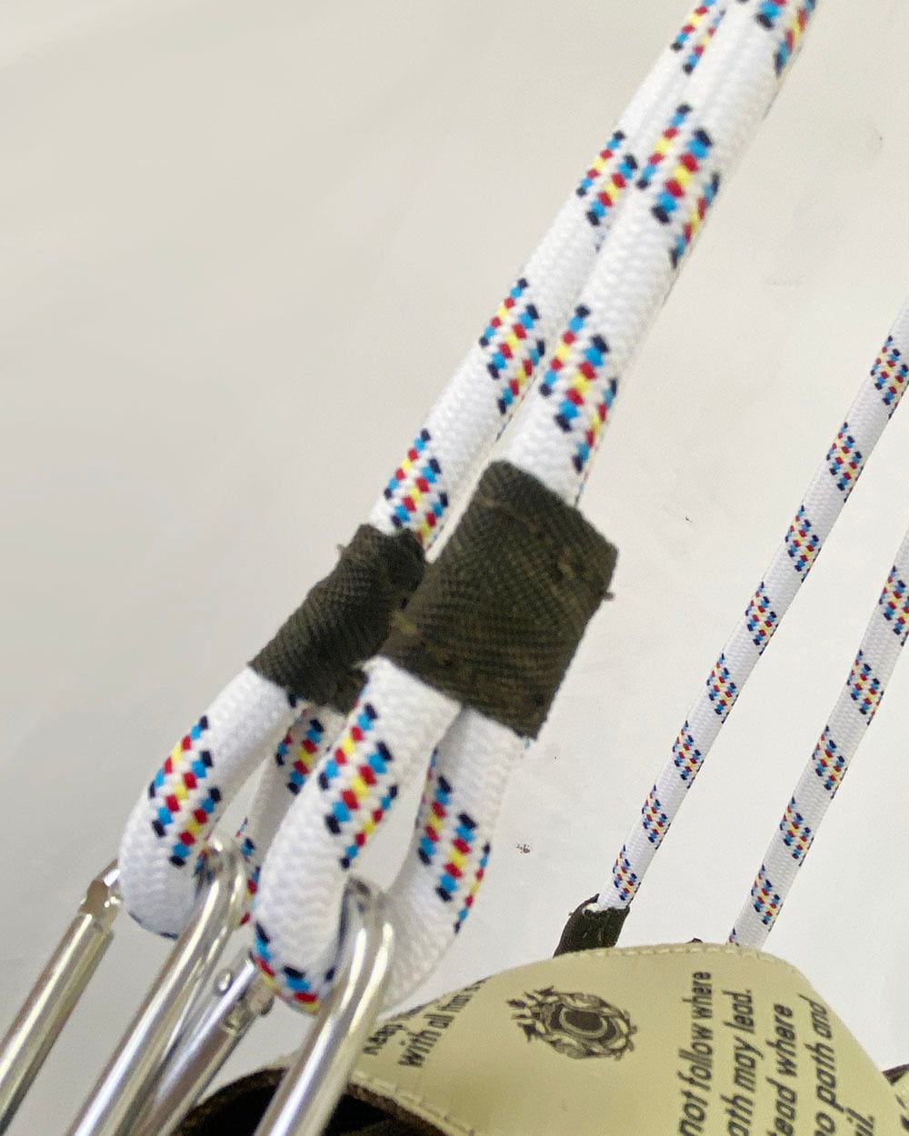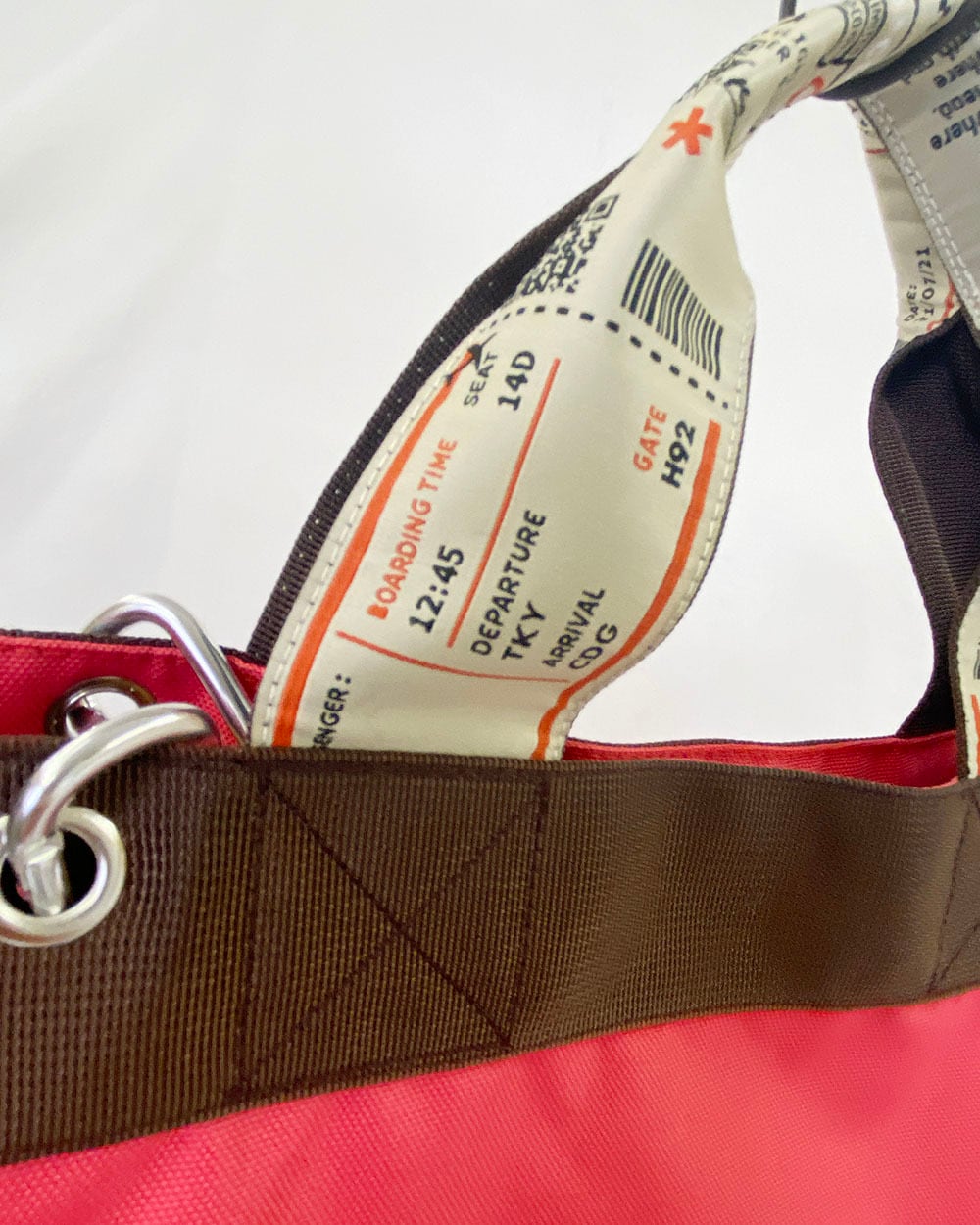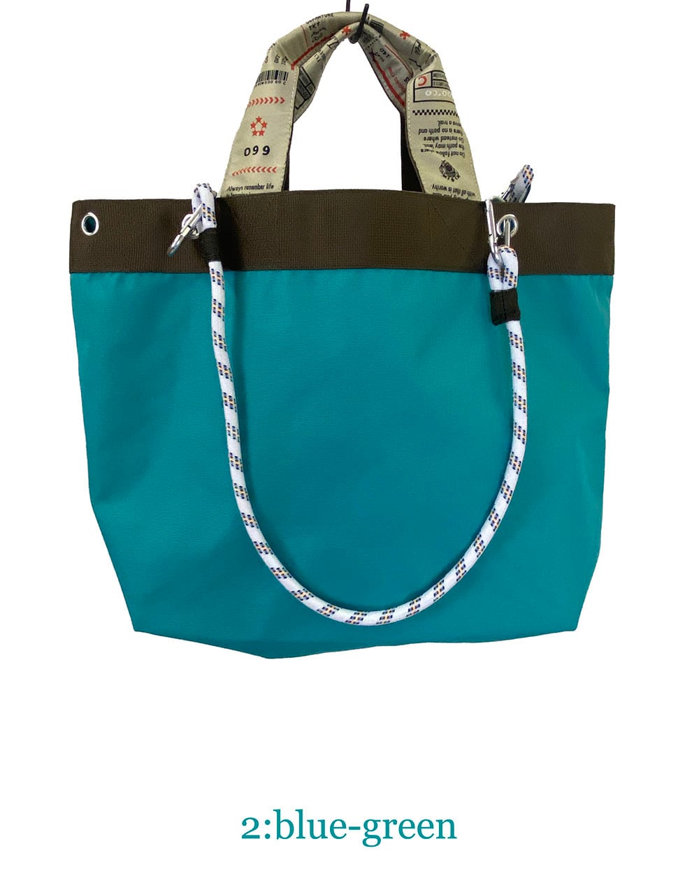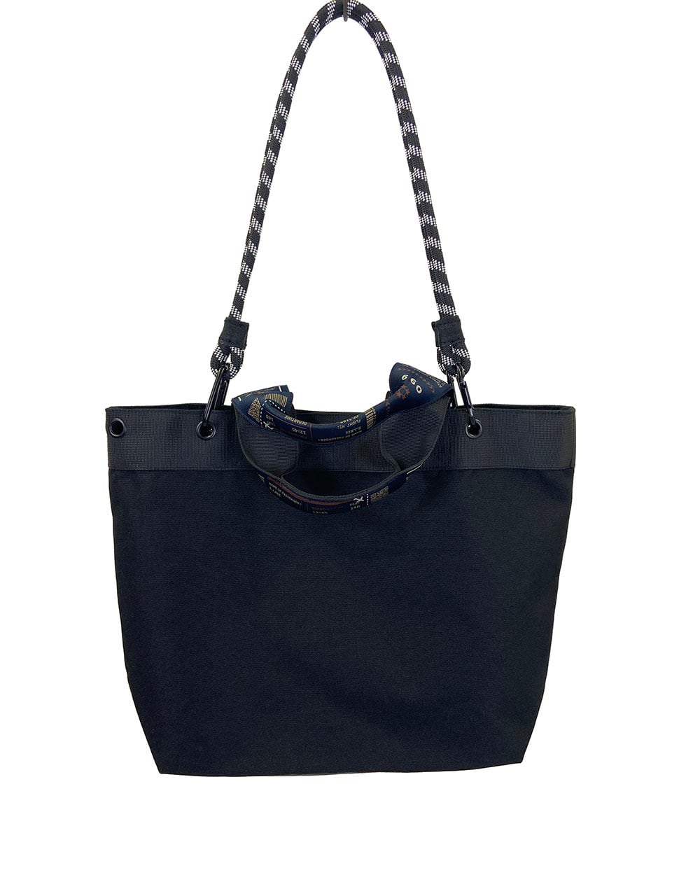 特徴的なテープデザインと、脱着可能なロープハンドルがアクセントになり、シンプルながらも個性を感じる仕上がりです。