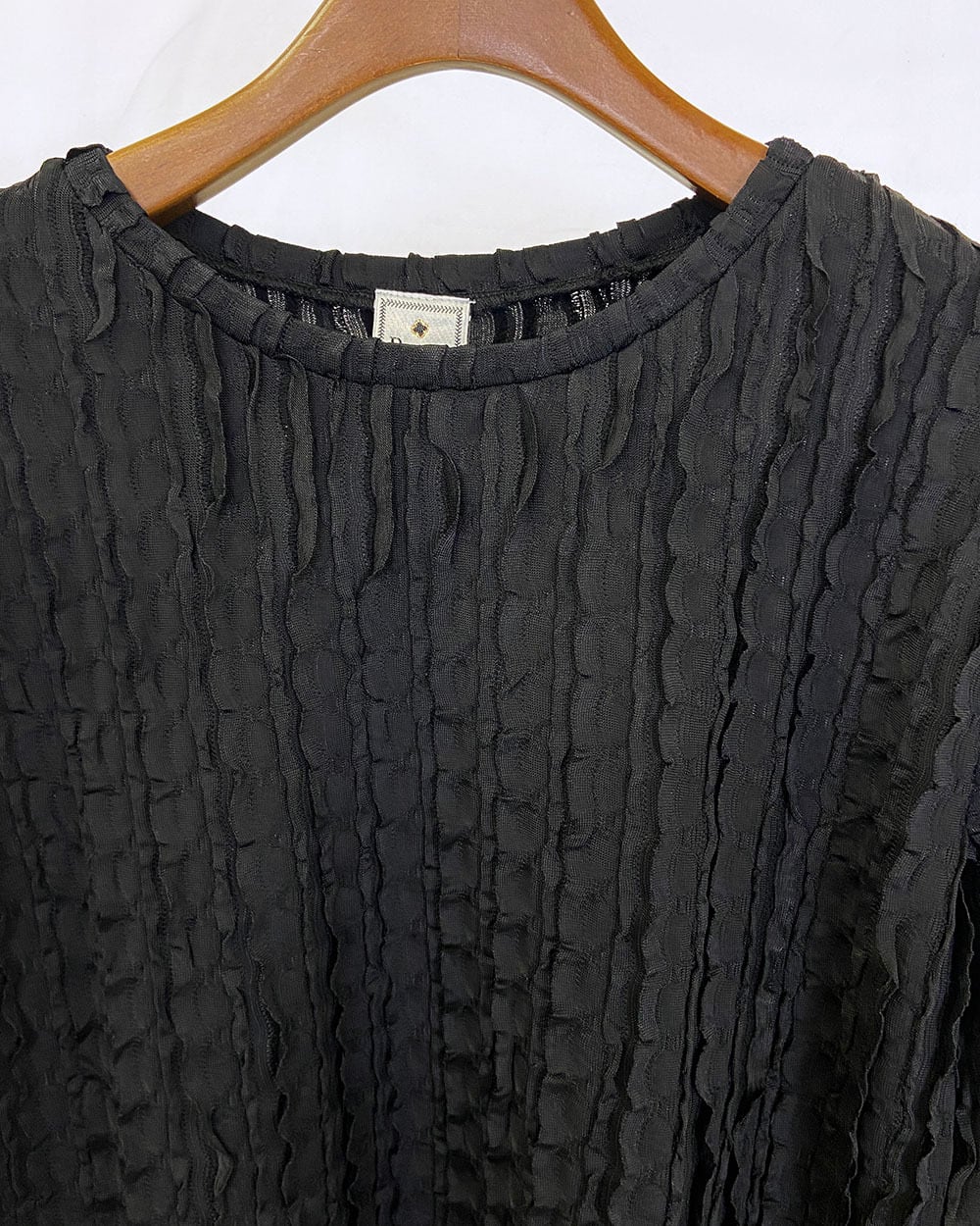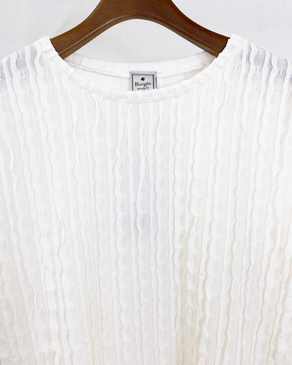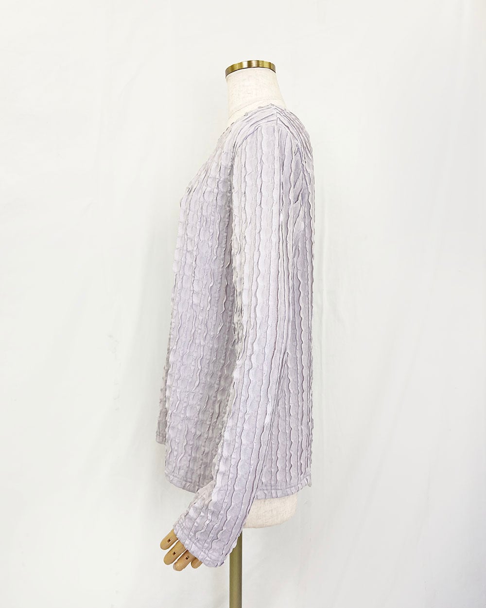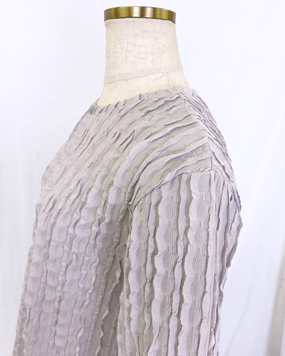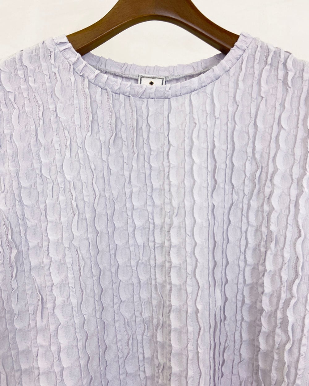 フリルのようなタックストライプが魅力のタックジャガードロングTシャツ。