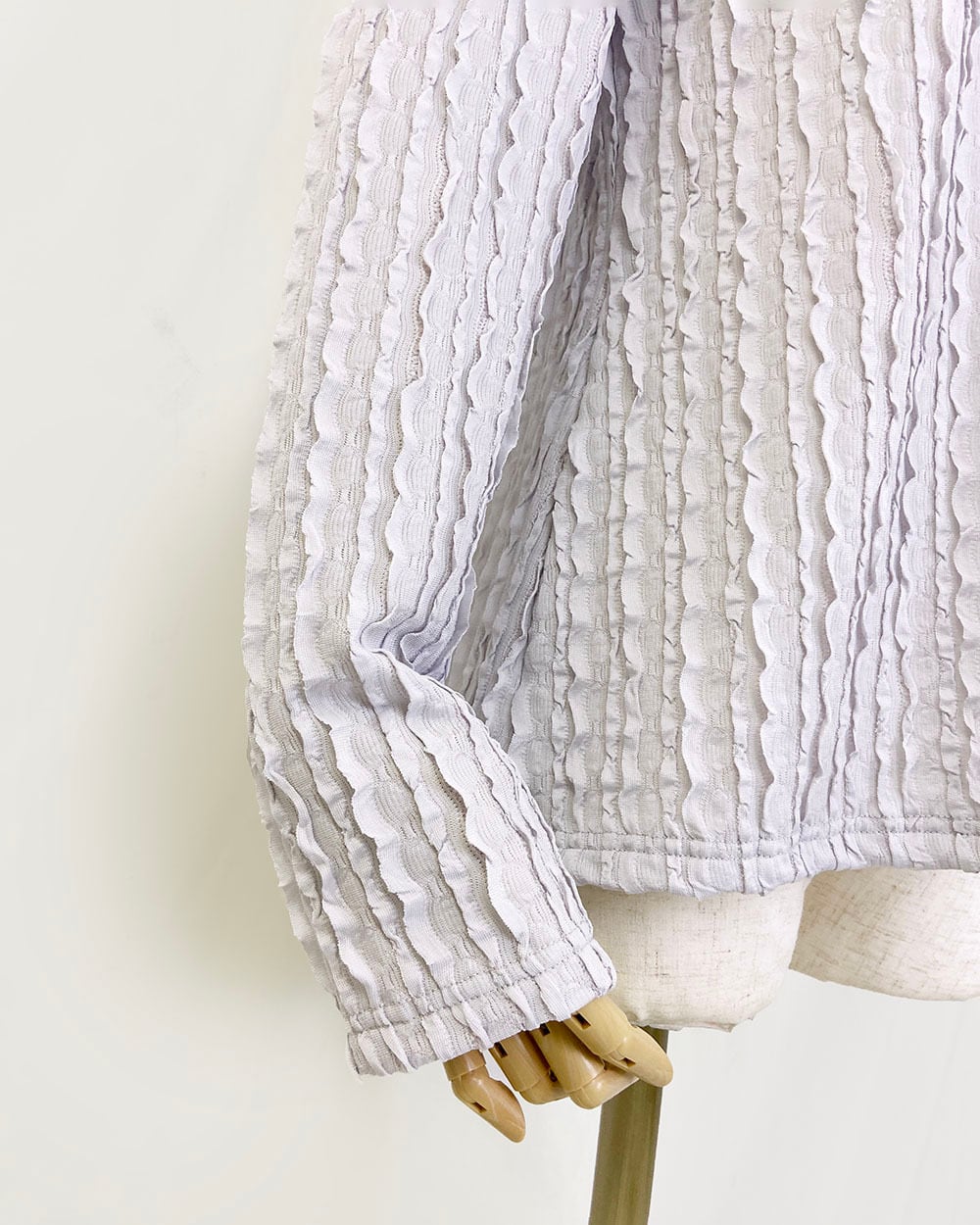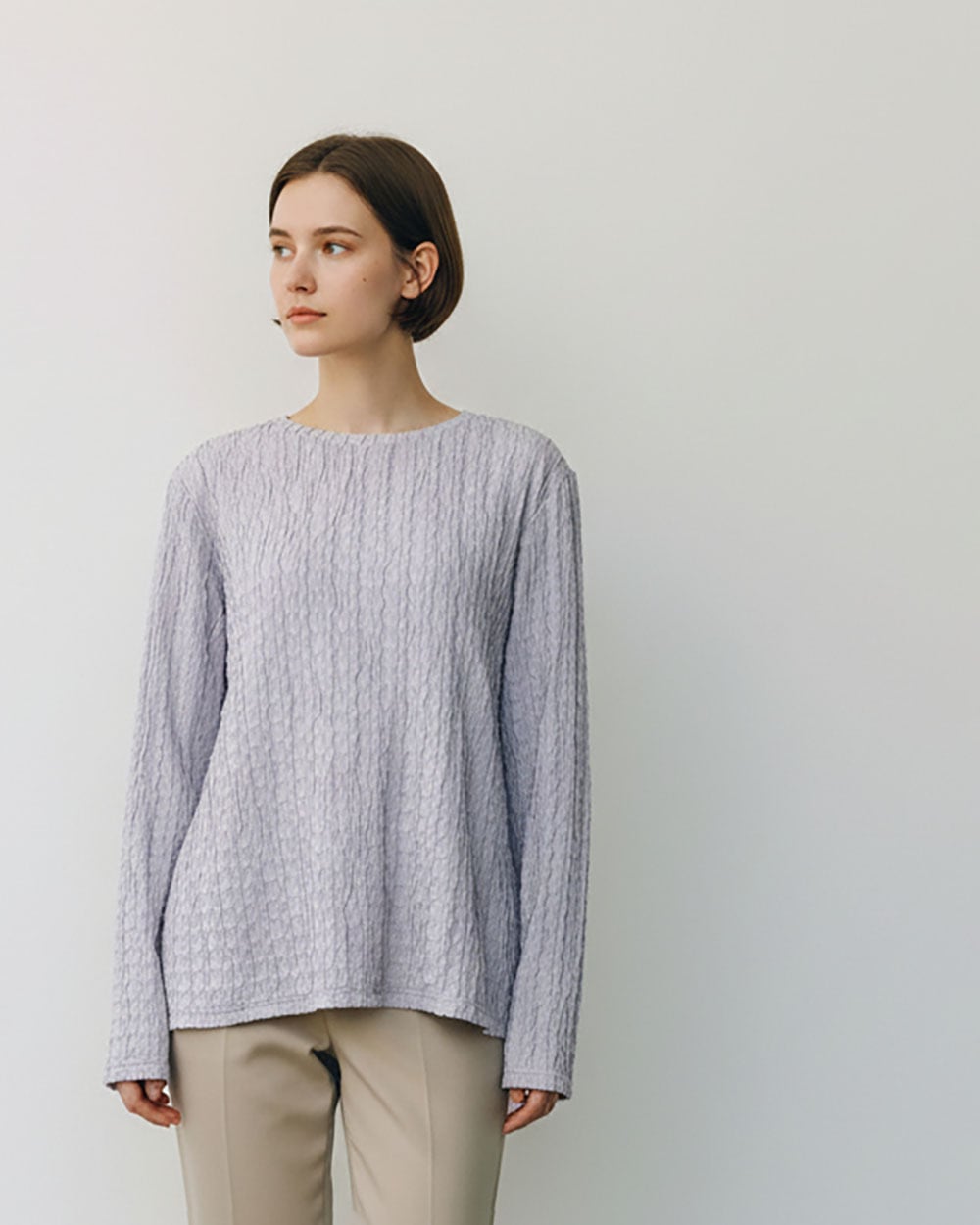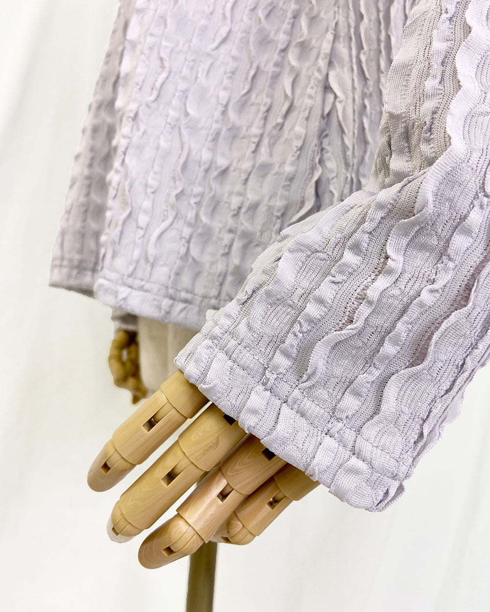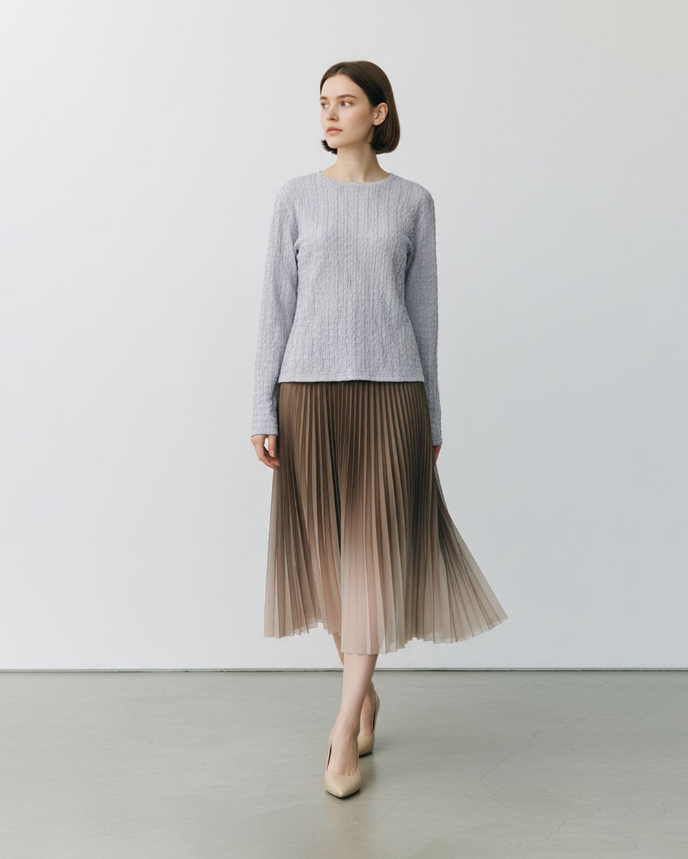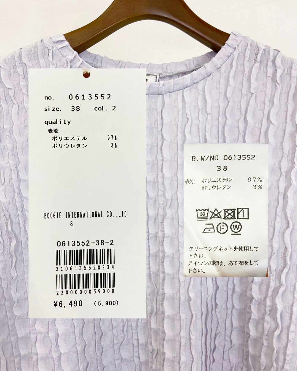 フリルのようなタックストライプが魅力のタックジャガードロングTシャツ。
