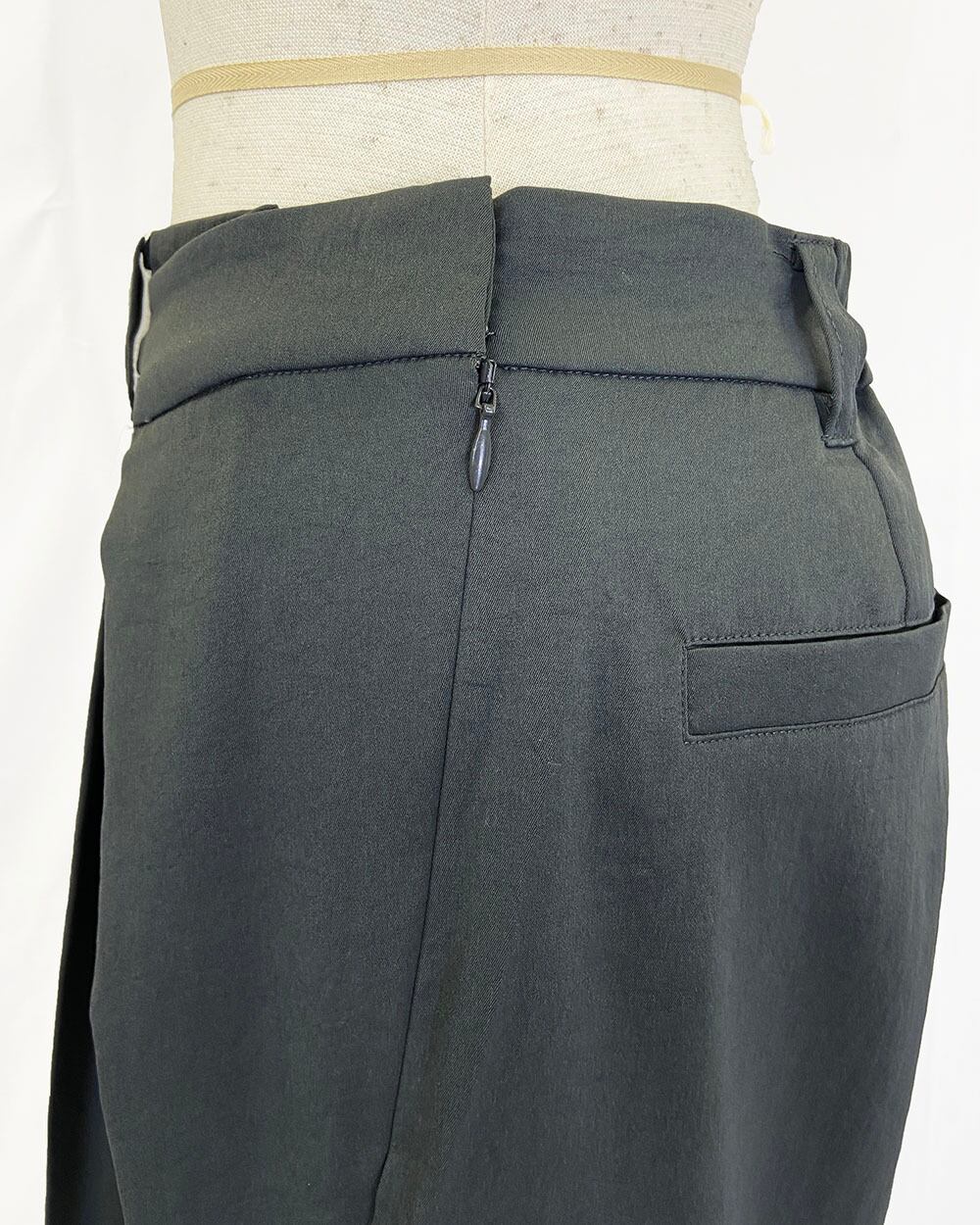 ラフなシワ感が魅力のビンテージサージ素材を使用したサイドセミタックセミフレアパンツ。