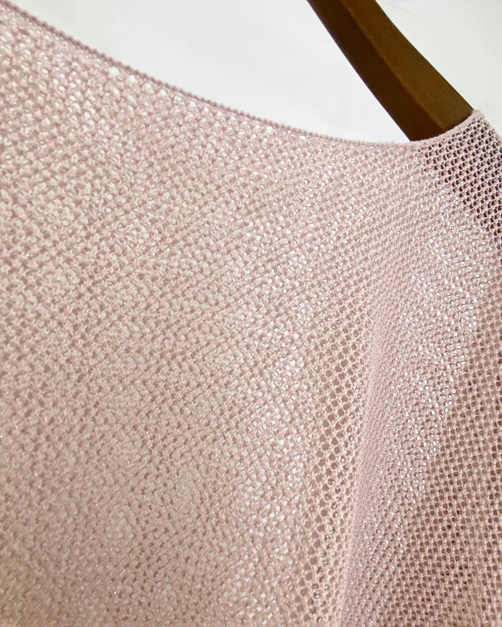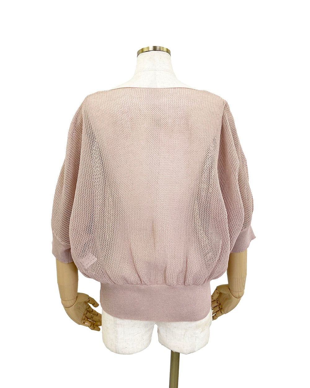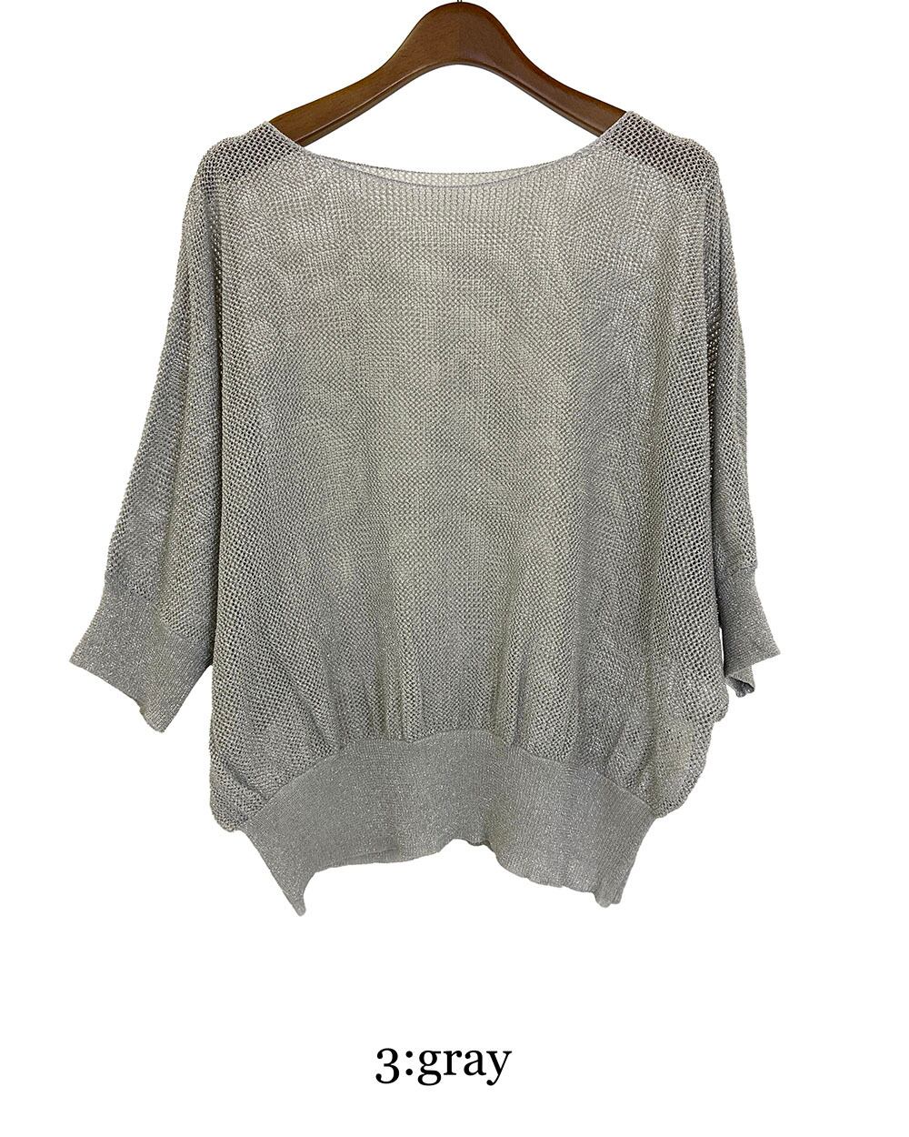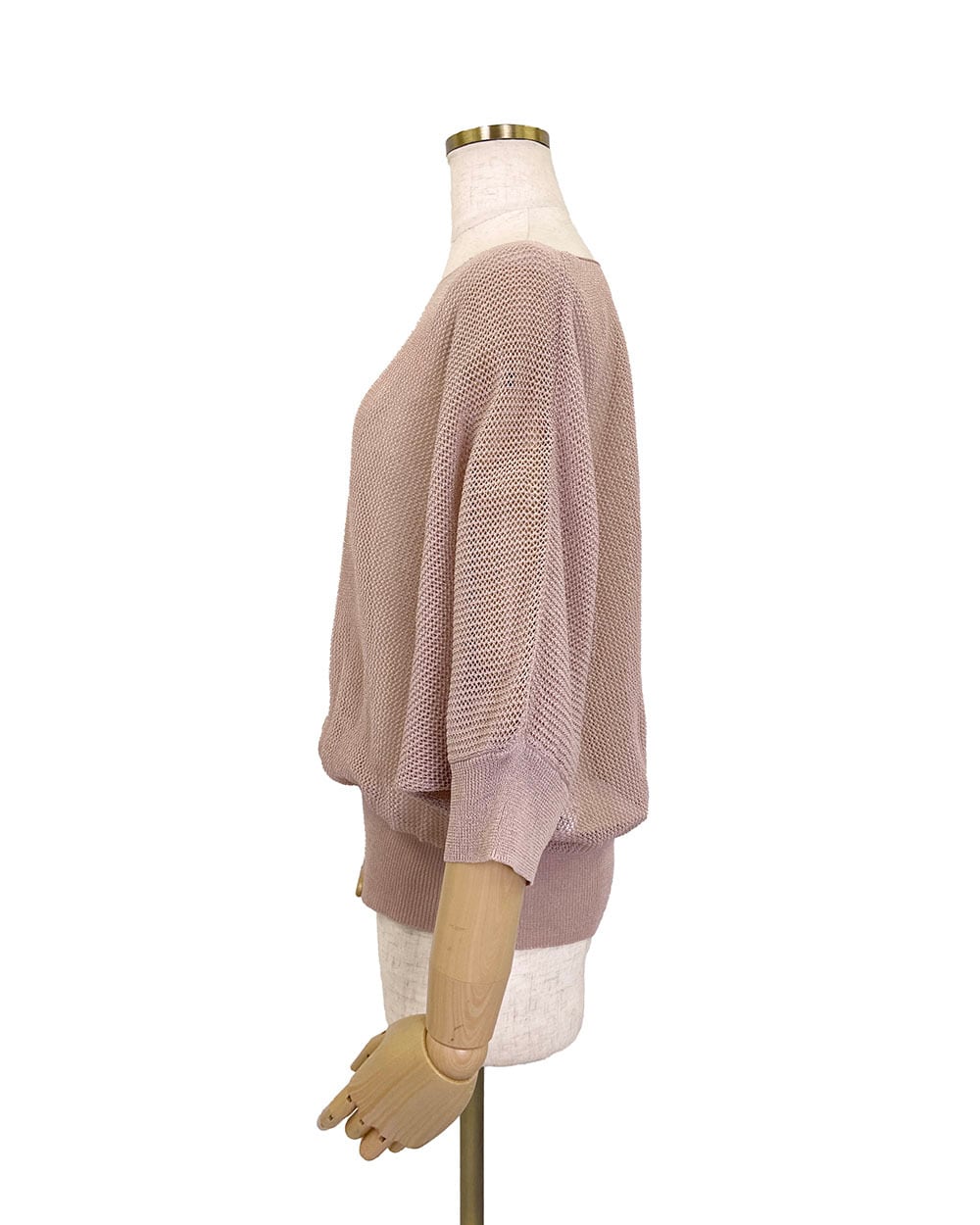 麻タッチのさらりとした素材感にラメをミックスした、7分袖メッシュニットドルマンプルオーバー。ラグランスリーブで肩まわりにゆとりを持たせ、リラックス感のあるシルエットに仕上げました。さりげないラメのきらめきが、軽やかなメッシュ編みに上品な華やかさをプラス。