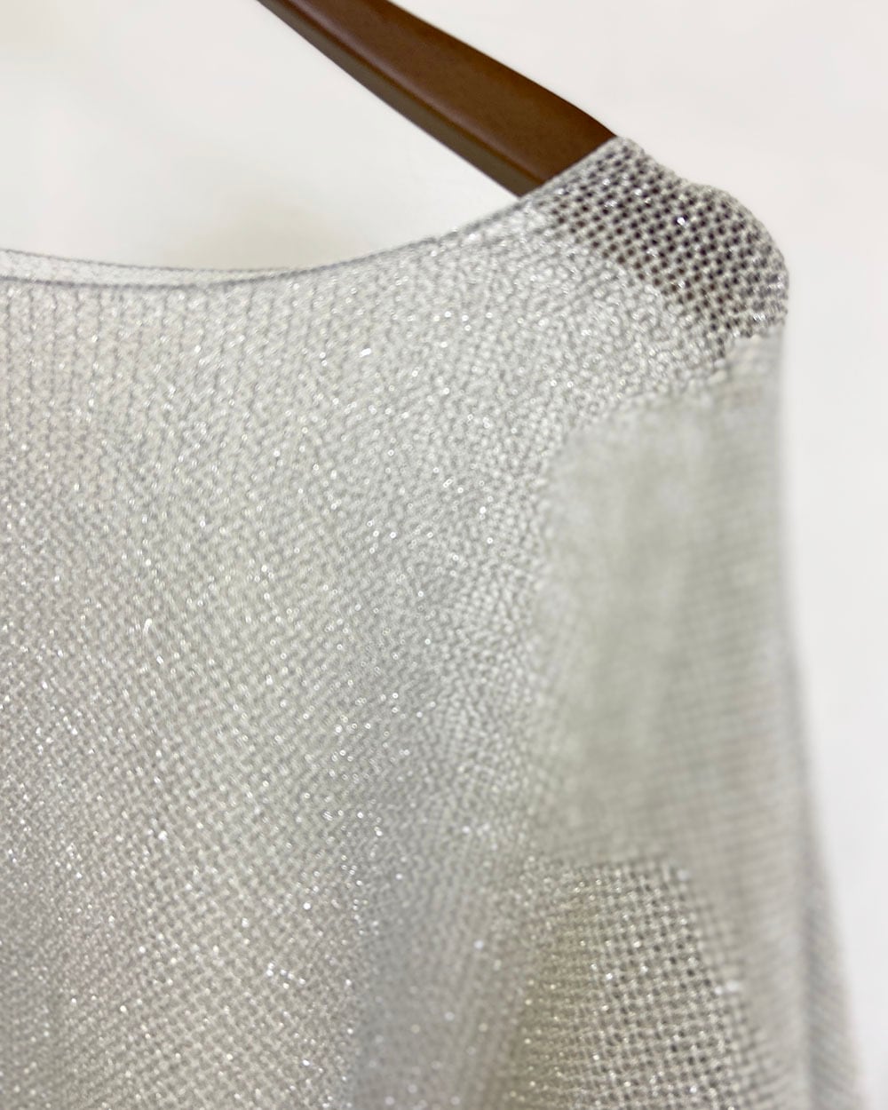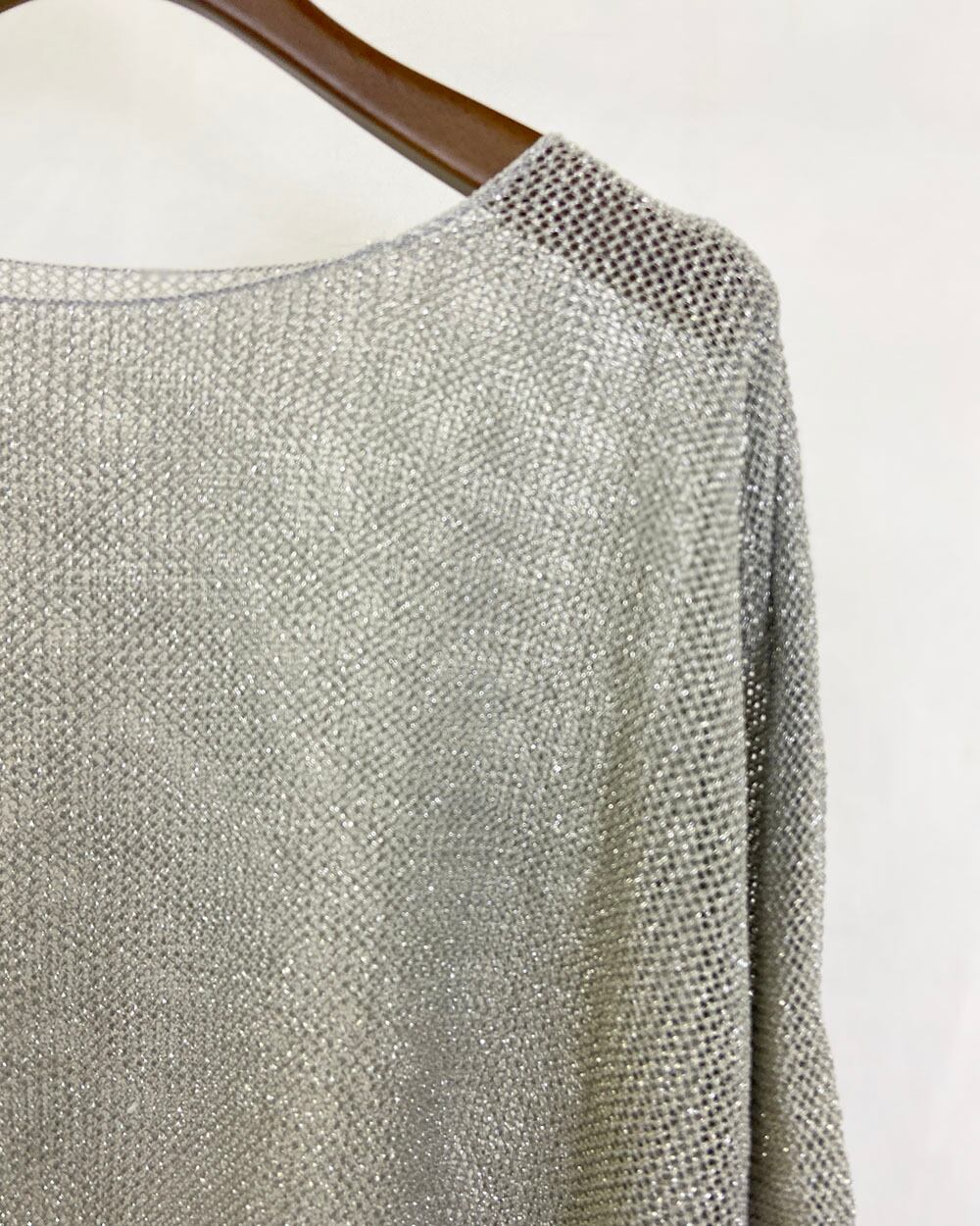 ・サテンやシフォン素材のスカートと合わせて、ラメの輝きを活かしたフェミニンスタイルに。